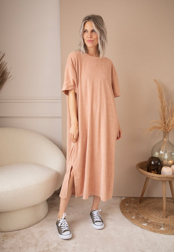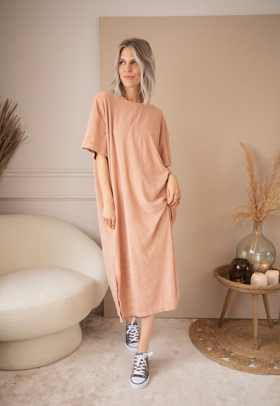 Baggy Button Beige - Sweater Dress