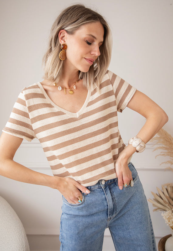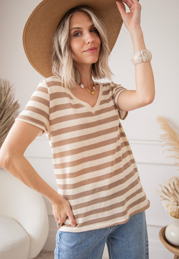 • -15% NEW Pullover - Simply Striped - Beige/Choco Pullover - Simply Striped - Beige/Choco