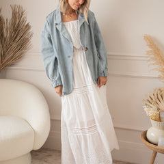 Herbstliches Kleid mit lockerem Fall, coole Jacke dazu und verspielte Fransen-Details.