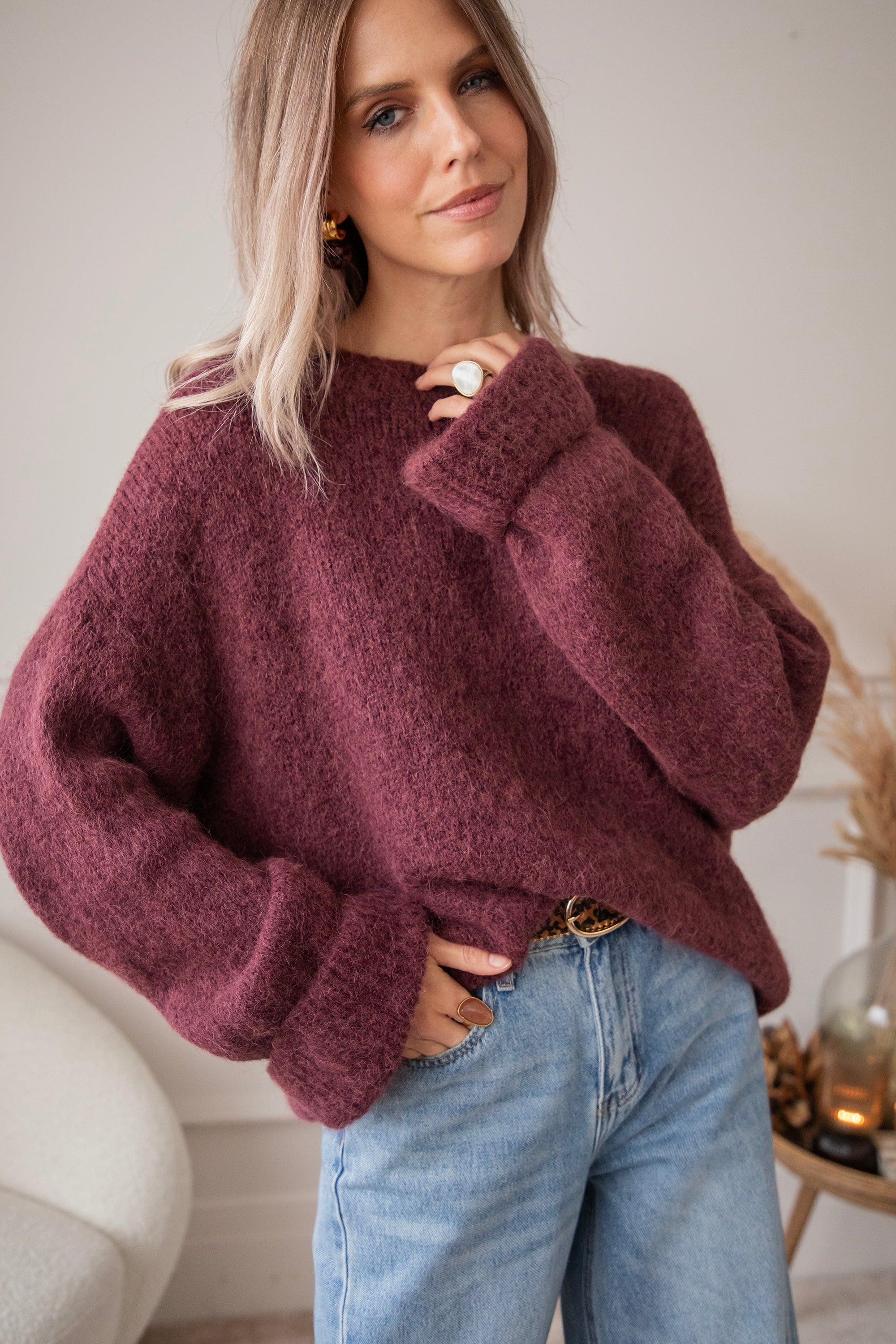 Aaah, unser Emily-Pullover ist so ein kuscheliges Must-have 🐻 Mehr als 30 % Alpaka-Wolle zusammen mit Acryl und normaler Wolle machen ihn zu einem wunderbar weichen Strickwunder! Einer, den du bis weit nach dem Winter tragen kannst ❄️