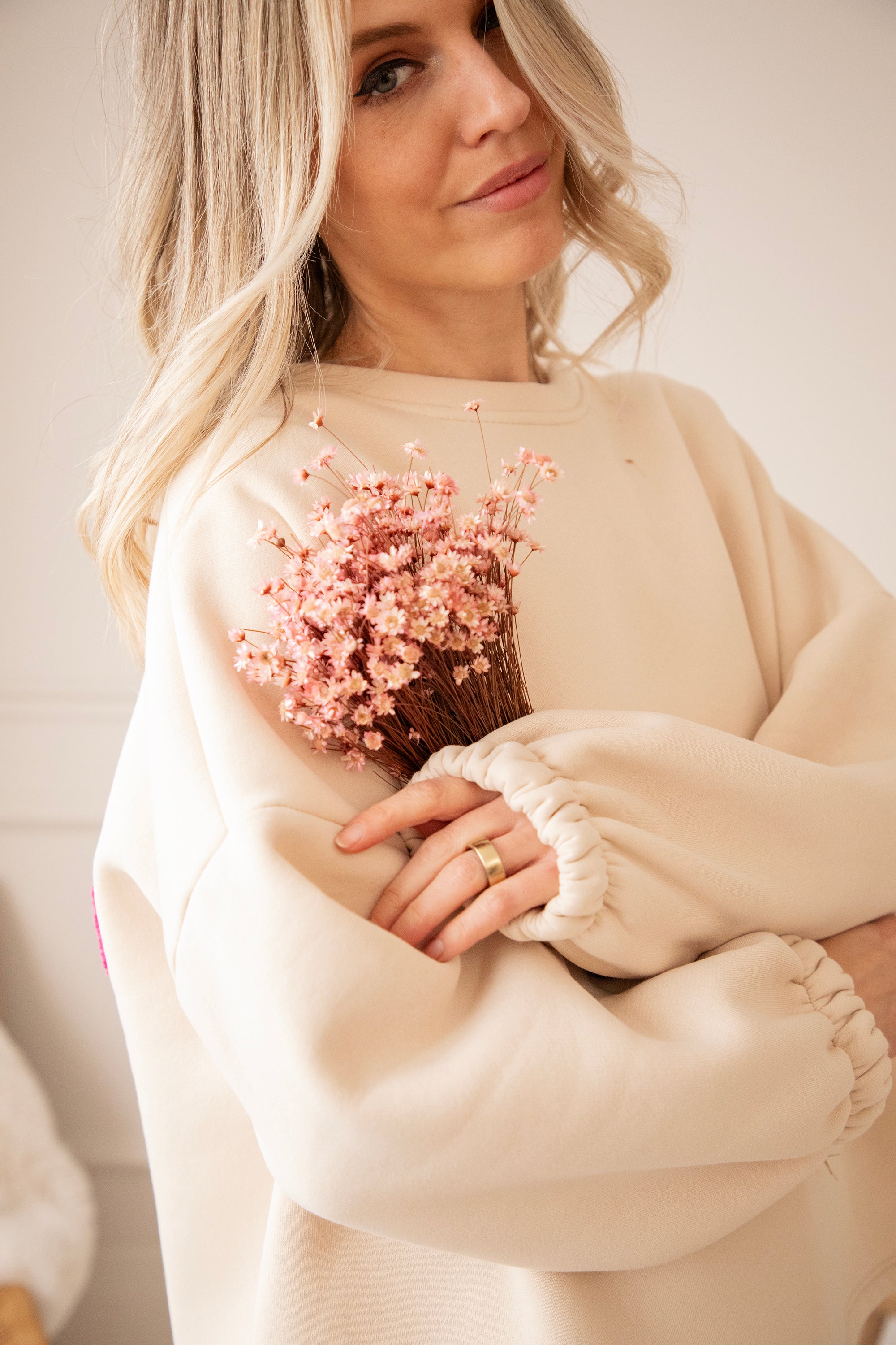 Ich liebe, wie dieser Sweater eigentlich perfekt zusammenfasst, woran ich selbst glaube: Du darfst sanft sein, lieb sein, träumerisch sein… und gleichzeitig stark. Girl Power steckt manchmal einfach in den kleinen Dingen. In dem, wie man sich fühlt. In dem, was man trägt 💭💕