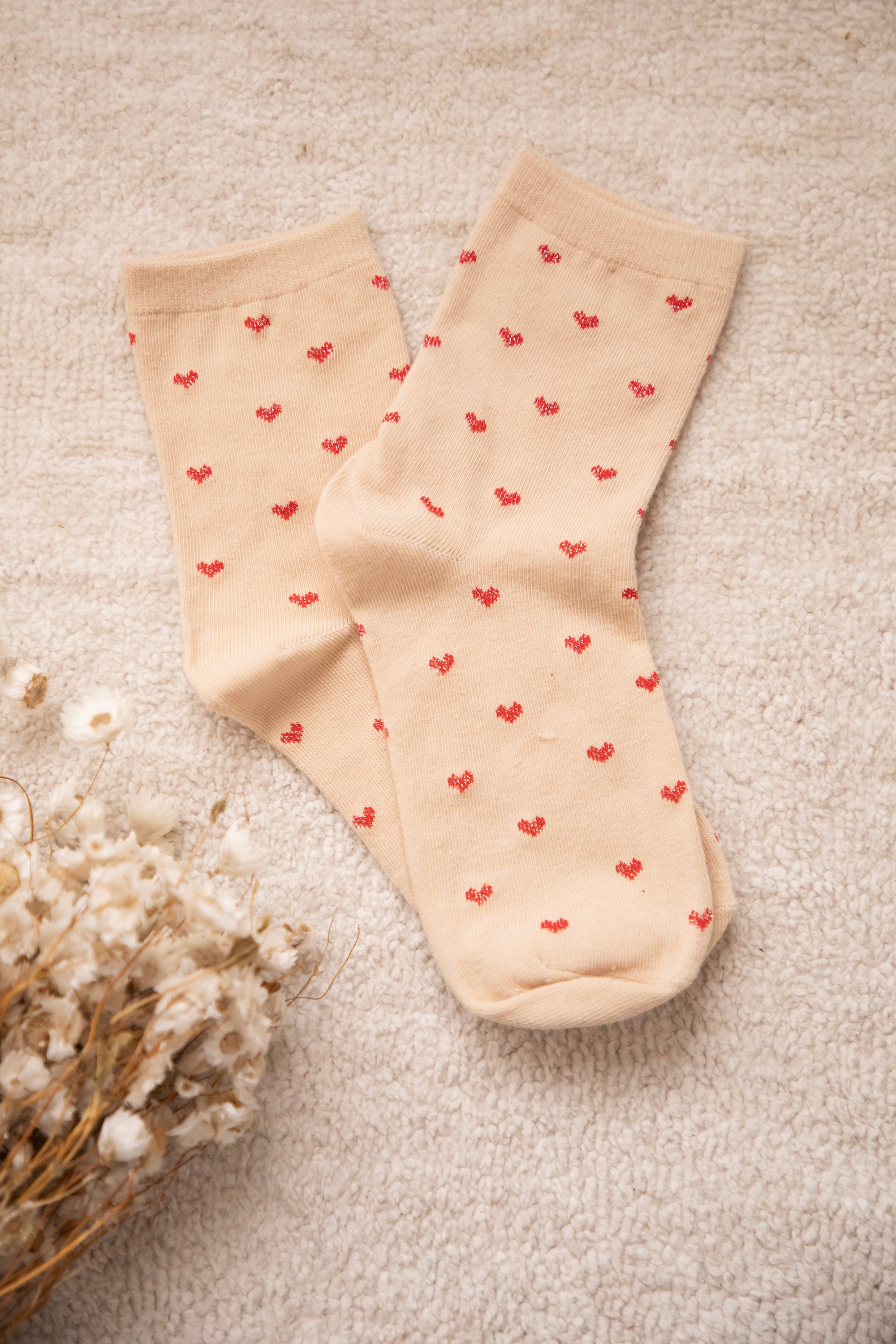 Love overload 🥹❤️ Diese Socken sind einfach zu süß! Eine beige Basis mit ganz vielen kleinen roten Glitzerherzchen… so ein Detail, das dich sofort glücklich macht 😍