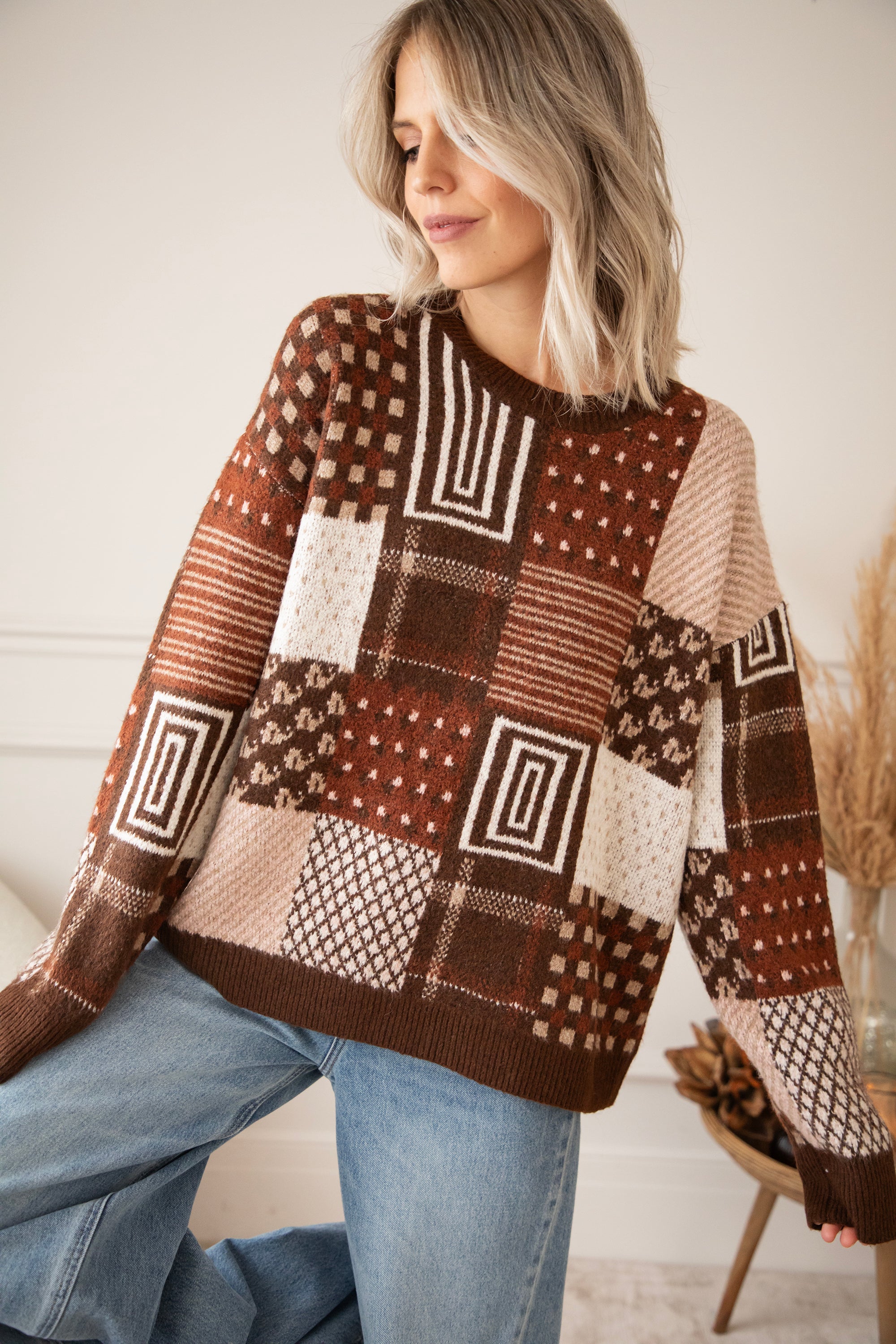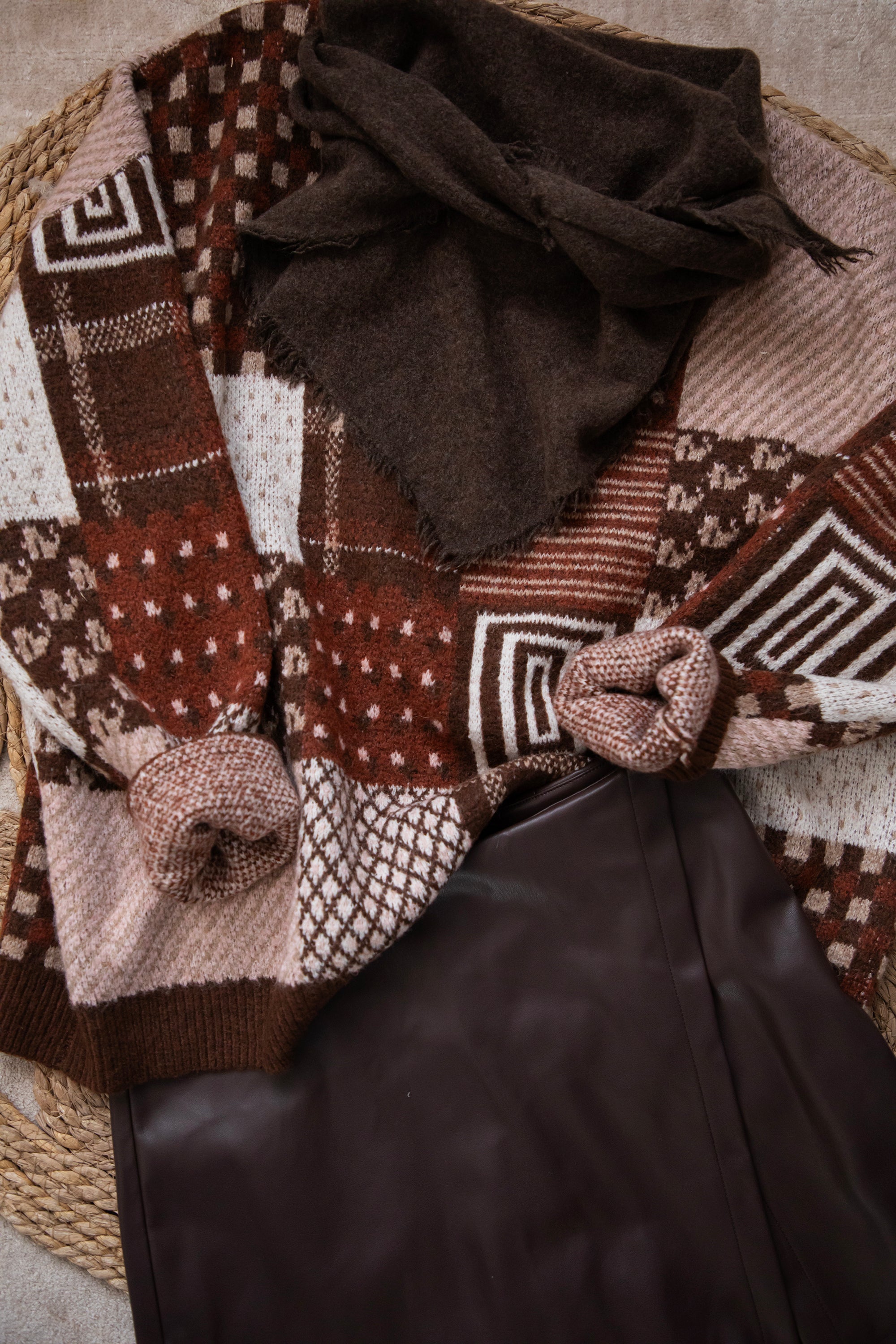 Hey Mädels, wie gemütlich sieht der Pattern Plaid Strickpulli denn bitte aus?! 🥹 Der ist genau das Richtige für richtig kuschelige und kalte Tage! Die Mischung aus verschiedenen Mustern macht ihn so verspielt: Karos, Hahnentritt, Labyrinth... so viele schöne Muster zusammen 🍂 Und trotzdem wirkt das Ganze durch die warmen, sanften Farbtöne ruhig... ich liebe es!