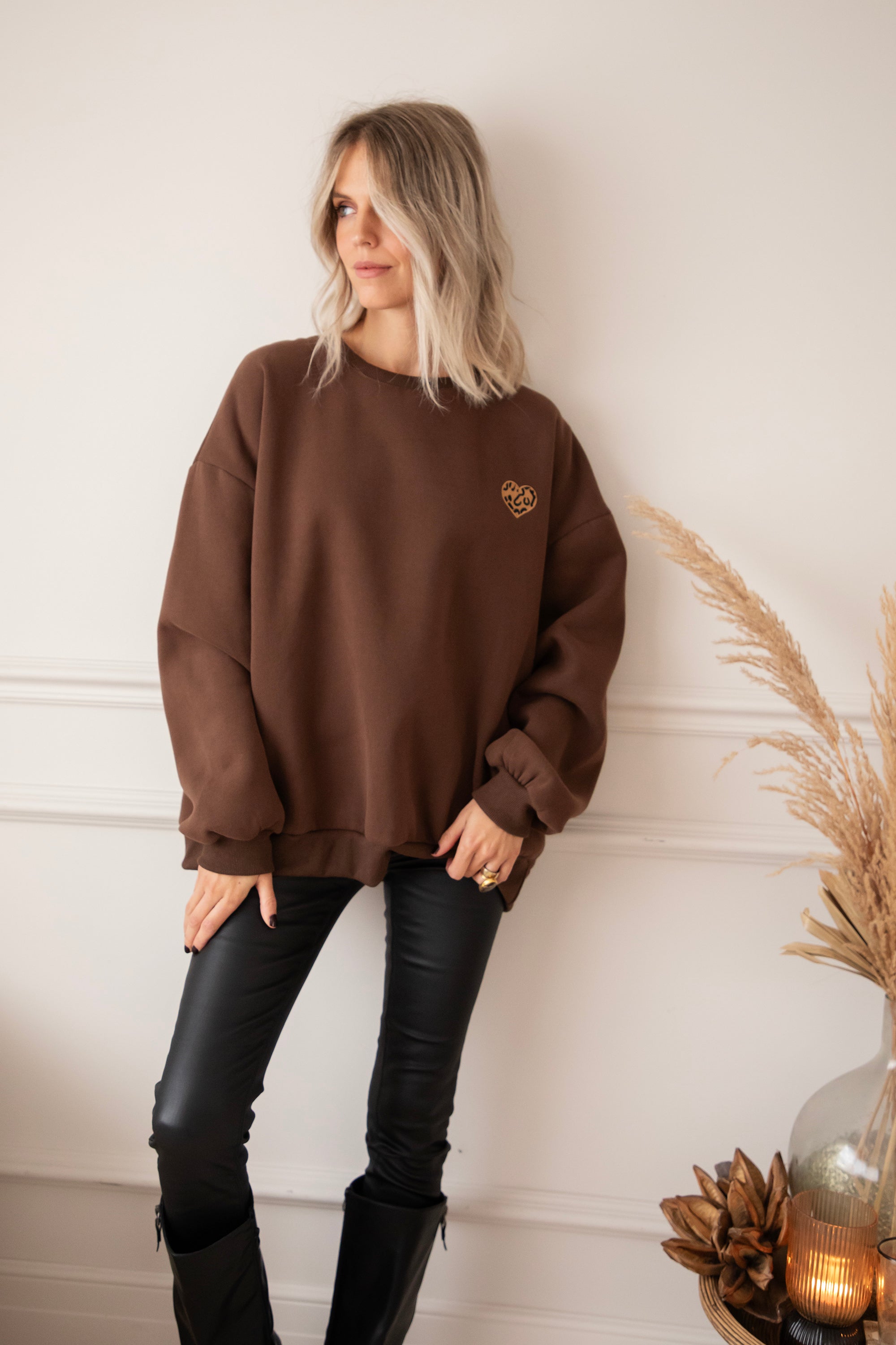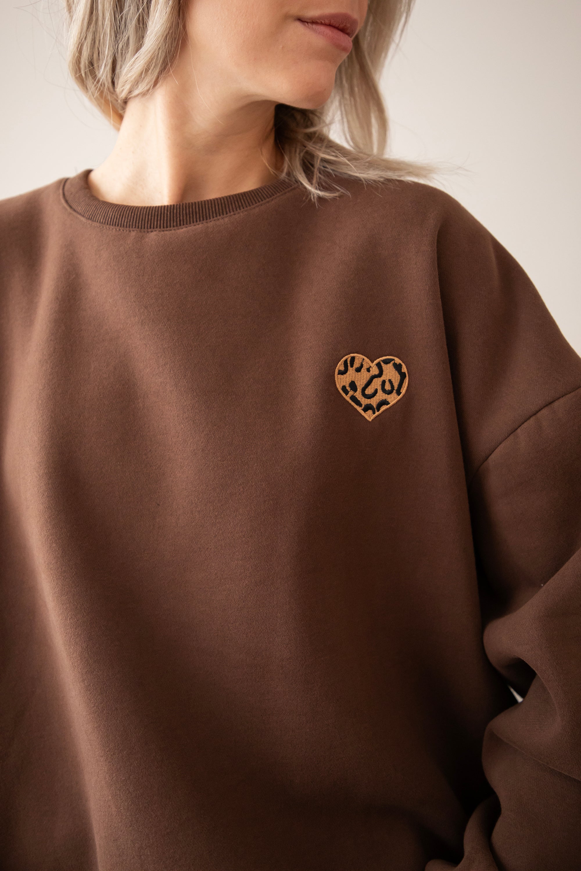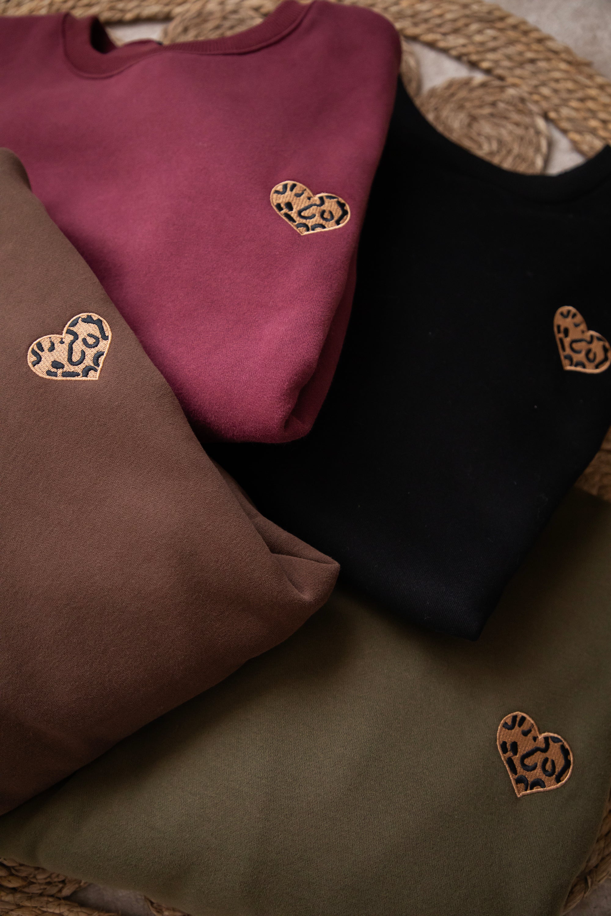 Mädels, dieser Pullover wird euer Herz im Sturm erobern! 😍 Der Simplicity Wild Heart kombiniert das beste Pullovermodell mit dem süßesten Herzdetail aller Zeiten. Und ja, das Herz ist mit Leopardenmuster bedruckt, also ein bisschen wild, ein bisschen süß ... genau so, wie wir es mögen 🤎