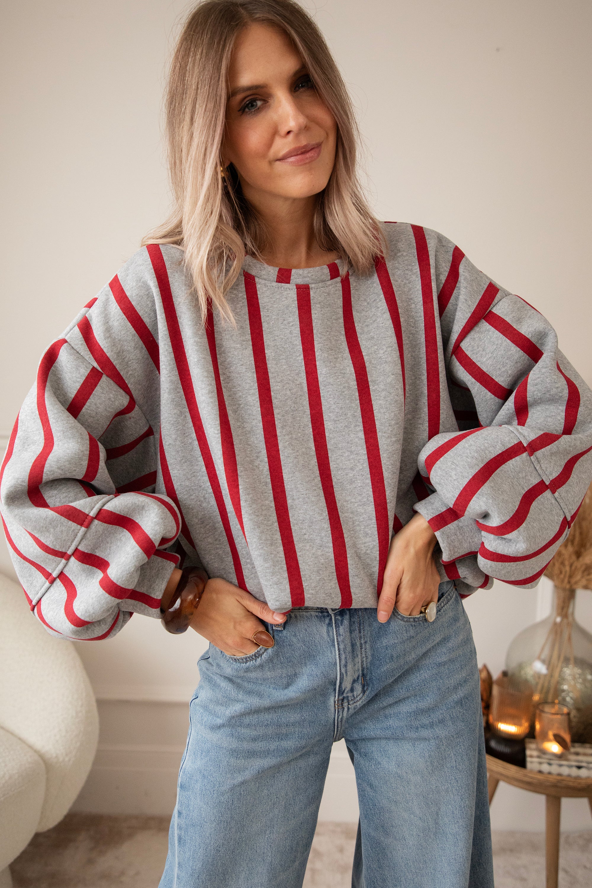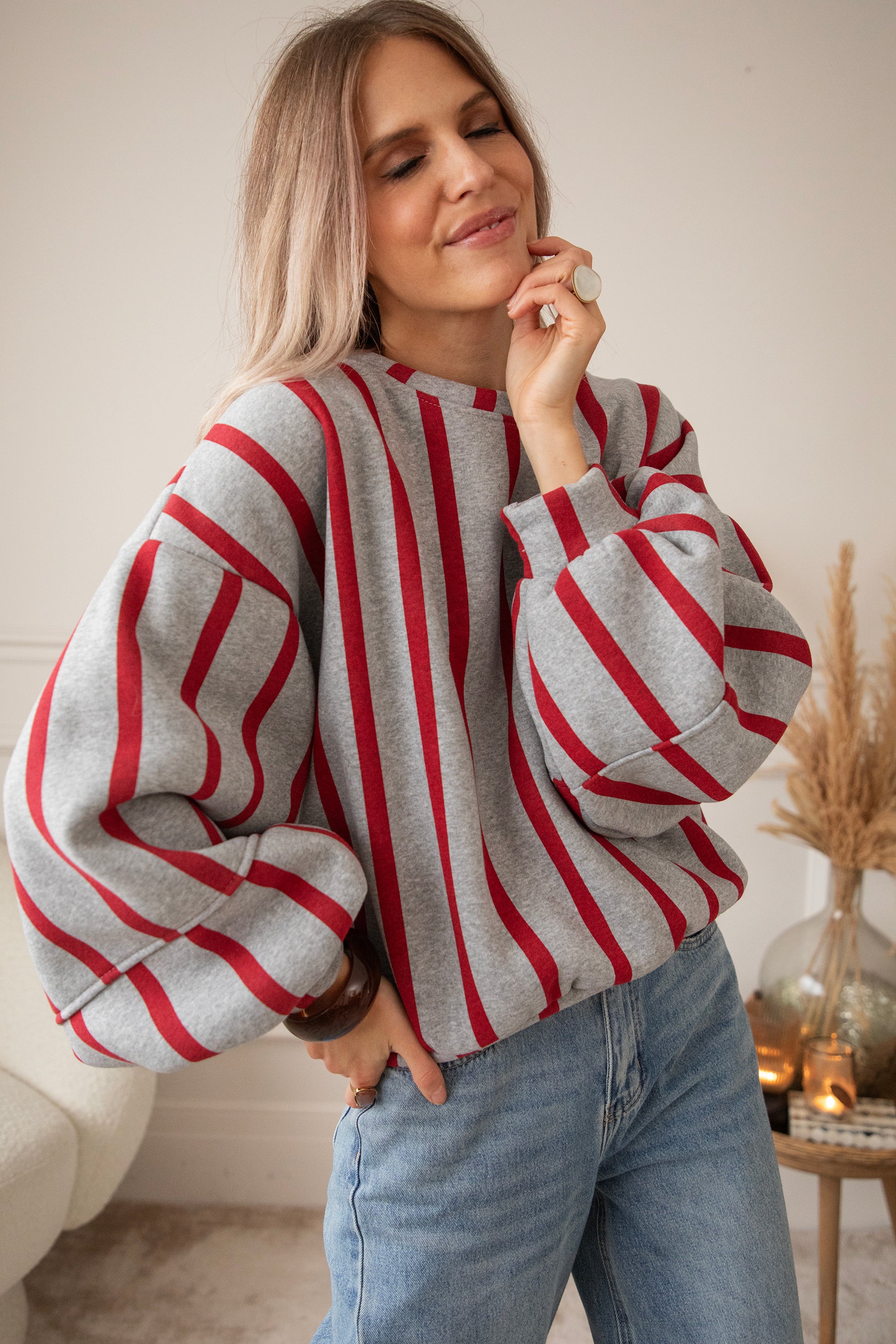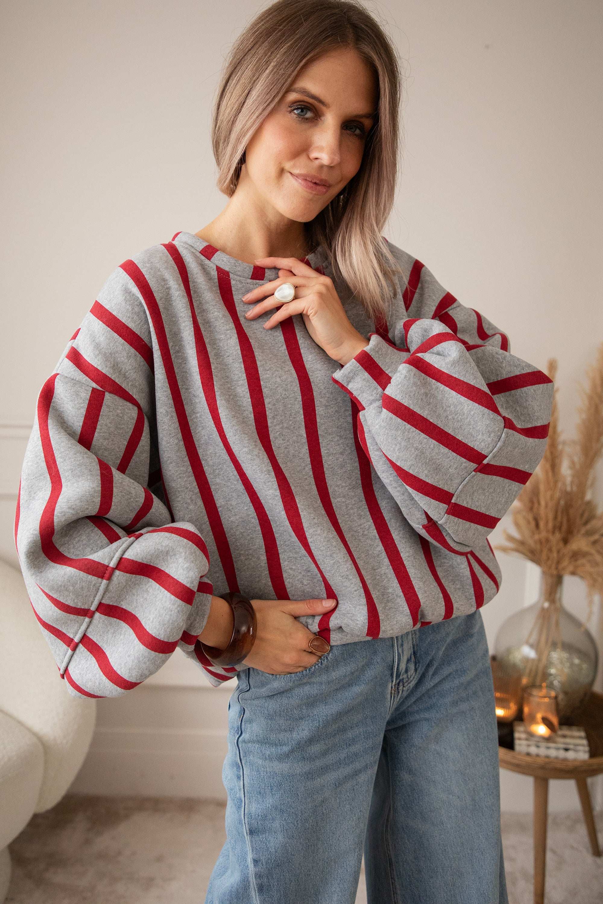 Pullover - Snuggle Up In Stripes - Grau/Rot