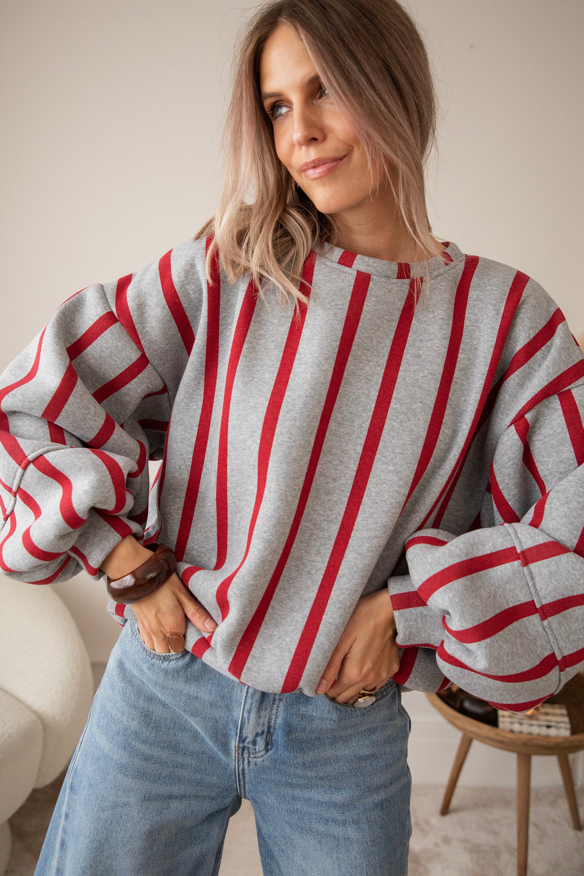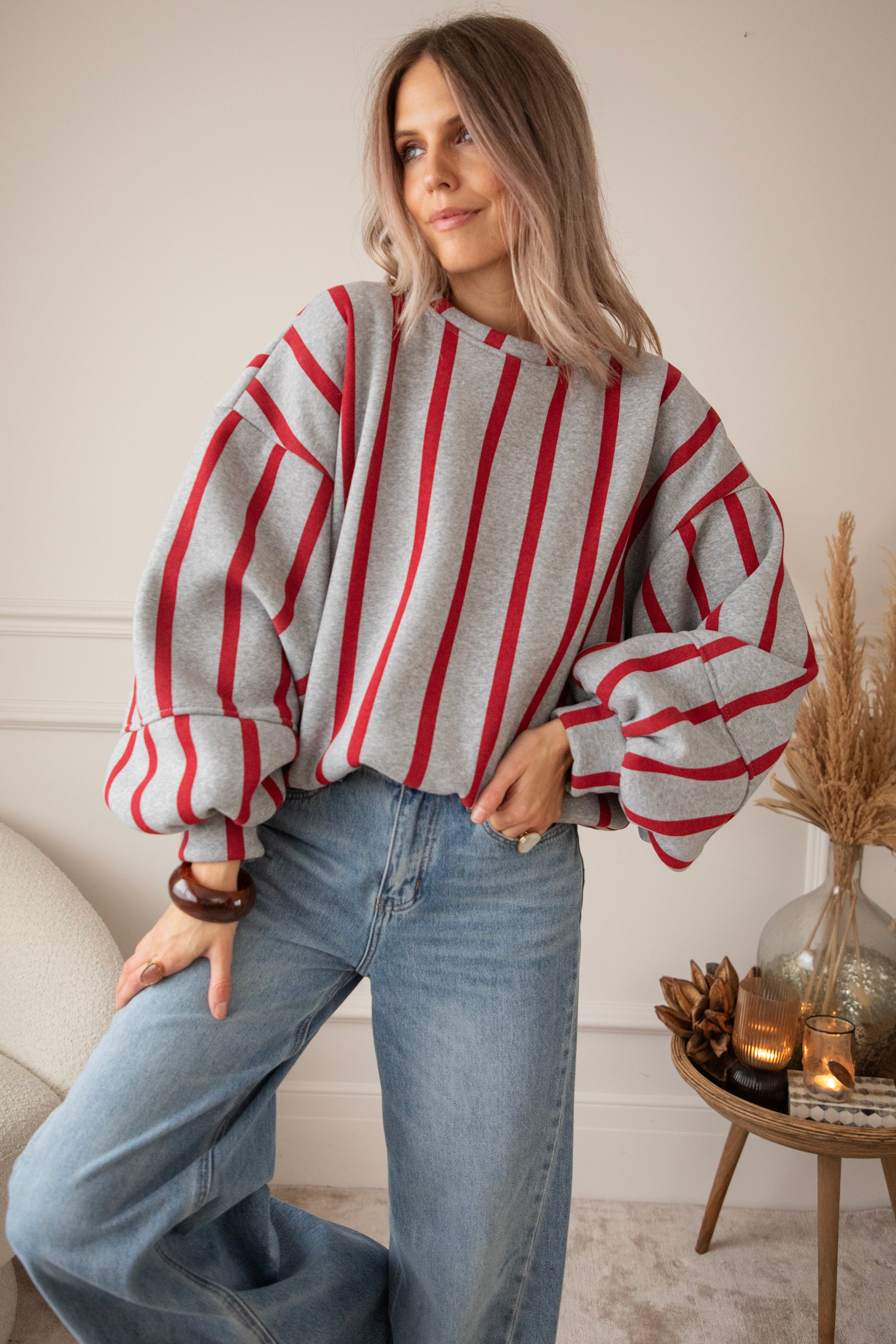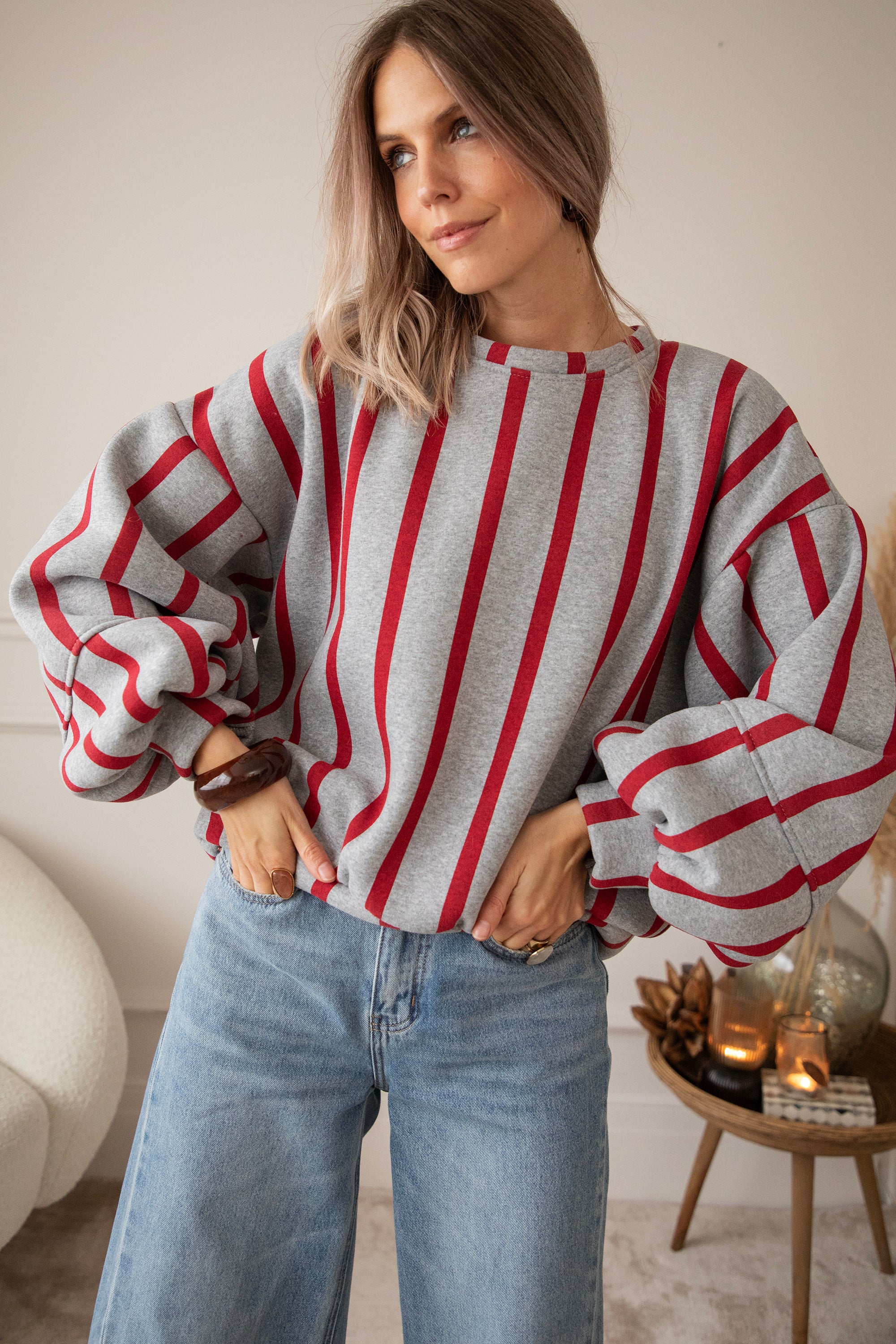 Pullover - Snuggle Up In Stripes - Grau/Rot