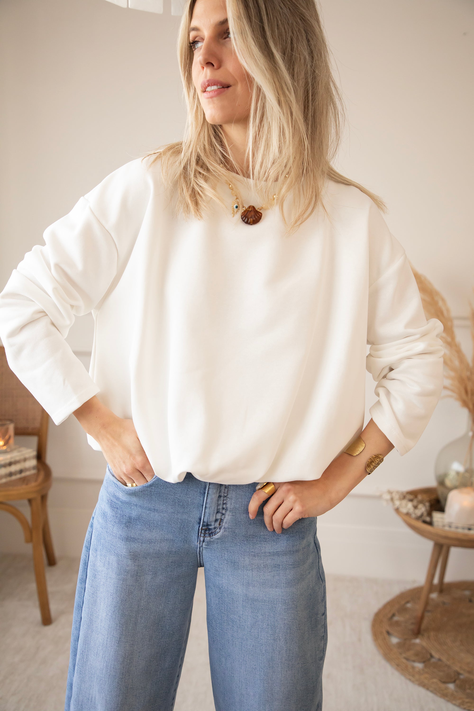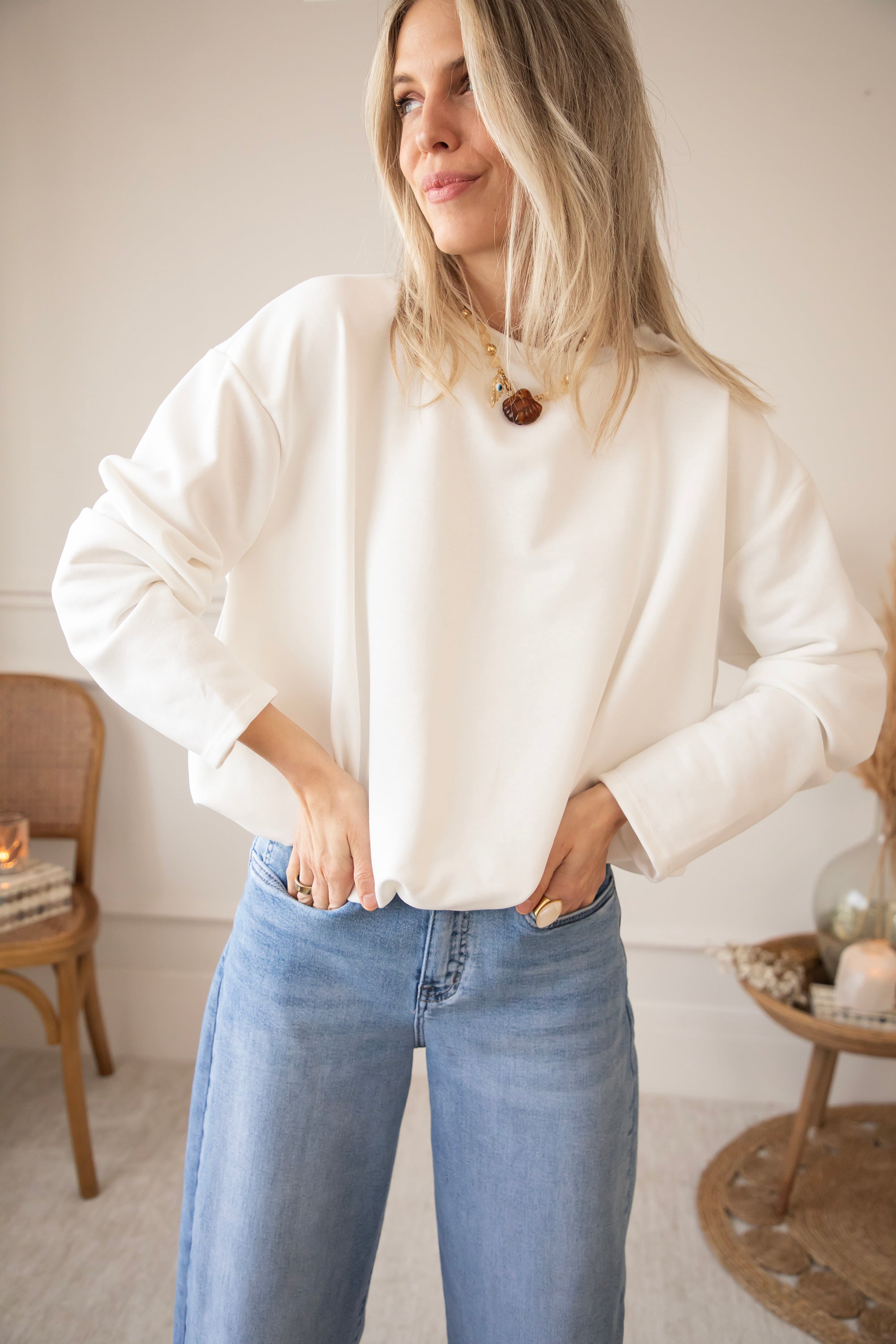 Pullover - Soft Stretch - Weiß