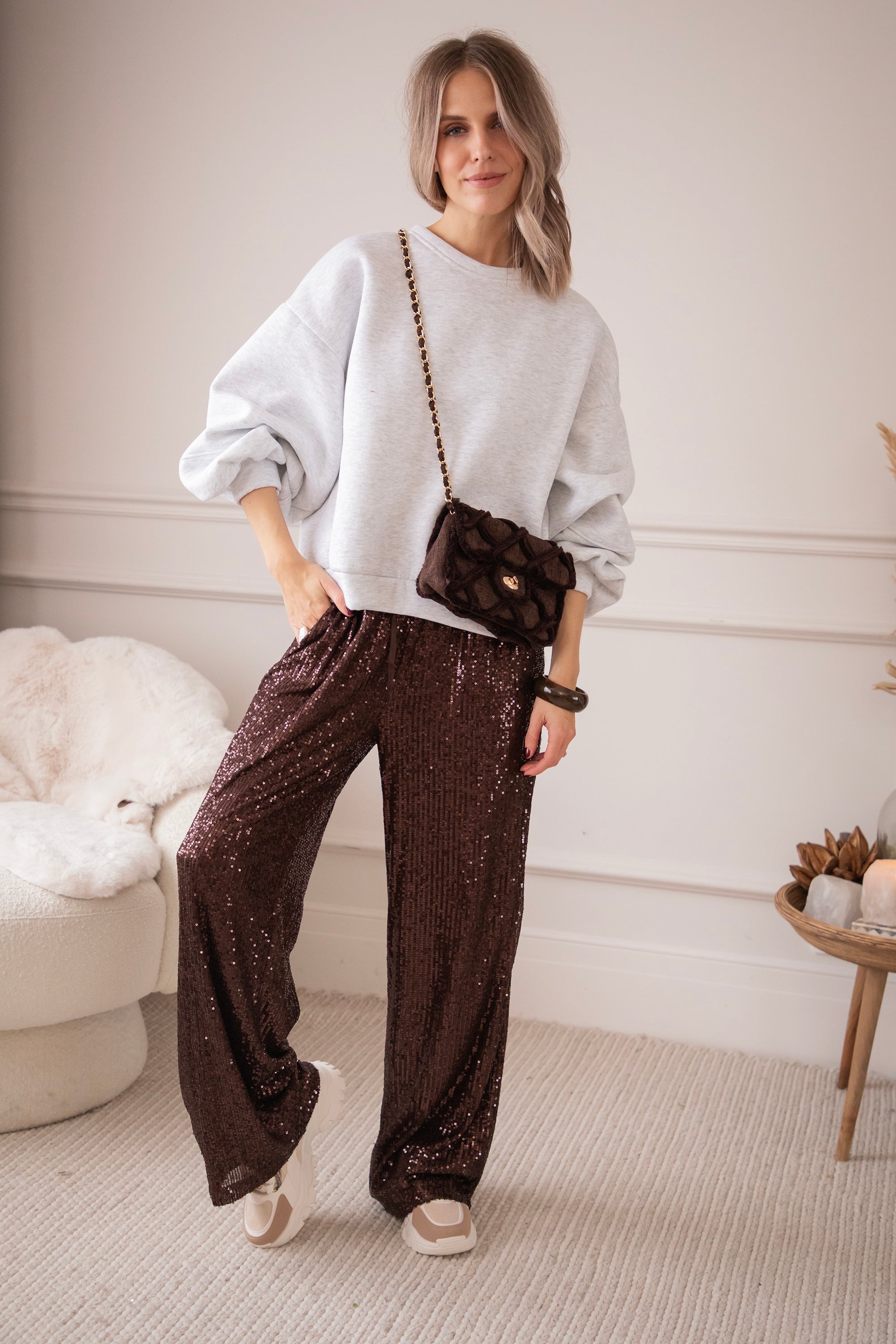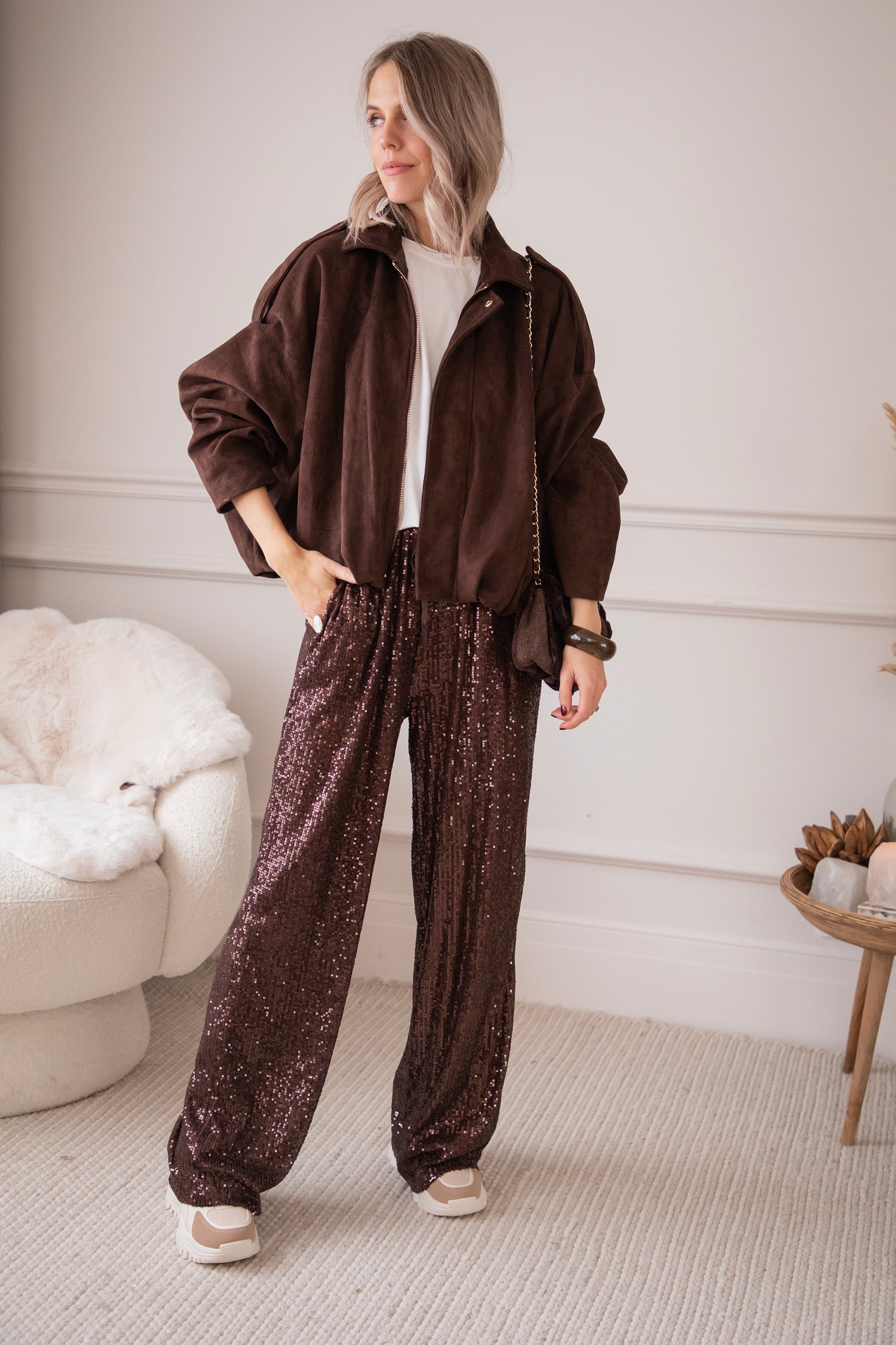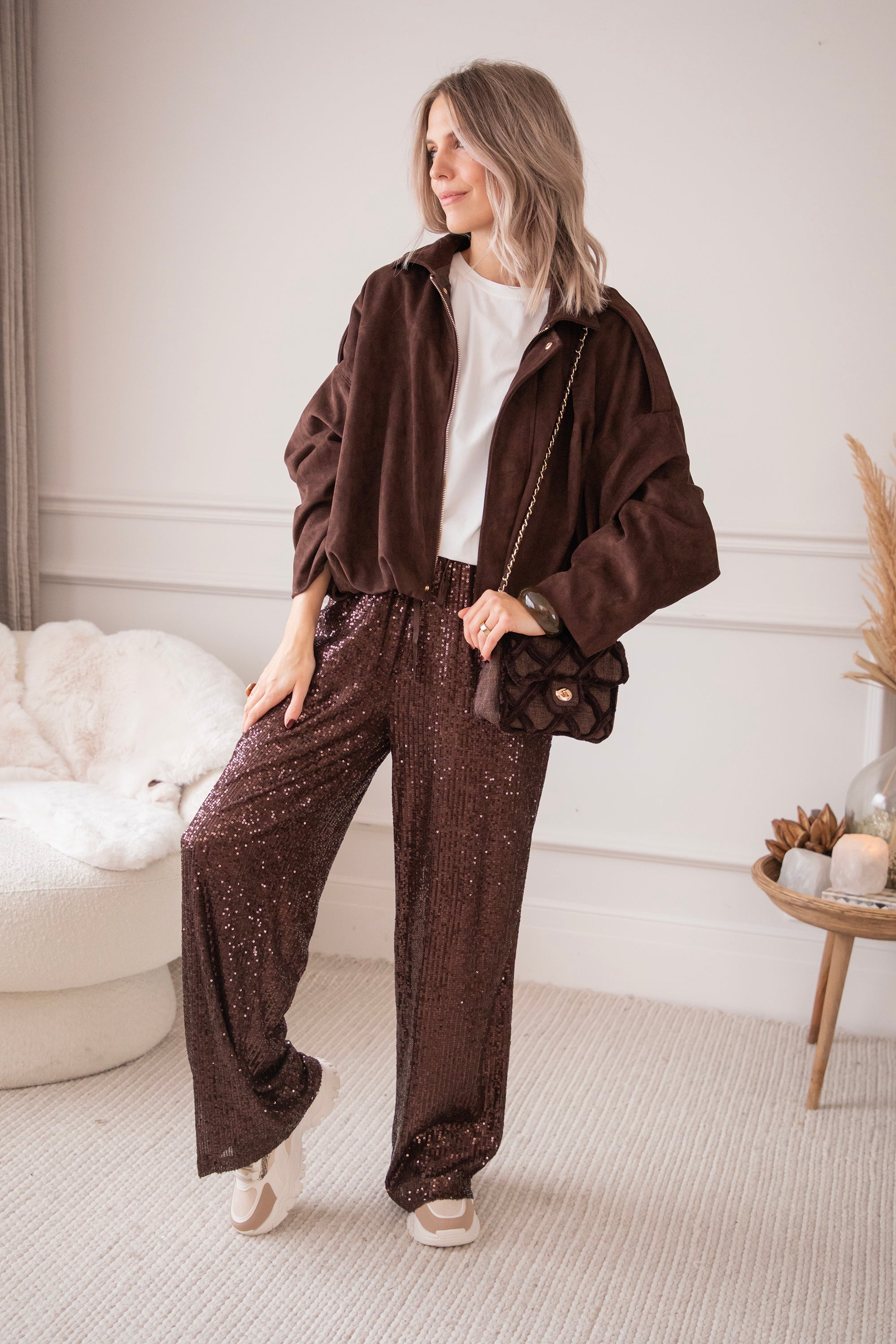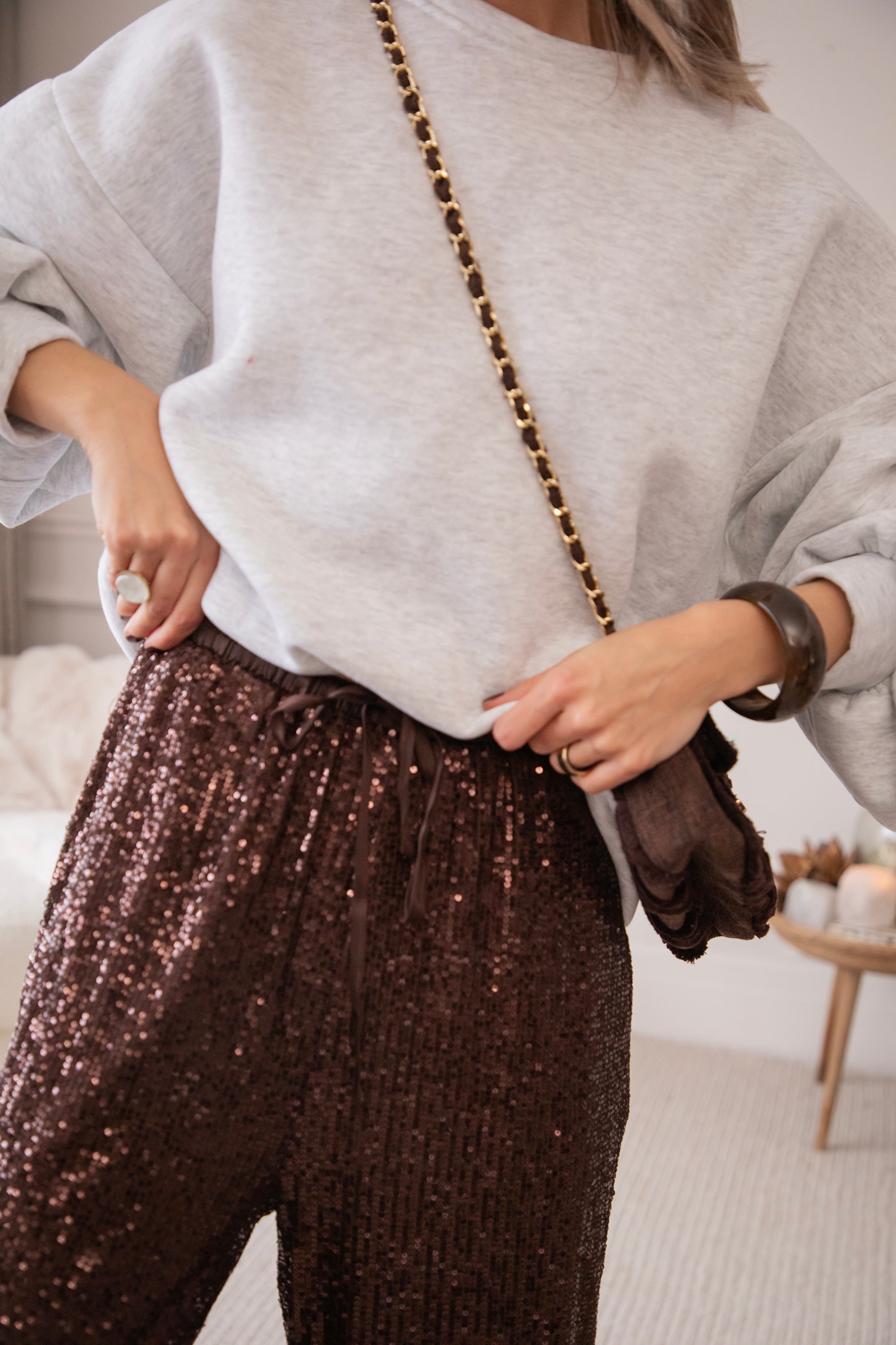Diese Schönheit lässt dich mit ihren schokoladenbraunen Pailletten buchstäblich strahlen 🤎 Und das Beste daran? Sie ist nicht nur für die Feiertage geeignet, ich trage sie auch unter der Woche, um meinem Arbeitstag einen Hauch von Glamour zu verleihen 🤩 Kombiniere sie lässig und edel, dann passt sie einfach immer!
