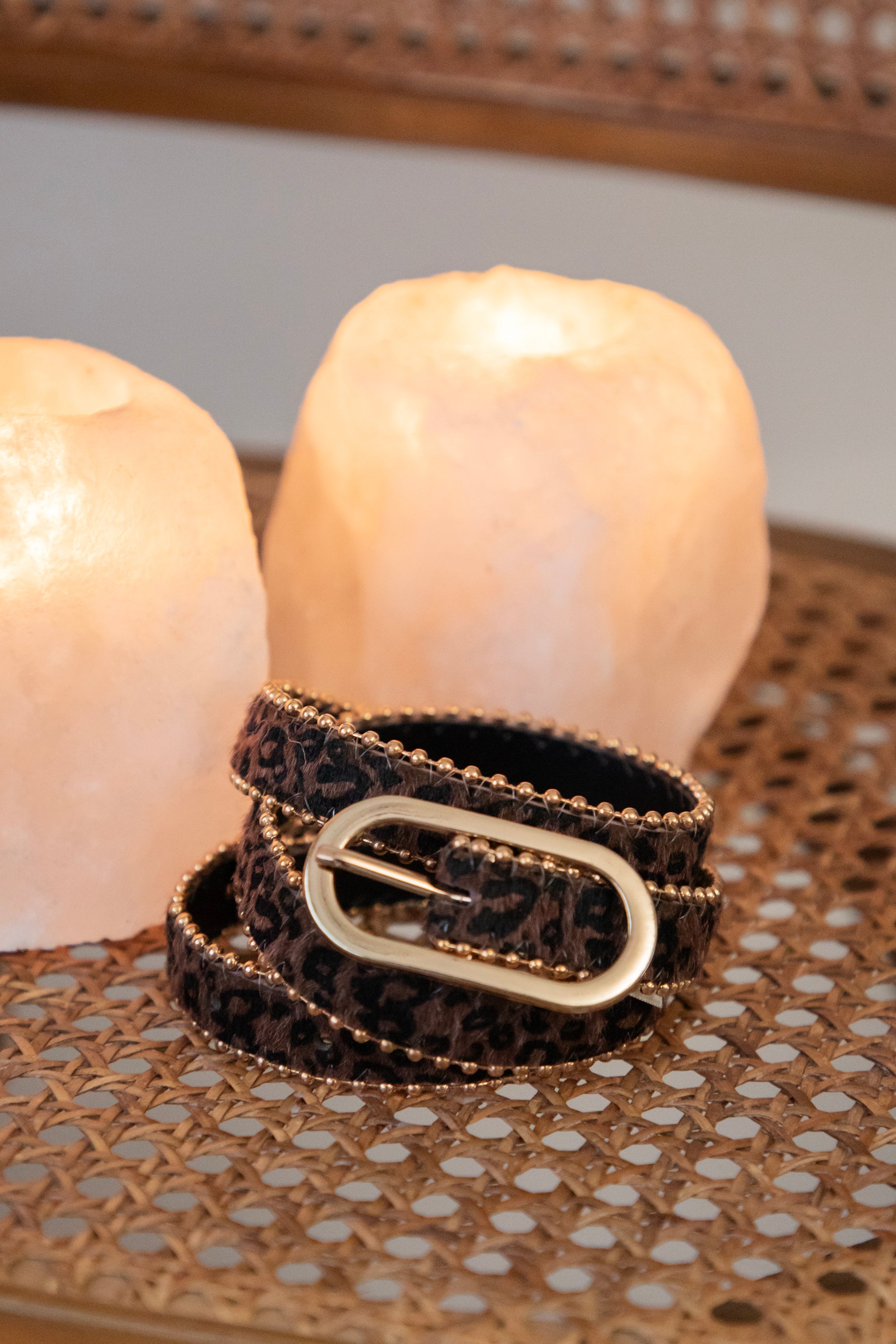 Der gleiche coole Print und die gleichen Details, aber jetzt ein bisschen kleiner! Die breite Version war super schnell ausverkauft, deshalb bin ich extra happy mit diesem ähnlichen Modell 😍 Wild About Details ist ein Gürtel, der deinem Outfit sofort einen wilden und schicken Touch verleiht. Der kamelfarbene Leopardenprint aus weichem Kunstfell fühlt sich wunderbar flauschig an, während das goldene Kugelketten-Detail entlang der Ober- und Unterkante für einen schicken letzten Schliff sorgt 💫