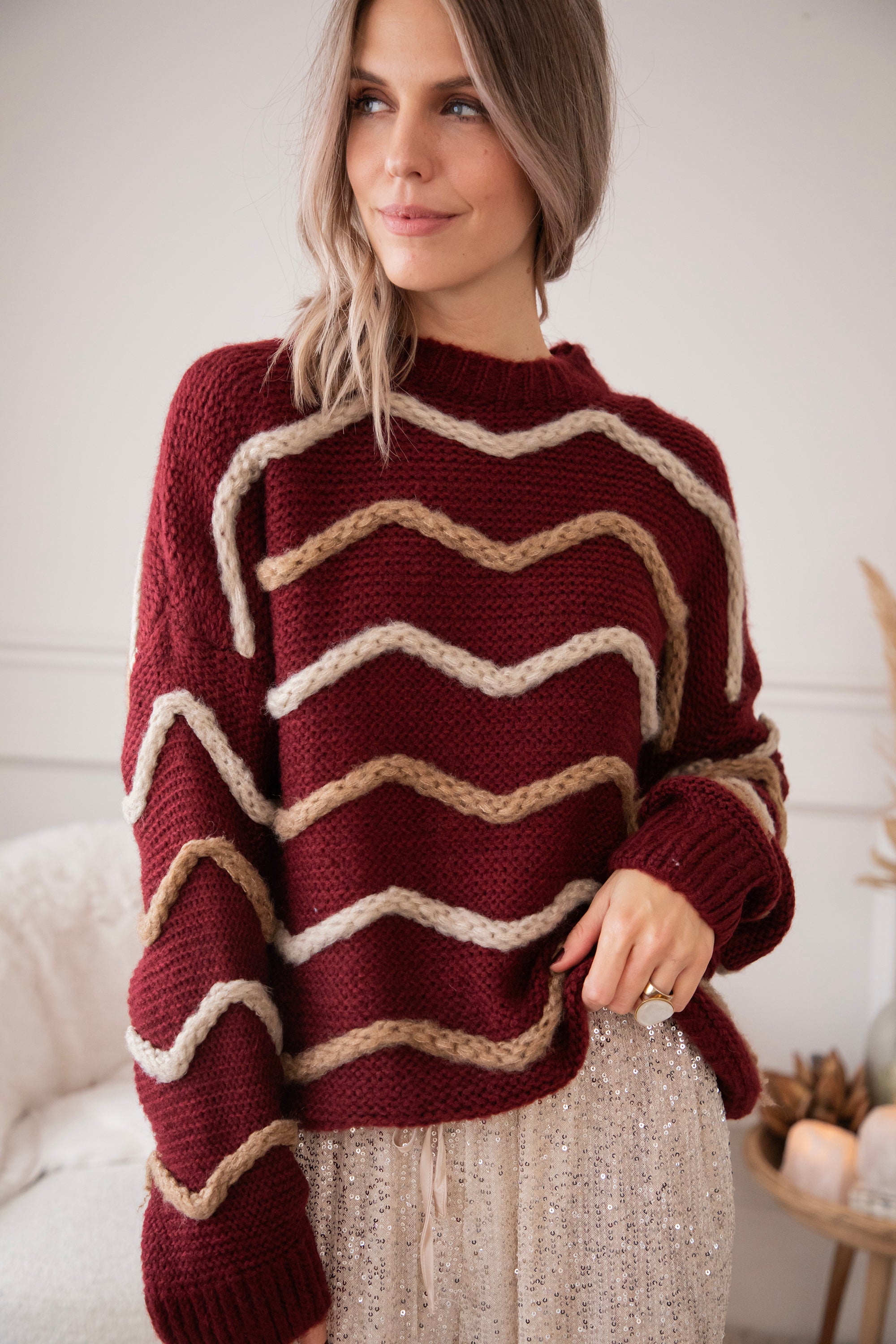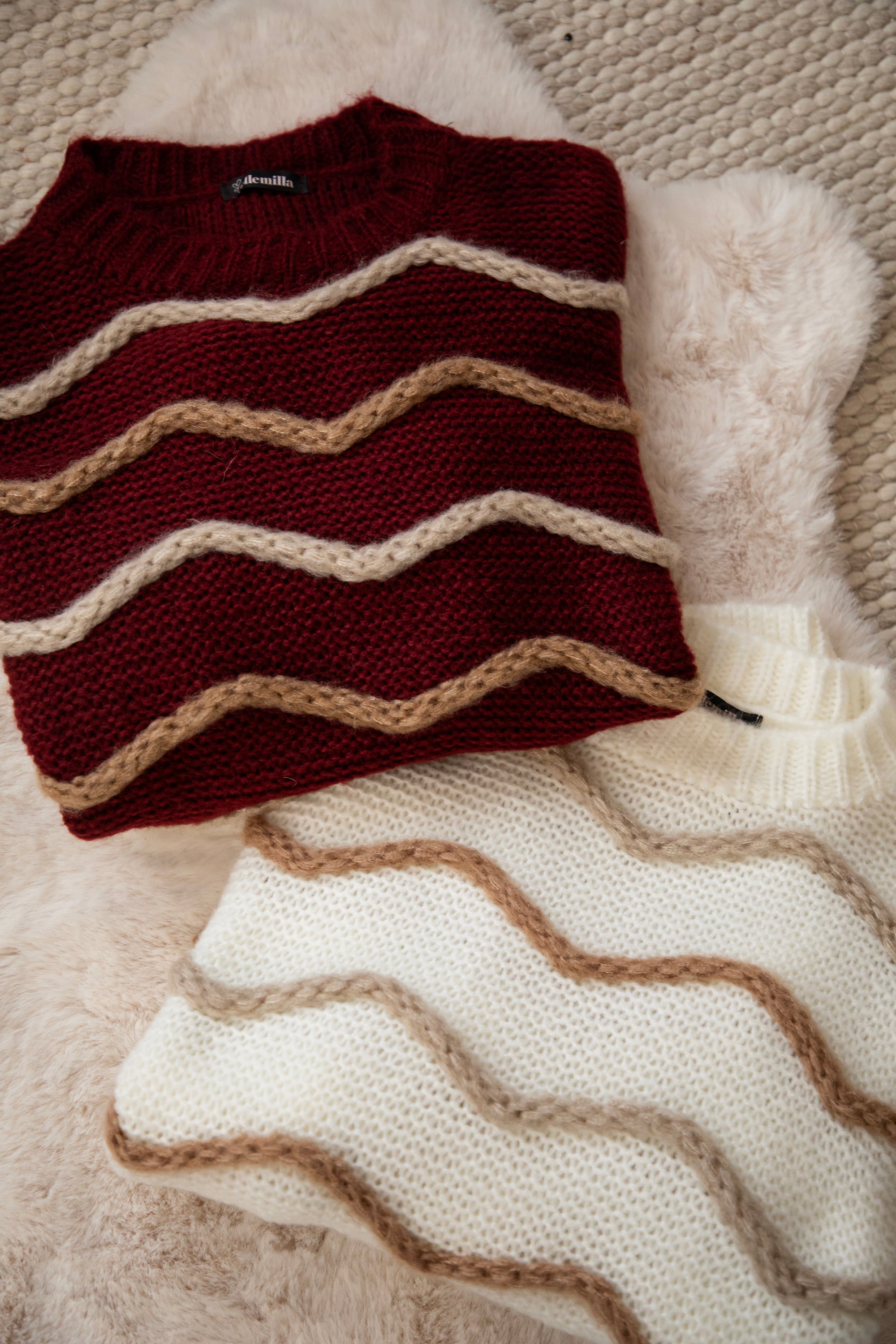 Ohhh, was für ein tolles Exemplar ist das wieder! Der Woolly Waves Pullover ist einer mit einem echten Twist 😉 Die wellenförmige Rippstruktur verläuft verspielt über die Vorderseite, den Rücken und die Ärmel, in einer wunderschönen Mischung aus Beige- und Kameltönen 🤎 Ein Strickpullover, der gleichzeitig gemütlich und besonders ist, ganz im typischen ellemilla-Stil, den wir so lieben ✨