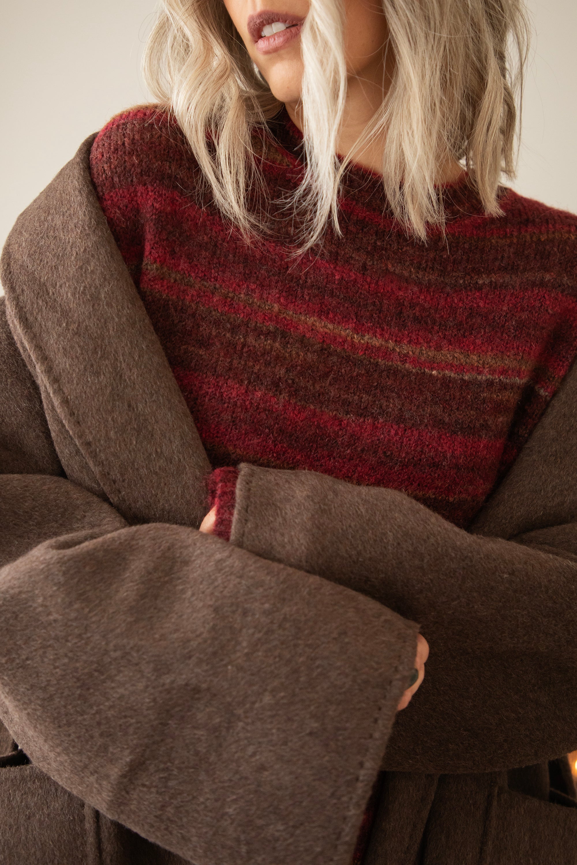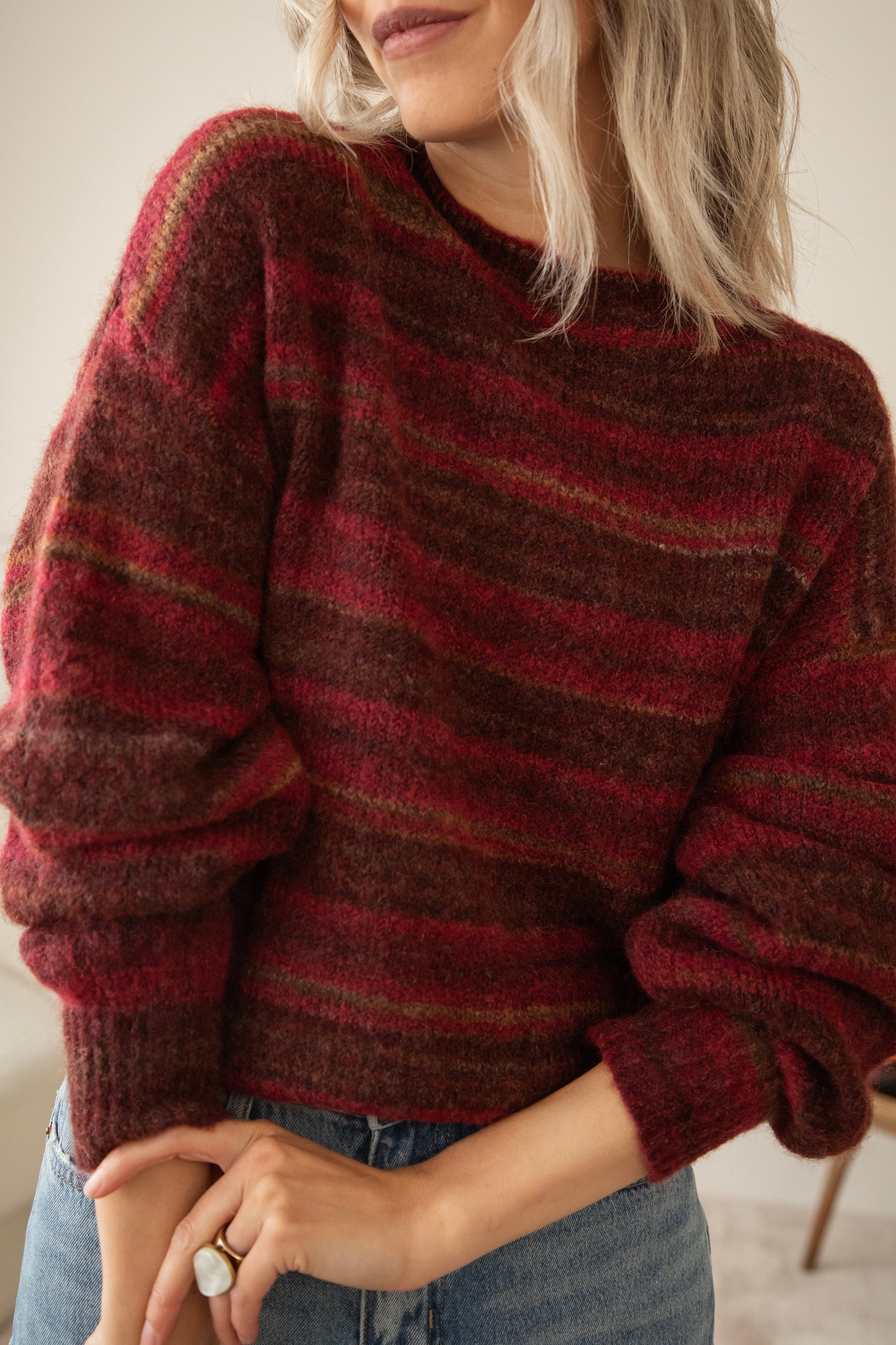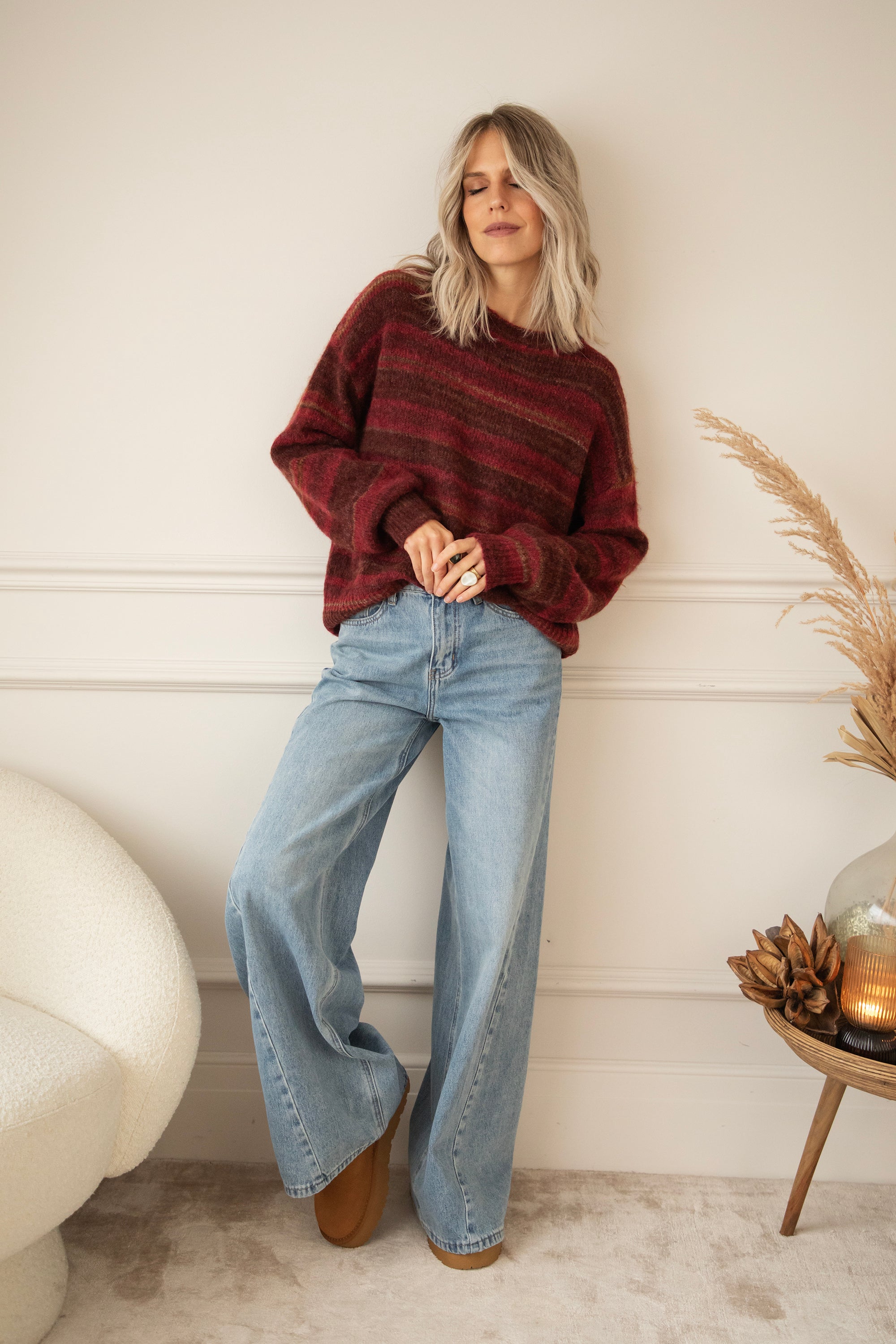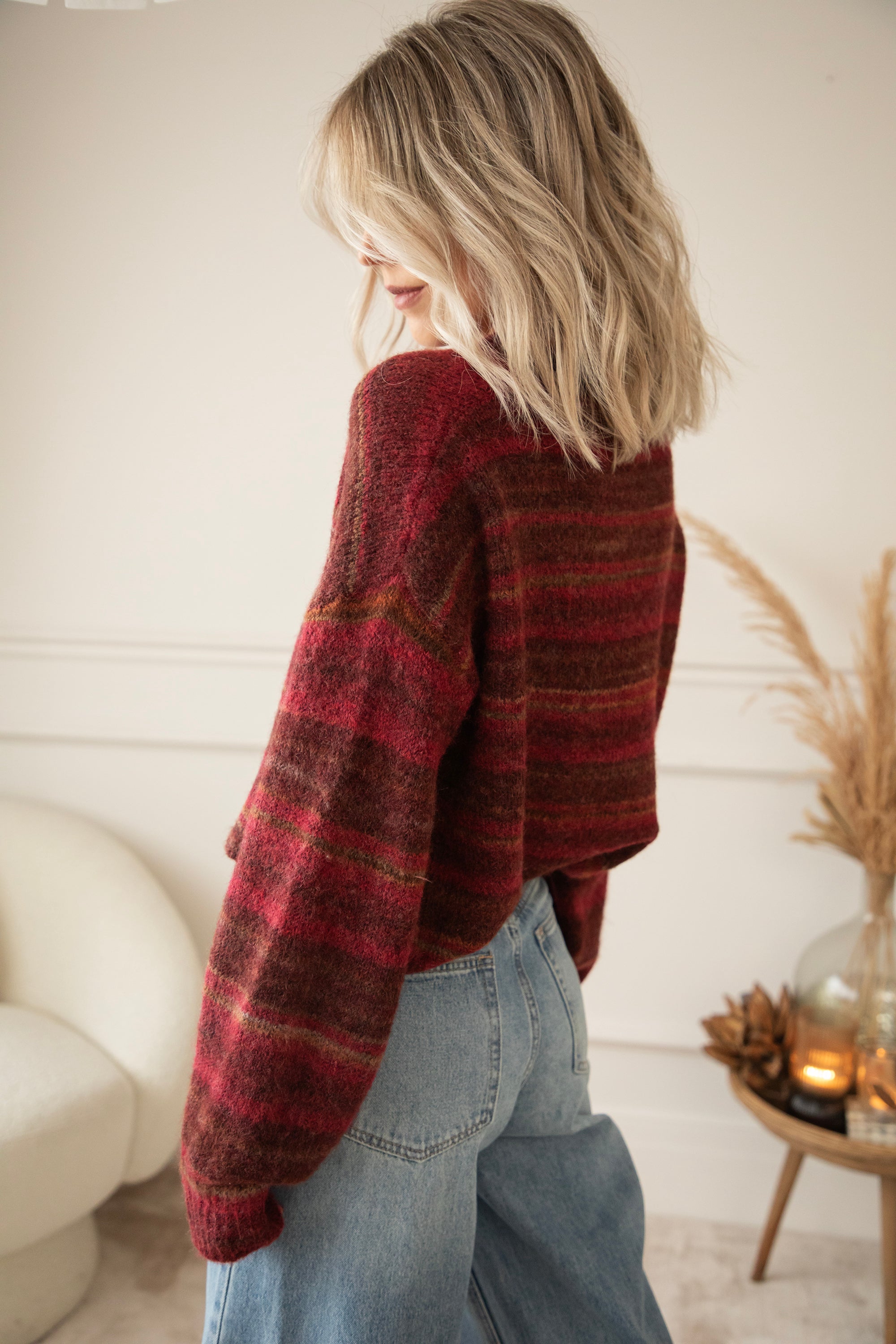 Hey Mädels, Zazu Stripe ist echt mein Lieblingspulli für gemütliche Momente! 🥰 Dieser weiche, wollige Strick mit den warmen Streifen in Schwarz, Braun und Camel... eine gemütliche Bereicherung für deine Garderobe! 🧶 Für mich ist ein gestreifter Pullover ein Klassiker, den jeder in seinem Kleiderschrank haben sollte 🥰 Dieser kommt in einer Mischung aus Magenta, Braun und Camel daher!