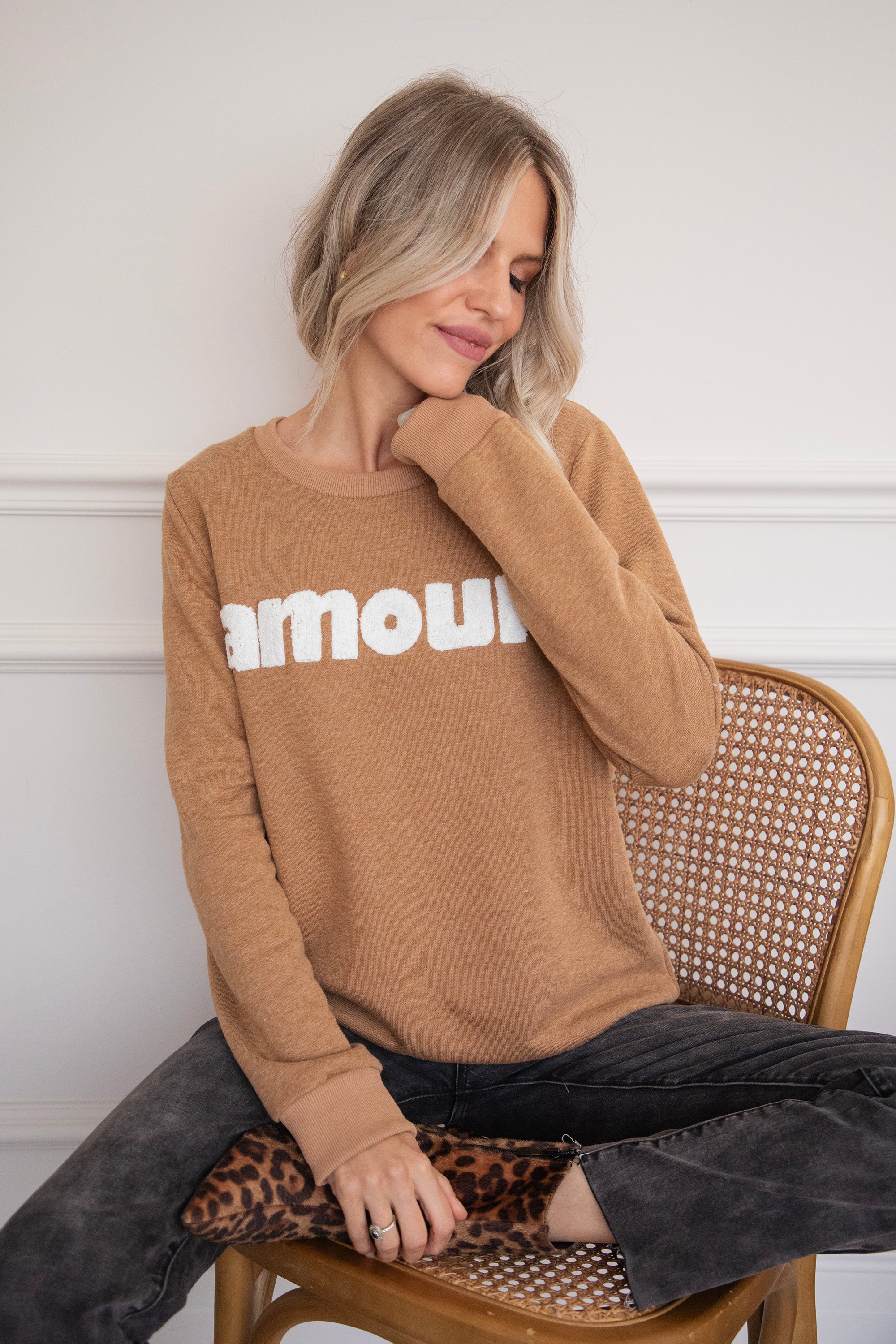 Der Amour Pullover ist wieder da, Mädels, und diesmal in den schönsten neuen Herbstfarben! Ein echtes Ellemilla-Must-have, in das du dich JEDE Saison aufs Neue verlieben wirst. Dieser Pullover strahlt Liebe, Geborgenheit und Komfort aus! 🎀 Und dank des AMOUR-Logos aus weichem weißem Frottee bekommt dein Outfit sofort einen kuscheligen Akzent! 🐻