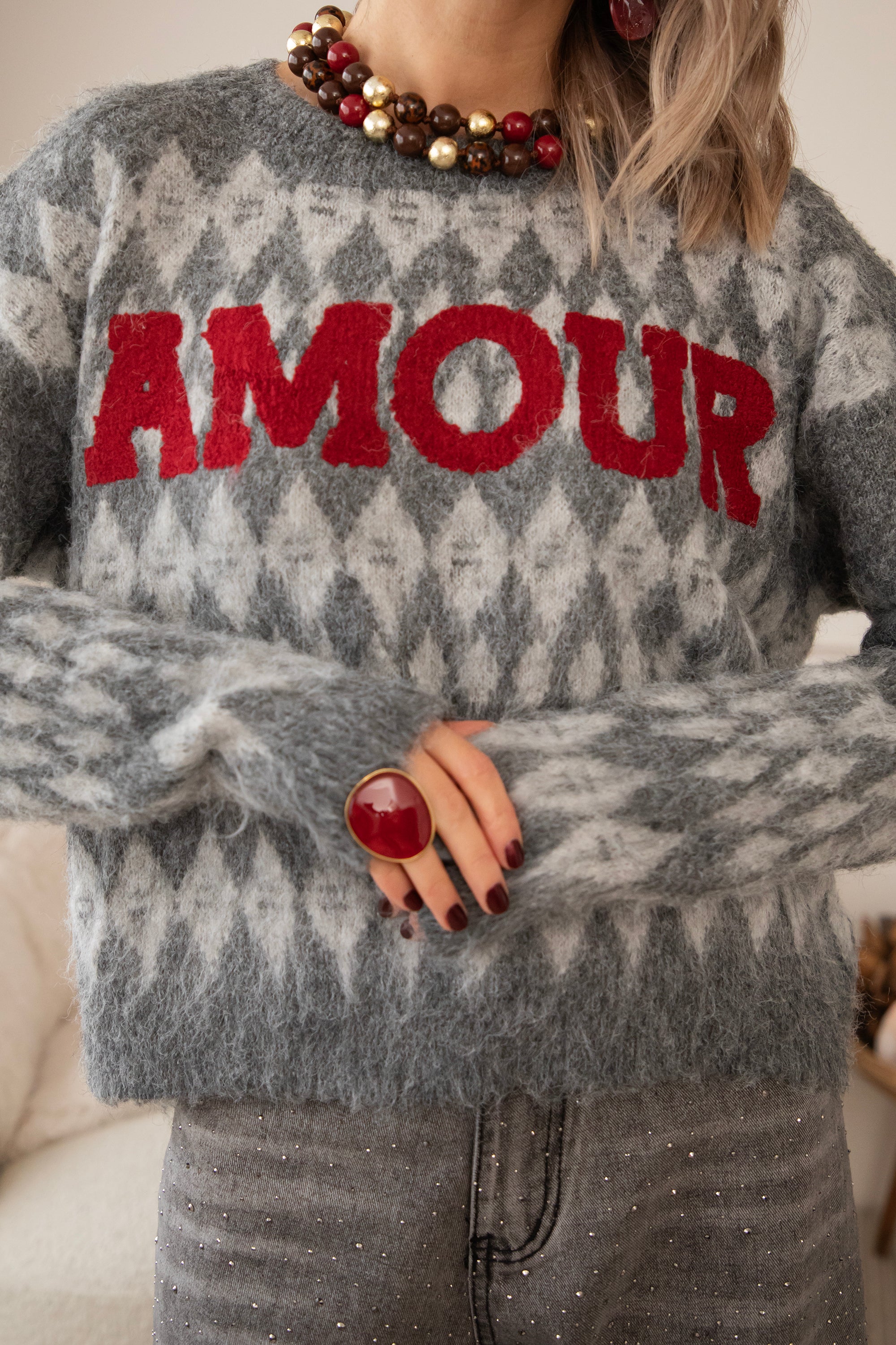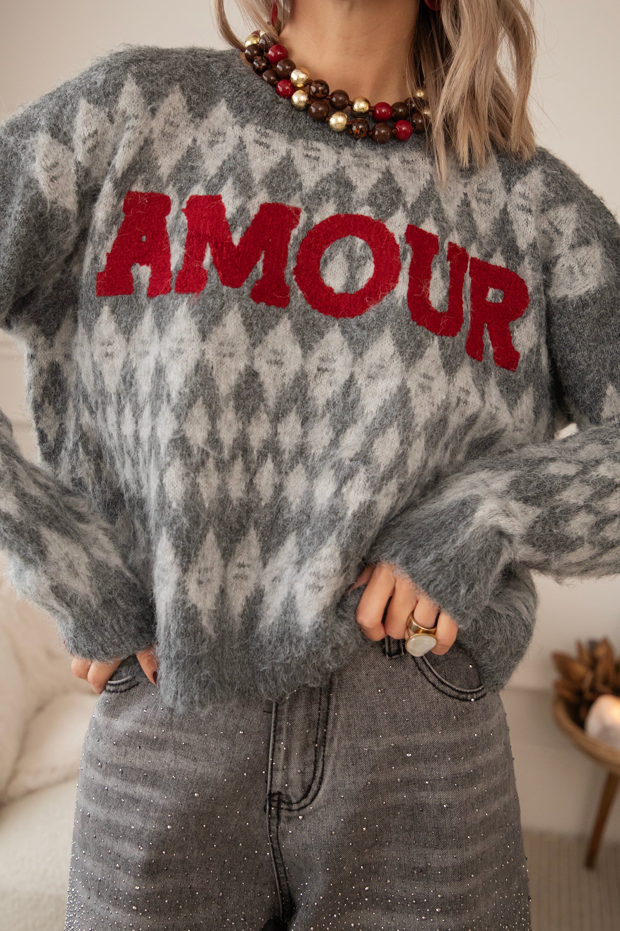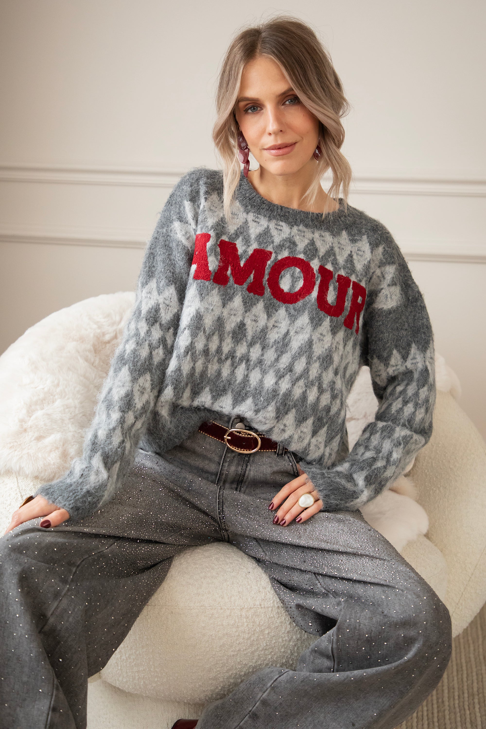 Pullover - Amour Motif - Dunkelgrau/Rot