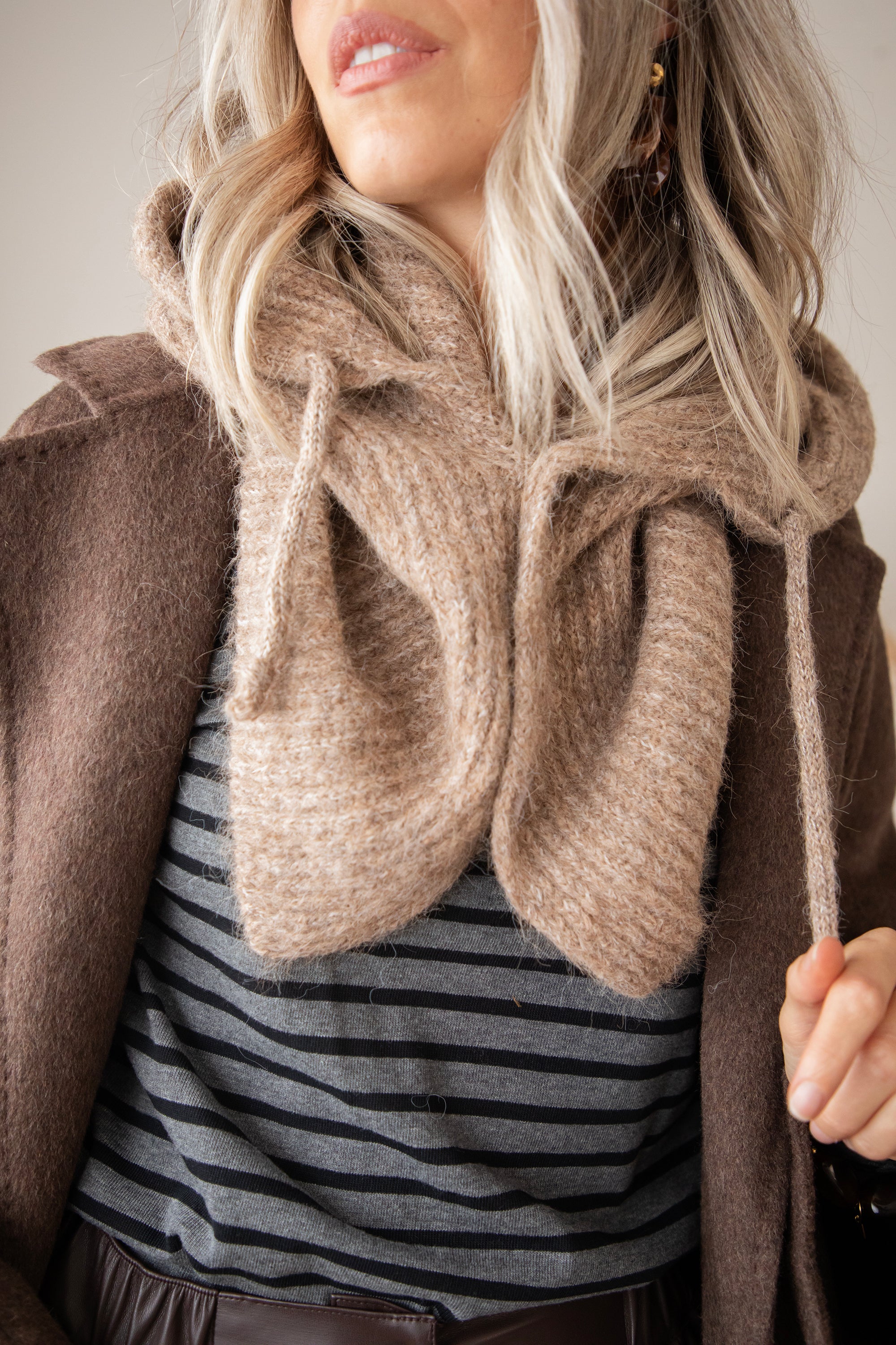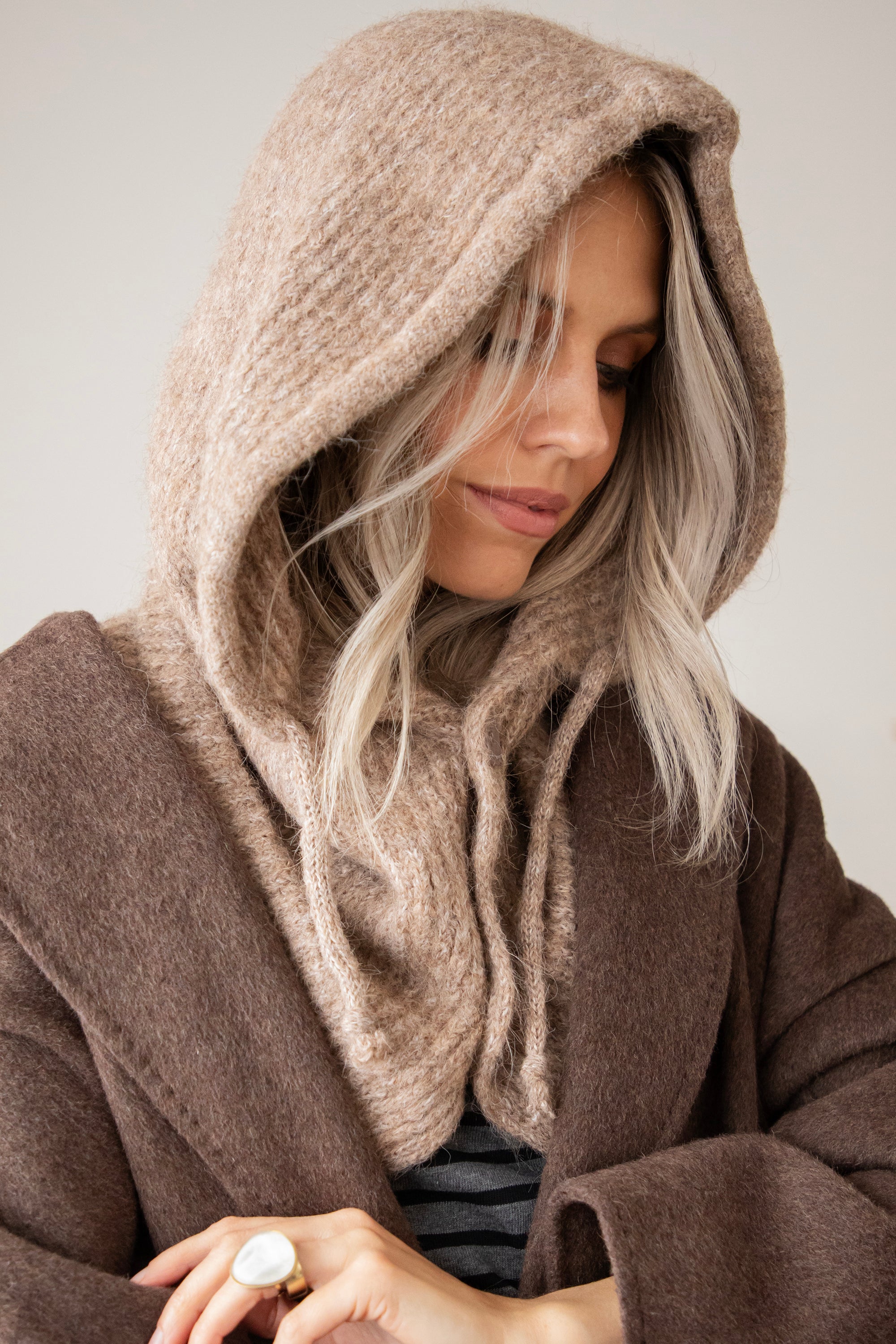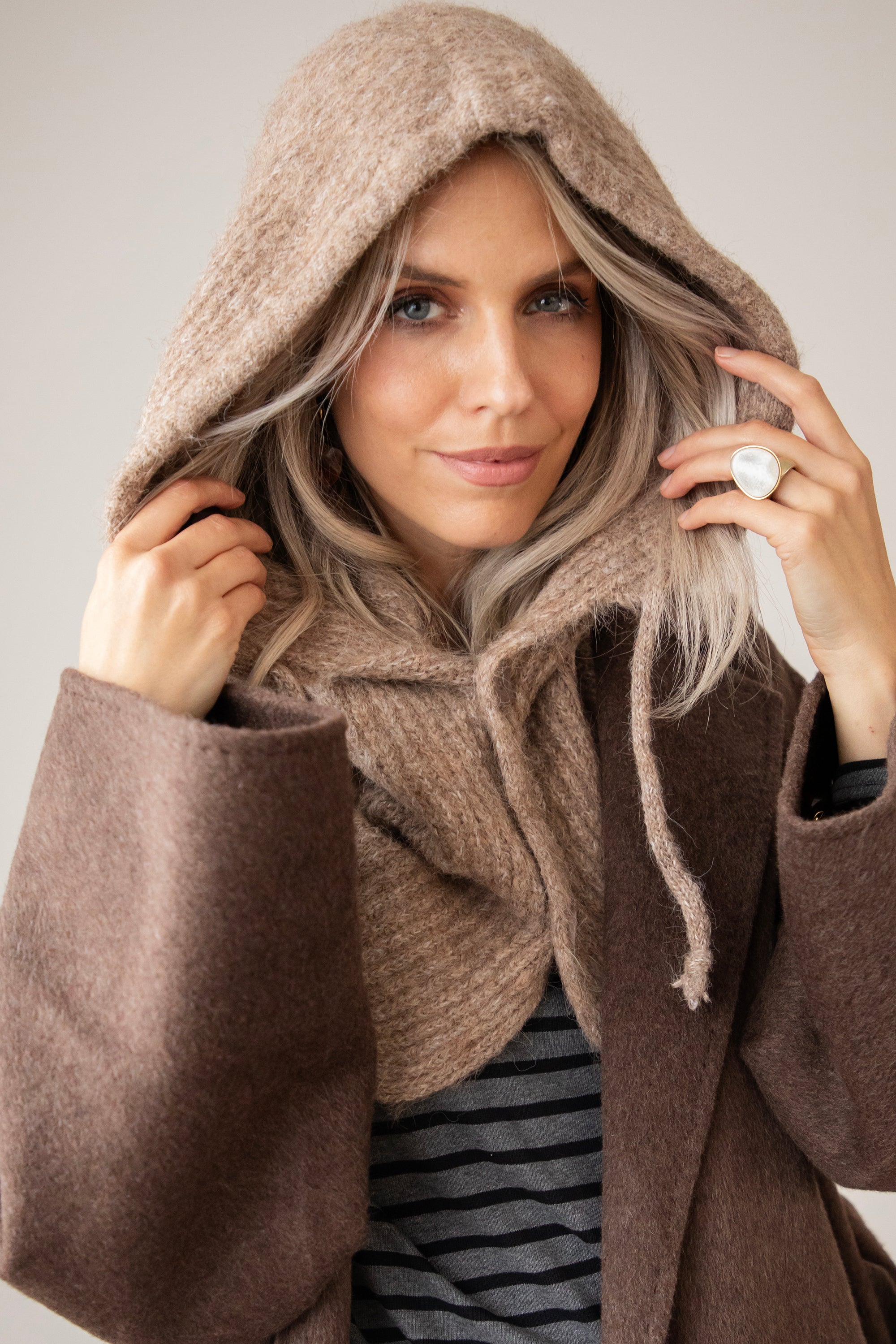 Das ist doch eines der praktischsten Accessoires, die wir haben! Ein Schal mit einer Mütze, toll, nicht wahr?! 🥹 Super praktisch, wenn deine Jacke keine Kapuze hat! So musst du keinen Schal und keine Mütze separat mitnehmen, sondern nur diese kuschelige Kapuze. Auch toll, um sie einfach drinnen zu deinem einfarbigen Pullover zu tragen 🤭