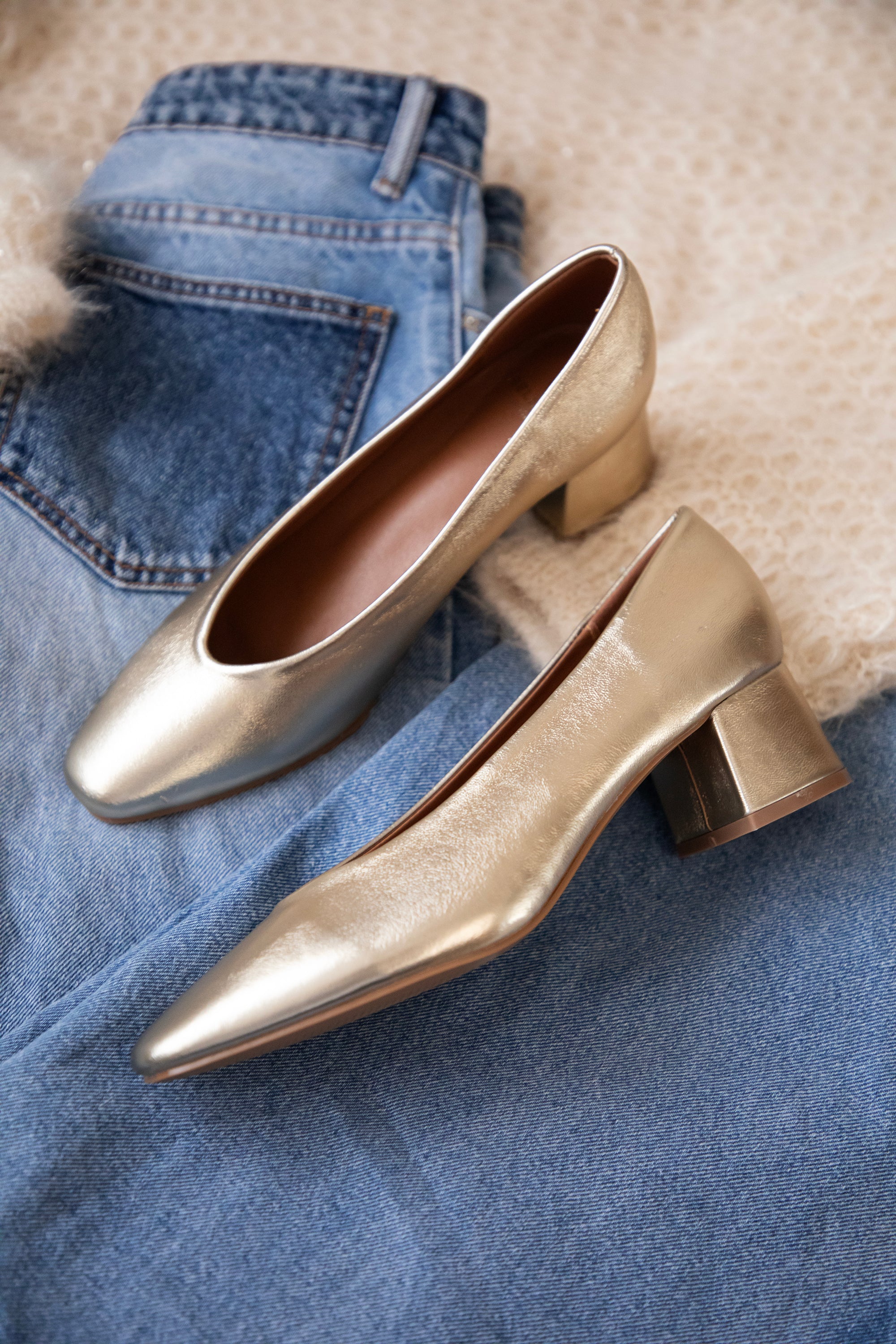 Und das Beste daran? Sie sind echt bequem! Dank des niedrigen, breiten Absatzes von 4,5 cm kannst du super bequem darin laufen – ideal für Partys, Abendessen oder einfach, um deinem Alltagslook einen goldenen Touch zu verleihen 🙌