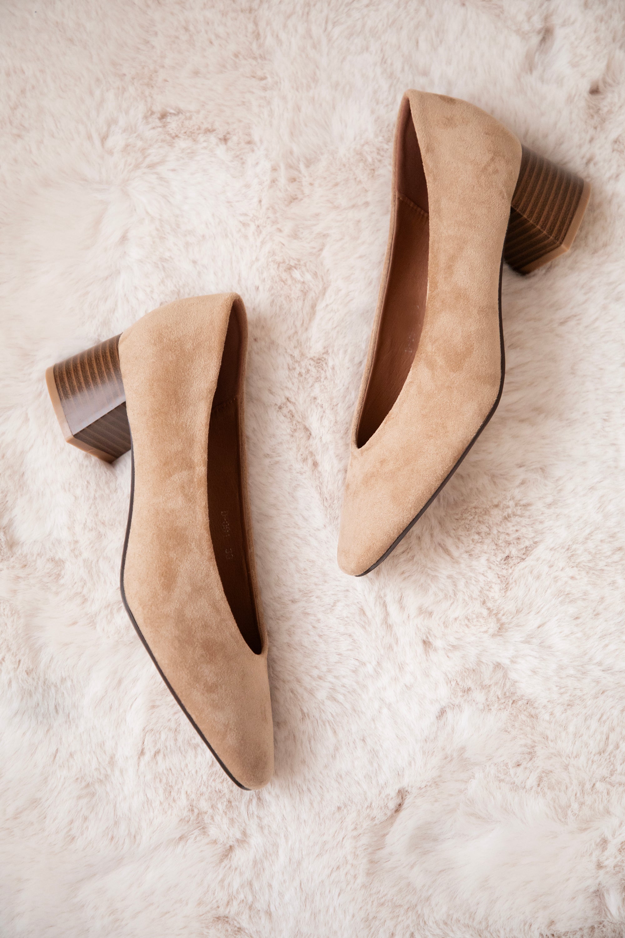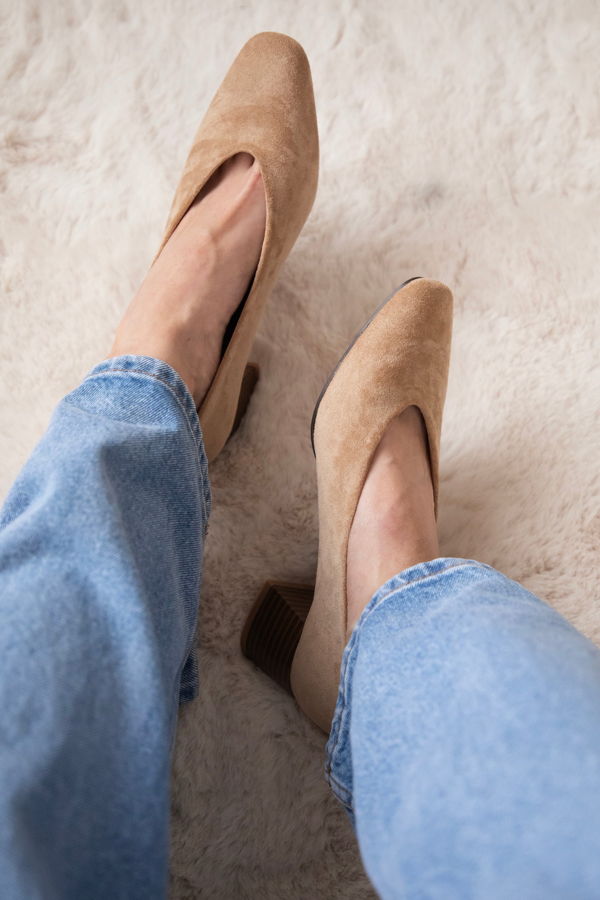 Mädels... diese neuen Bonny Heels aus beigem Wildleder sind so süß und elegant! 🥹