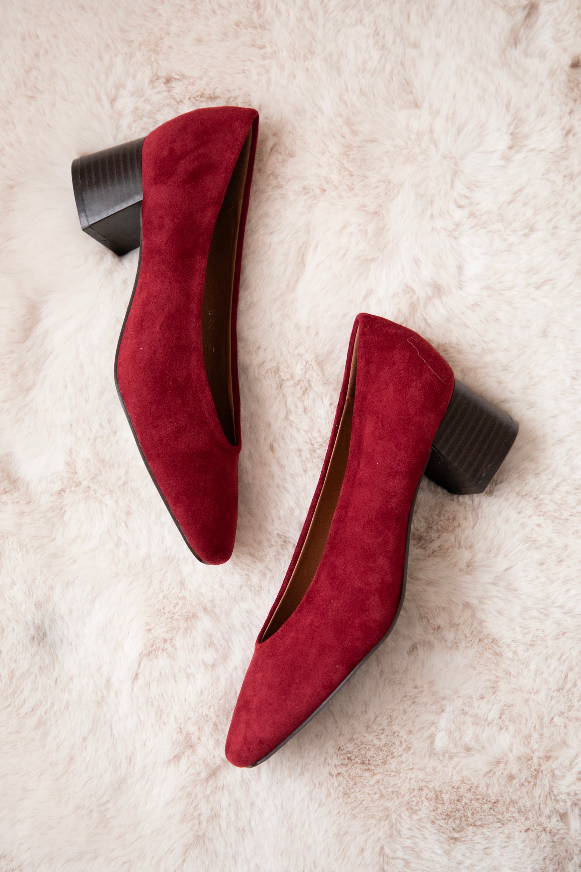 Ohhh Mädels... diese burgunderroten Schönheiten sind einfach himmlisch! 🥹 Die Bonny Heels aus weichem Wildleder haben so einen romantischen Vintage-Charme – genau der warme, edle Akzent, der jeden Look sofort aufwertet! Echt so ein Farbton, der sofort ins Auge fällt ❤️