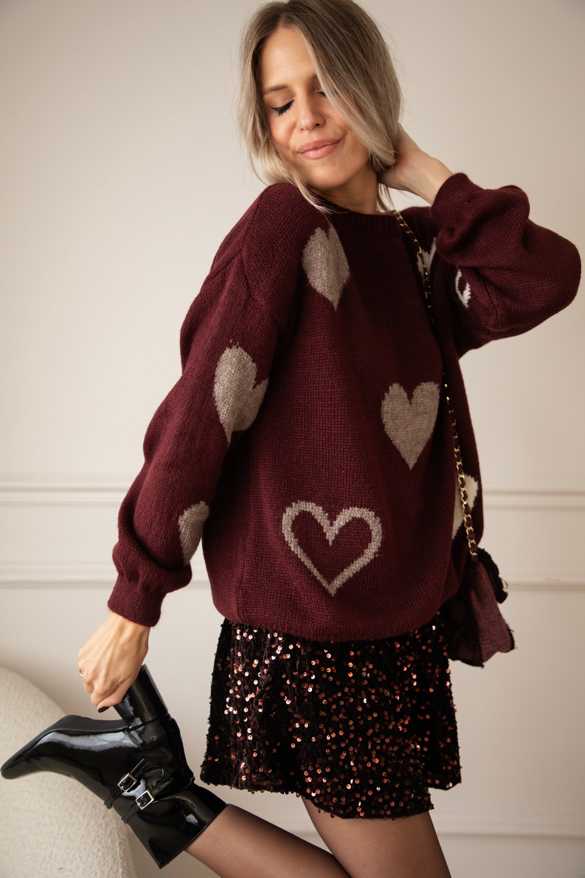 Unser "Complete My Heart”-Pullover ist echt zum Verlieben! Dieser locker sitzende Pullover in warmen Brauntönen hat süße Herzen in Taupe und Weiß auf der Vorderseite 🤍 Einige Herzen sind nicht ausgemalt, was ihn besonders verspielt macht! 😍 Perfekt für eine Extraportion Liebe und Gemütlichkeit in deiner Garderobe. Und ja, er fühlt sich auch noch wunderbar weich an 🥹