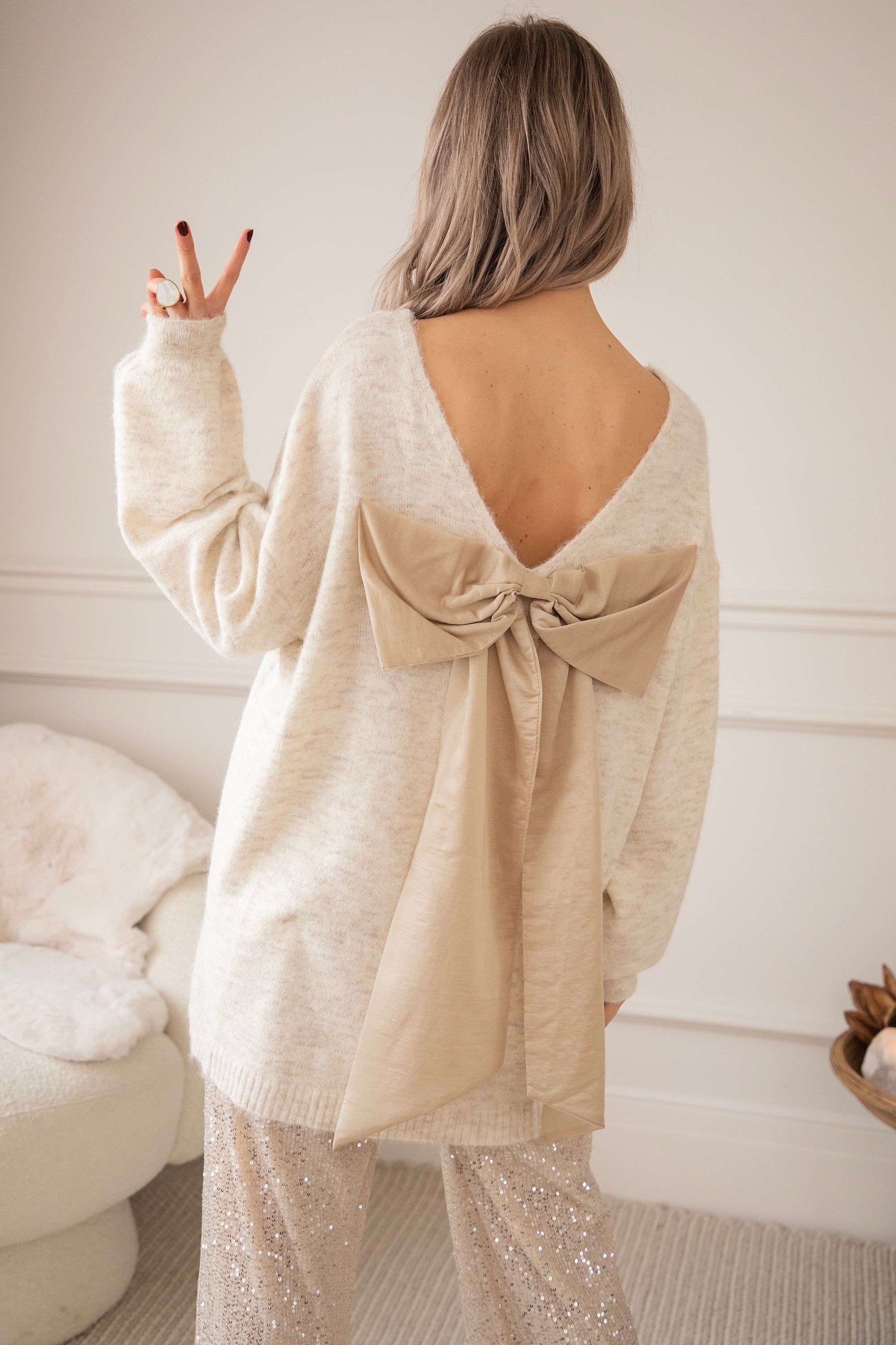 Pullover/Pulloverkleid - Glow With A Bow - Beige
