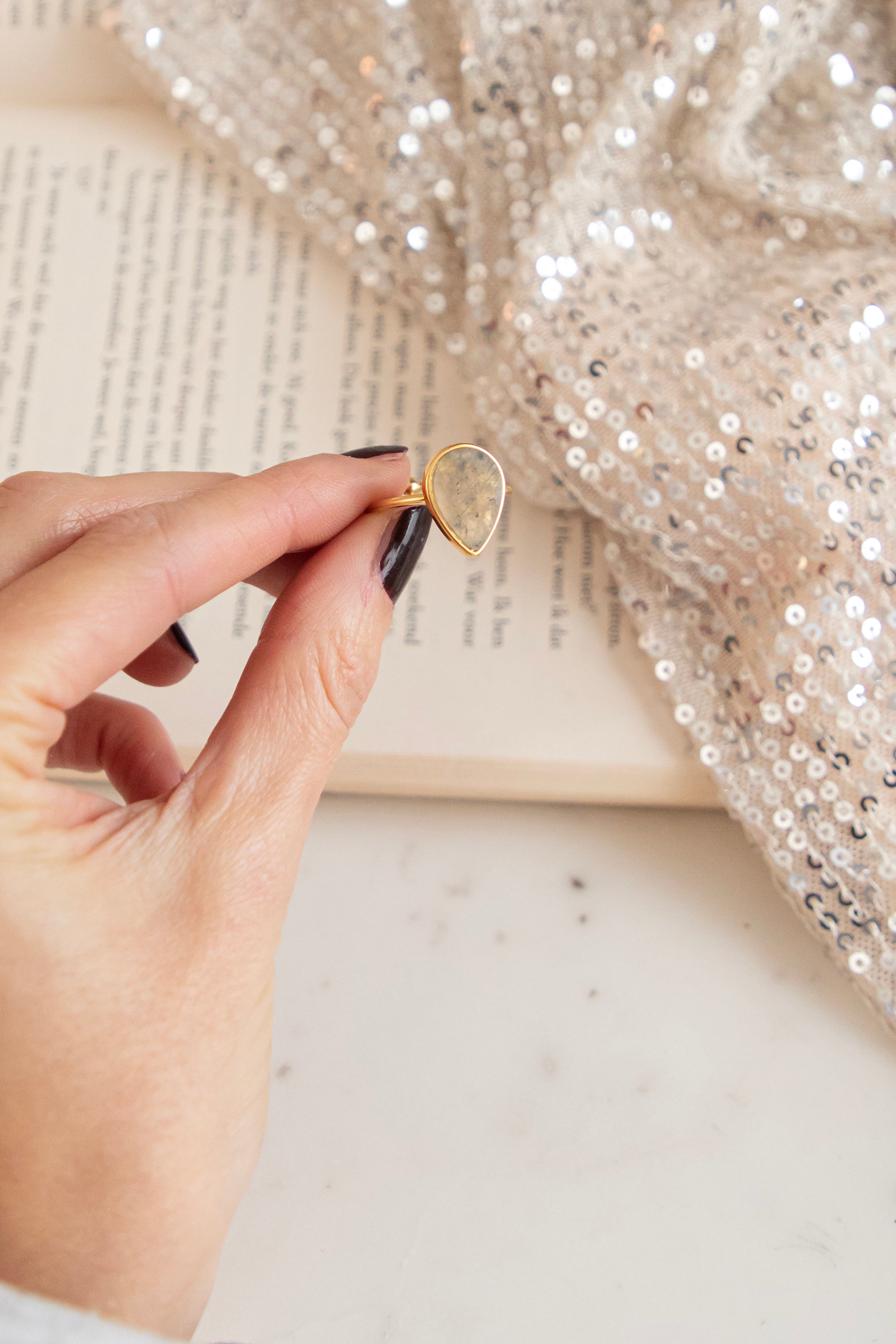 Ring - Labradorite Drop - Taupe/Gold