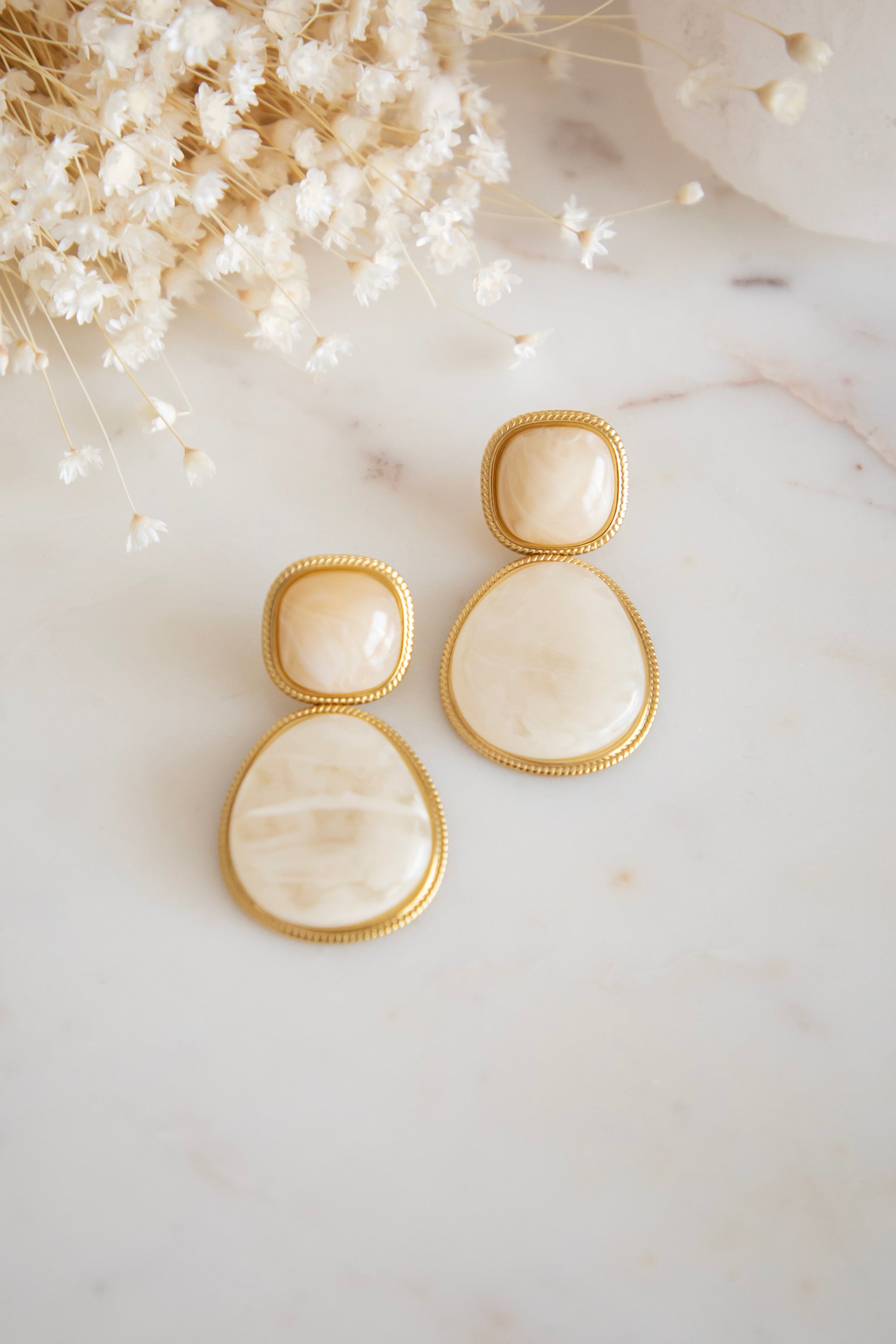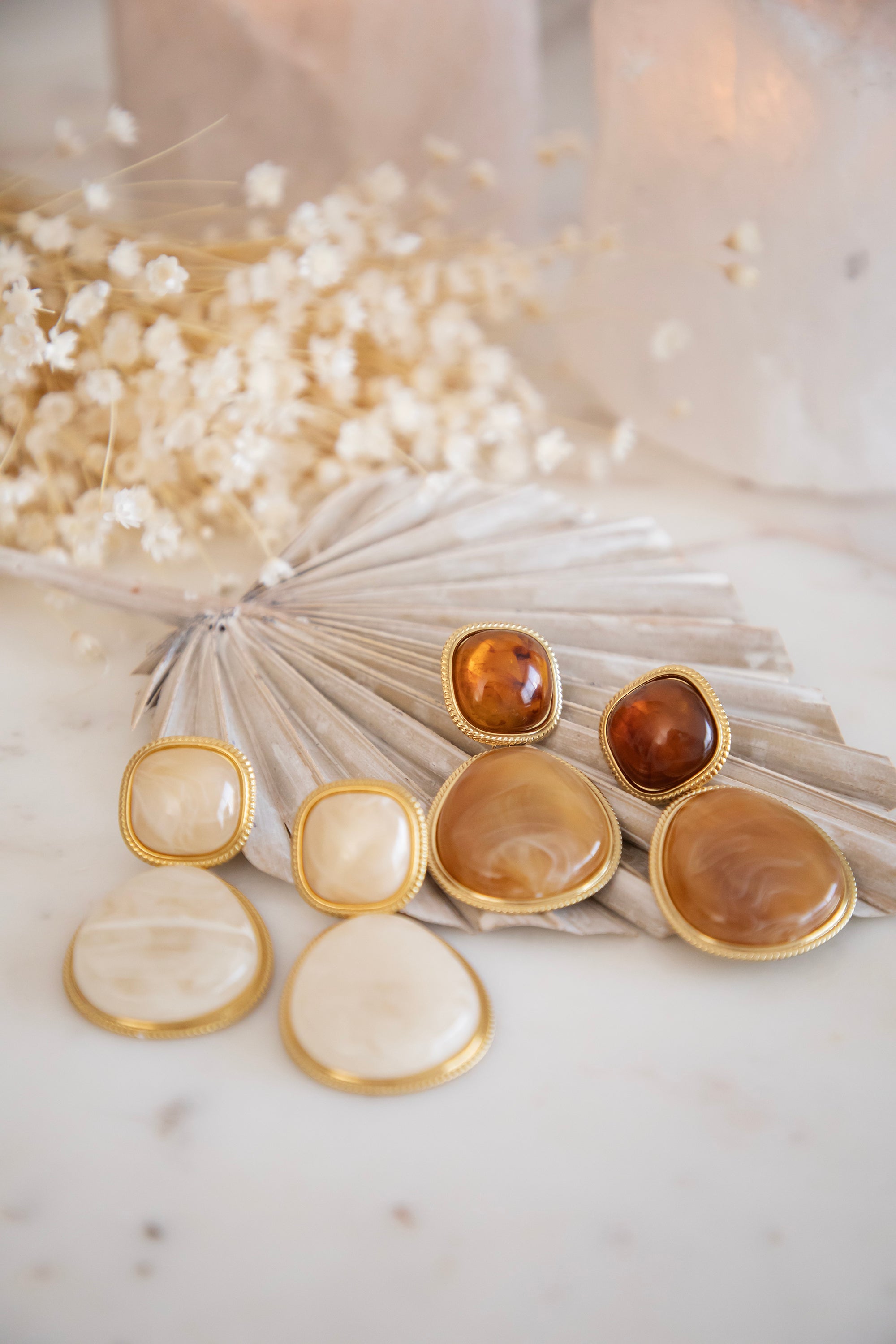 Deshalb bin ich so verliebt in diese wunderschönen Lunara Ohrringe mit ihrem beigefarbenen Marmor-Look 🤍