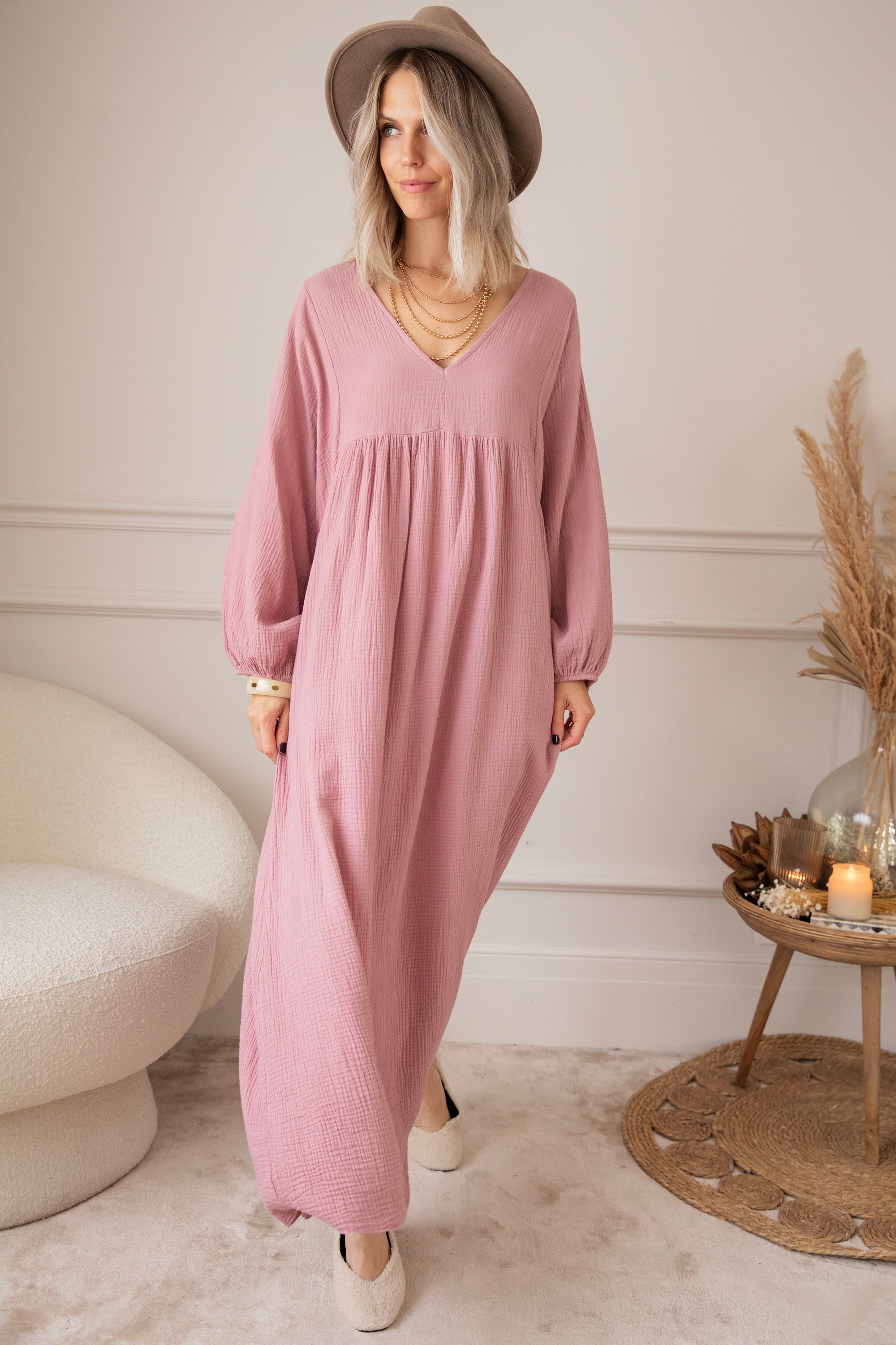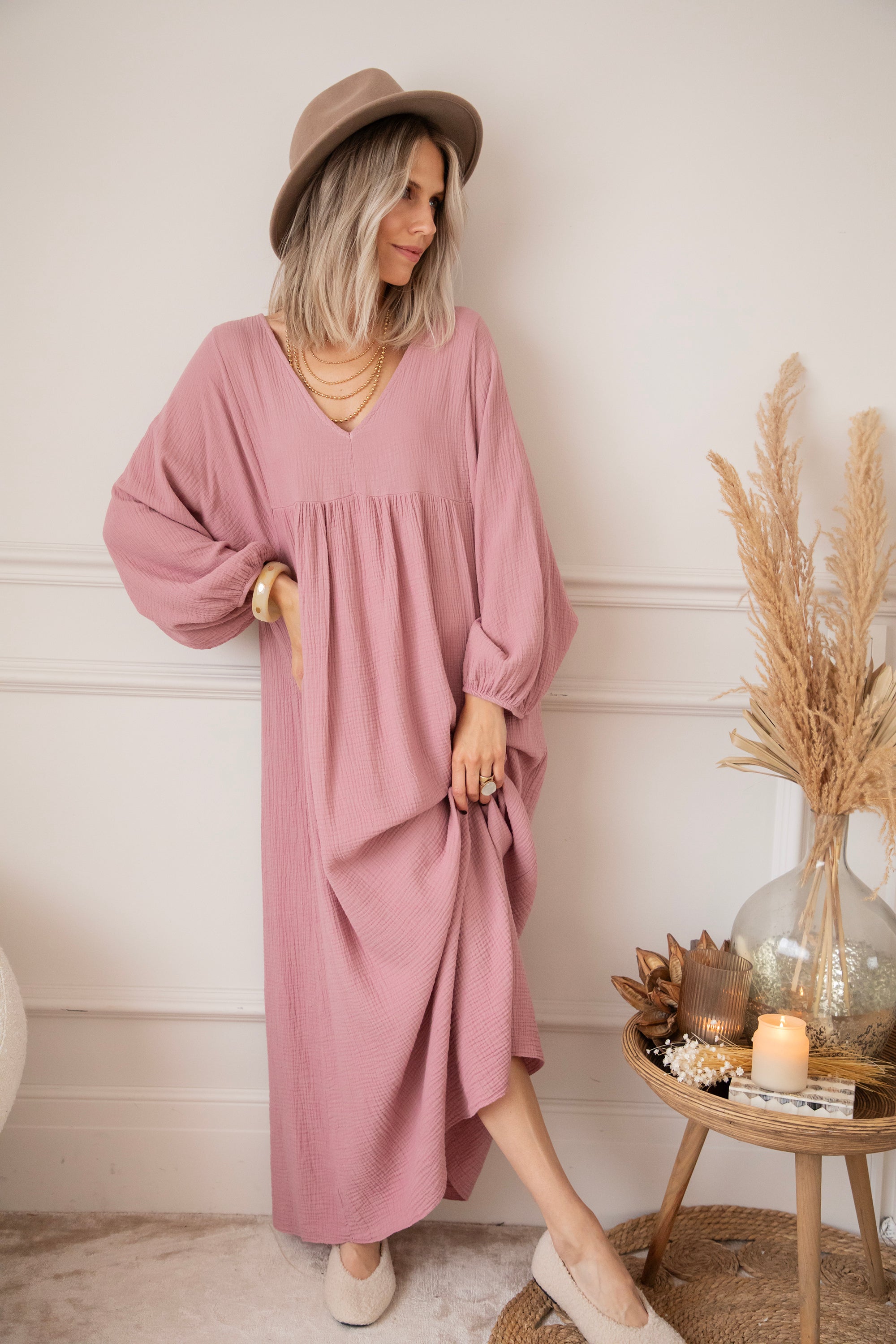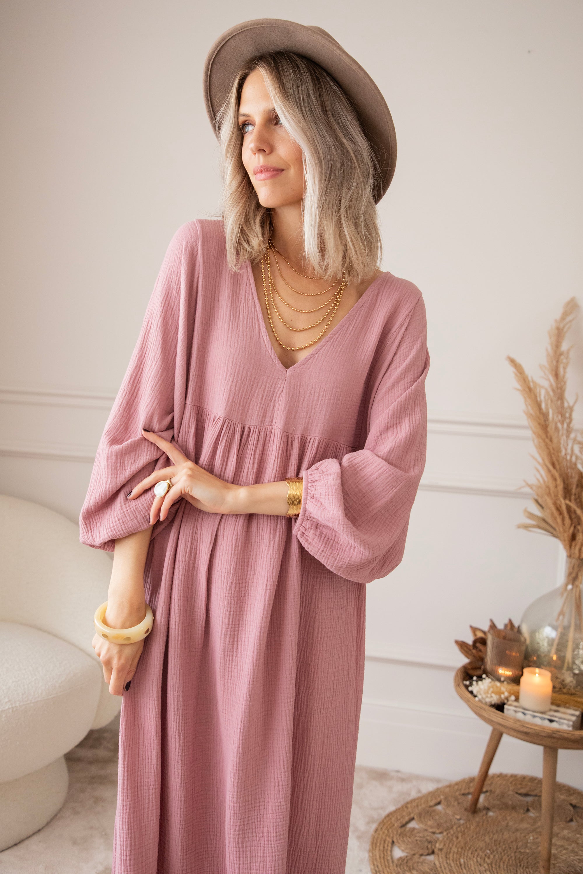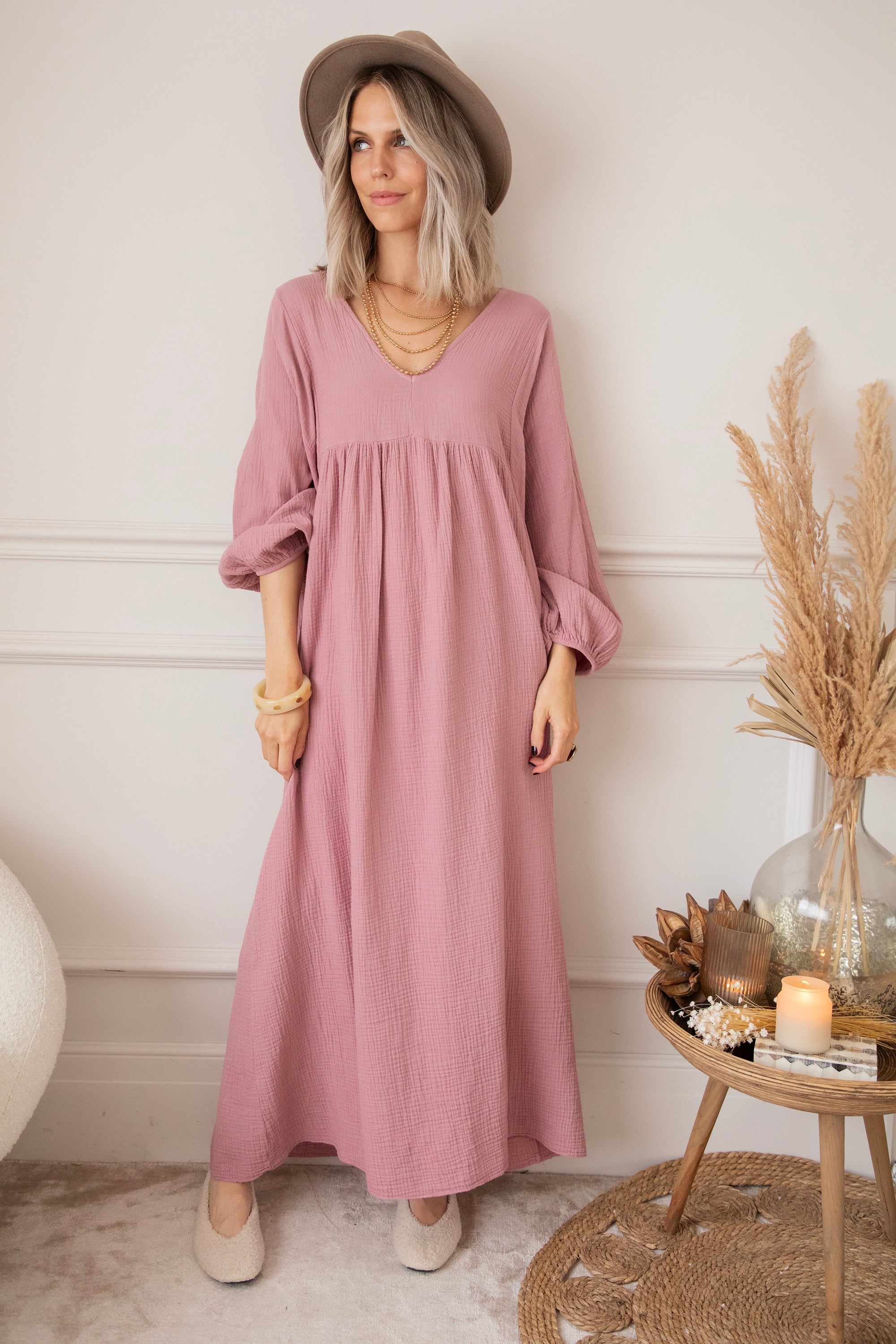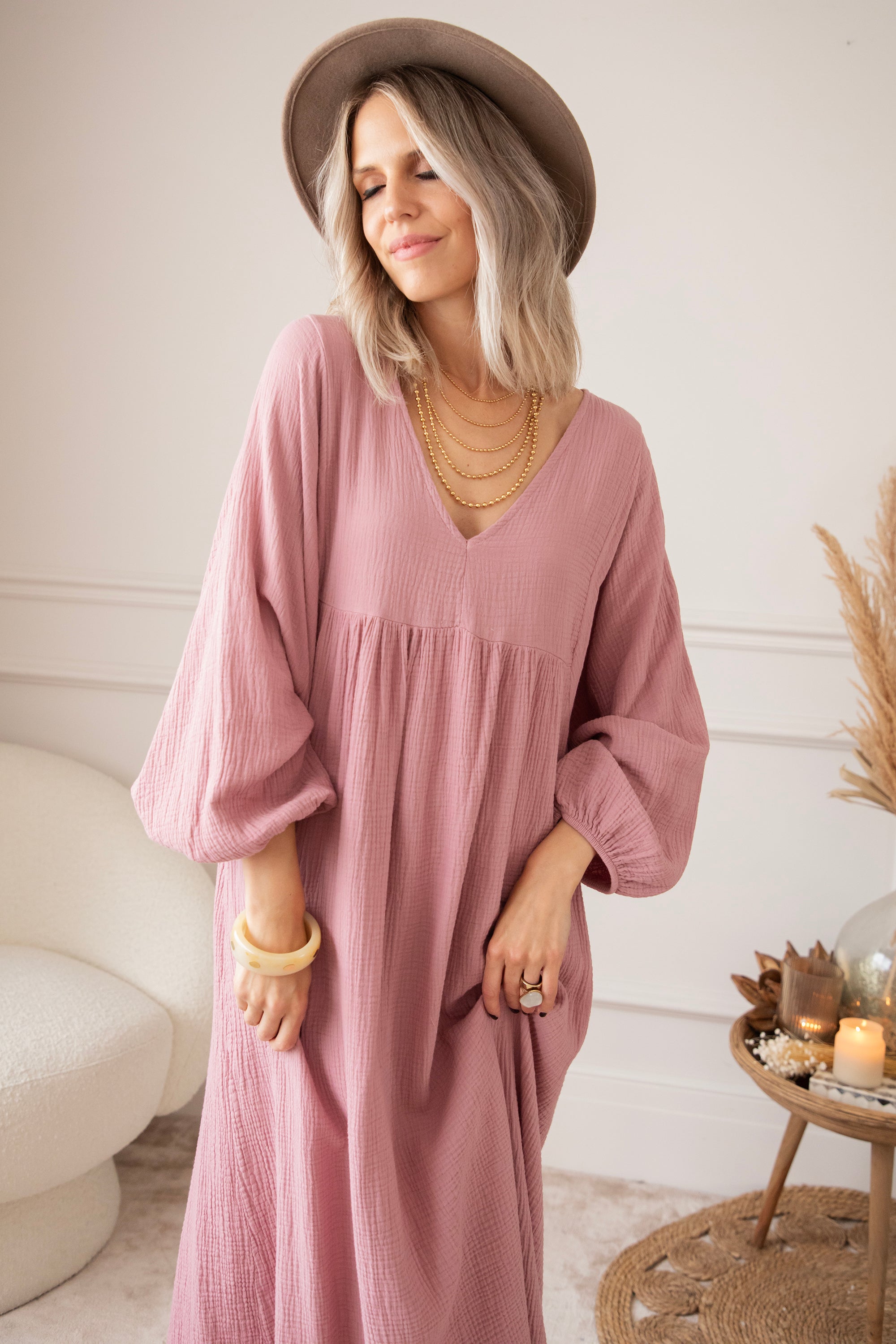 Der V-Ausschnitt macht das Kleid besonders feminin – schön mit einer Halskette zu kombinieren!