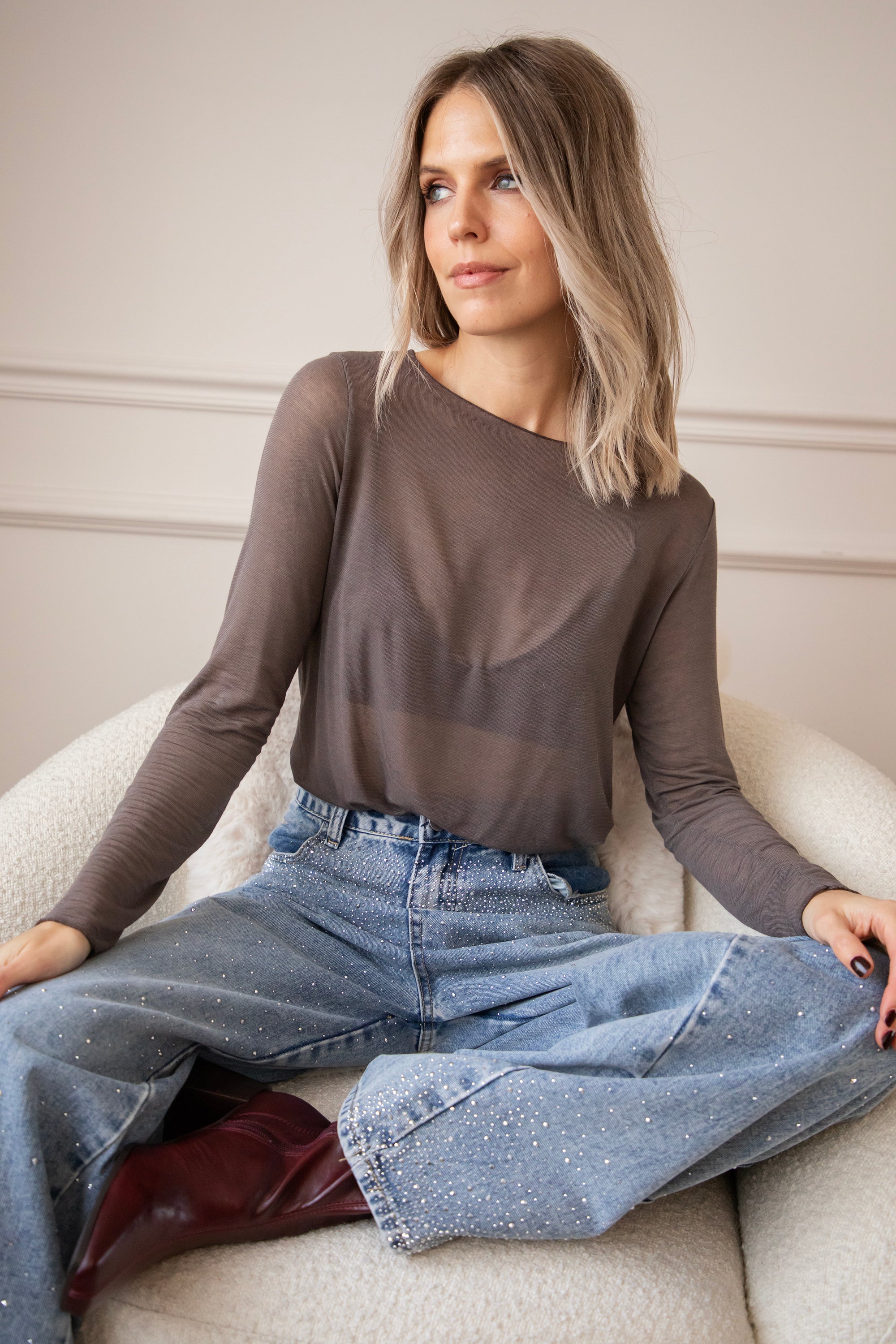 Manchmal gibt's Momente, in denen du einfach nur etwas Sanftes brauchst... und genau dafĂŒr ist Meshmerize gemacht đ€ Dank der superweichen Kaschmirmischung fĂŒhlt es sich an wie eine liebevolle Umarmung auf deiner Haut, so leicht und doch so luxuriös. Die schicke Passform und der elegante U-Boot-Ausschnitt verleihen deiner Silhouette eine feminine Finesse, wĂ€hrend der dezente, transparente Look fĂŒr den raffinierten und luftigen Effekt sorgt, von dem du trĂ€umst âïž Ich bin verliebt!