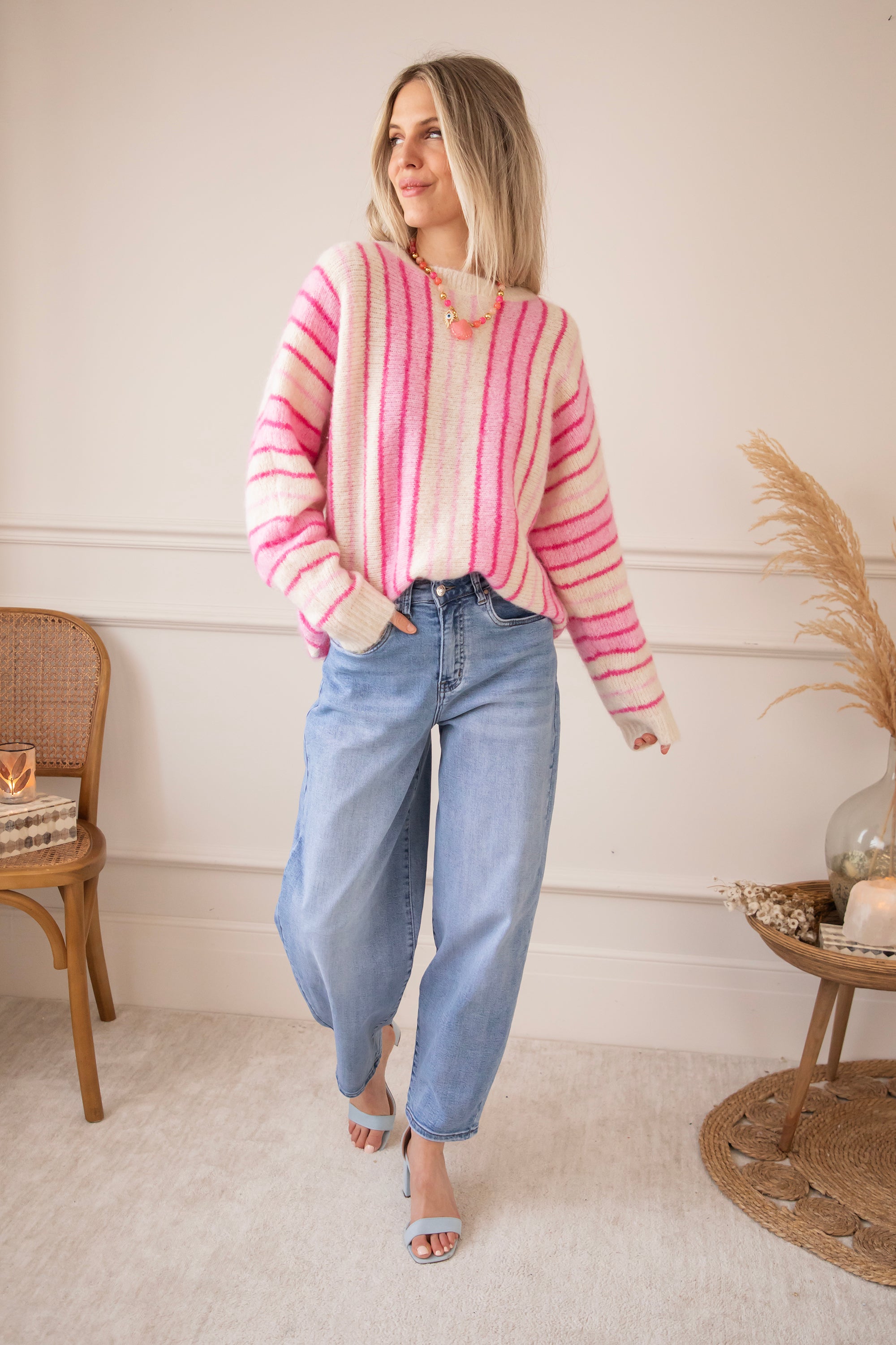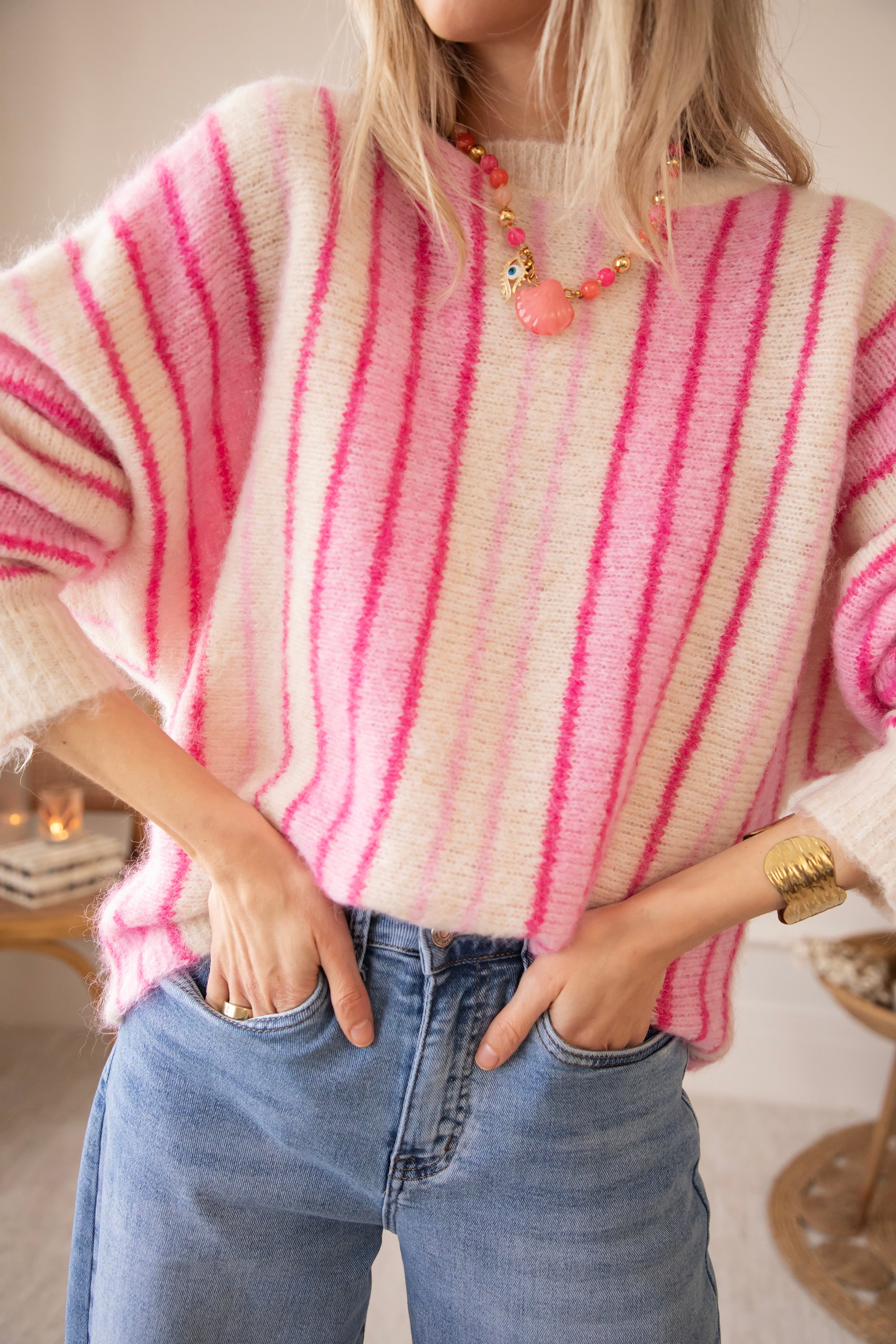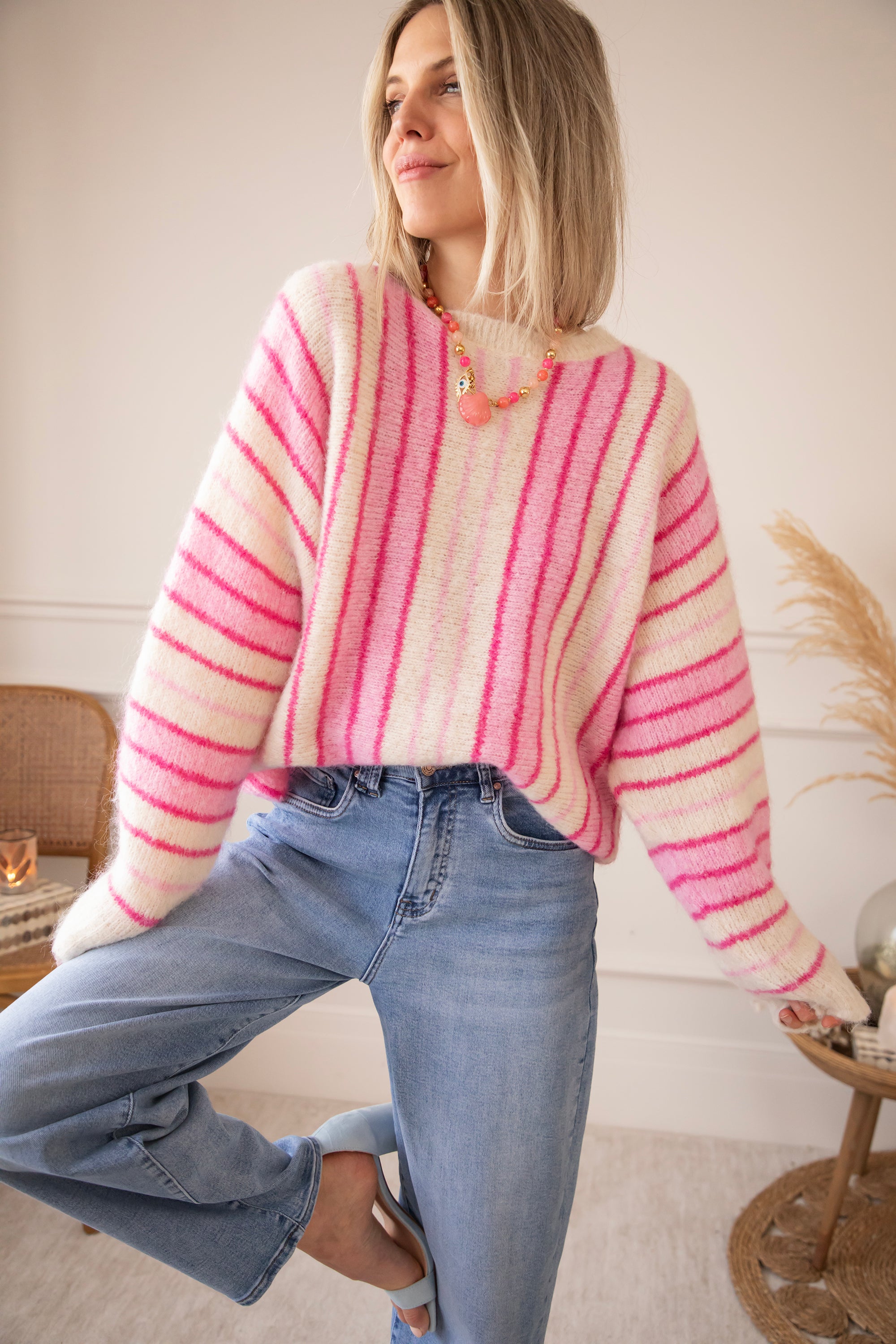 Pullover - Mood Booster - Beige/Rosa
