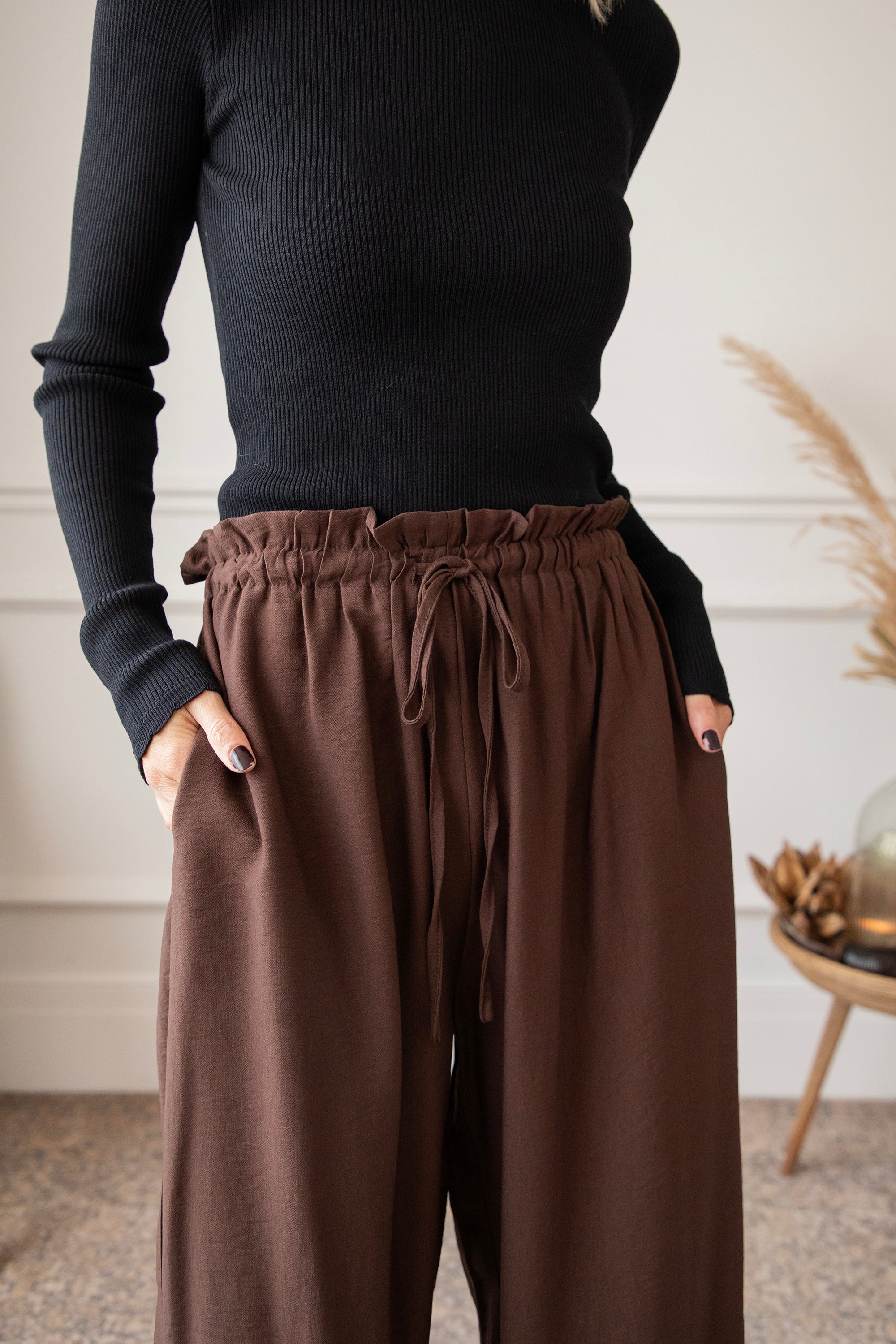 Die gepolsterte Hose mit weitem Bein ist echt ein Dauerbrenner in der ellemilla-Kollektion, und das neue Modell Noor ist sofort ein Hit 🤎. Die Taille sitzt dank des elastischen Bundes perfekt, während die Hosenbeine weit nach außen fallen und so für einen eleganten, luftigen Effekt sorgen. Der Stoff ist so geschmeidig und glatt, du wirst sie lieben 🥰. Keine Lust auf Jeans? Das ist die richtige Hose für dich!
