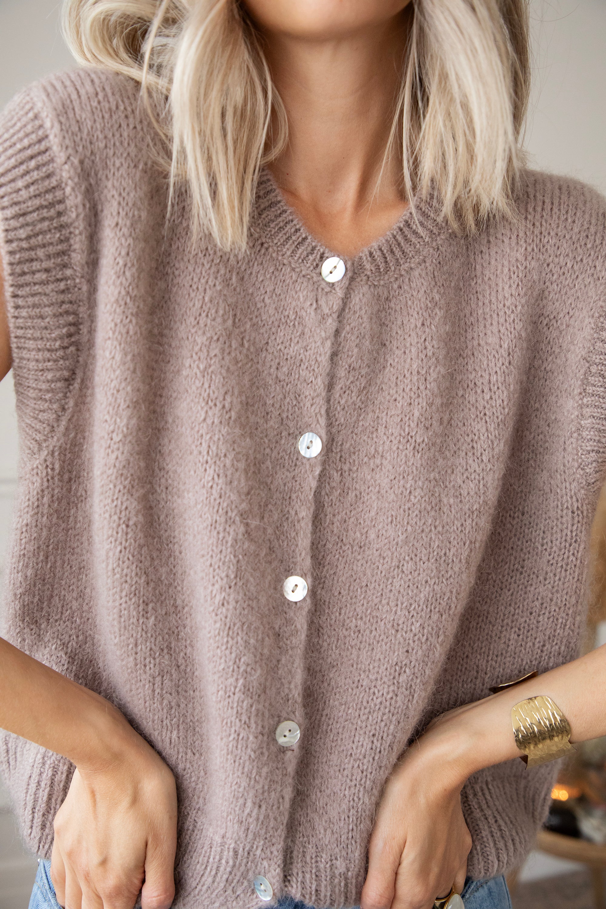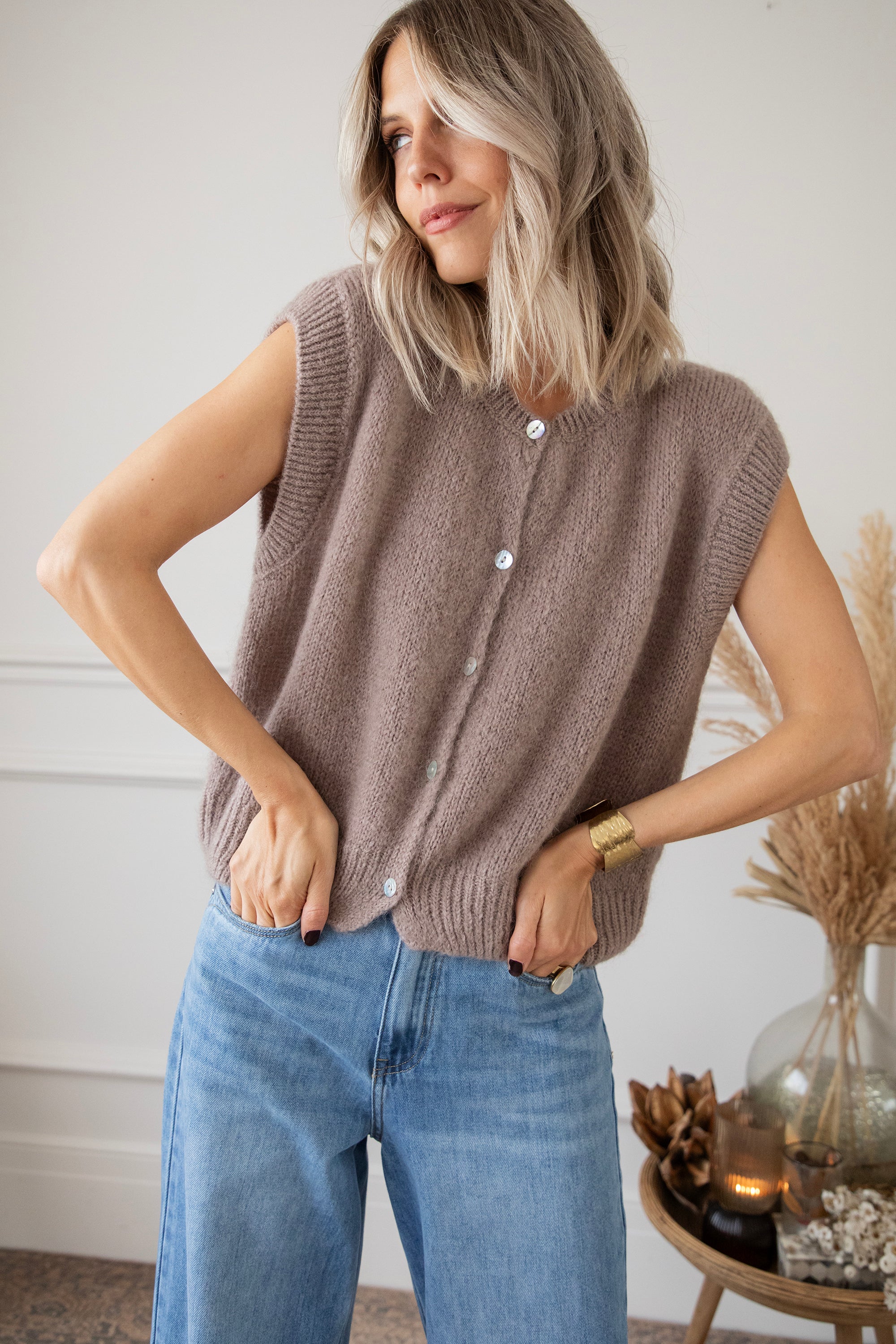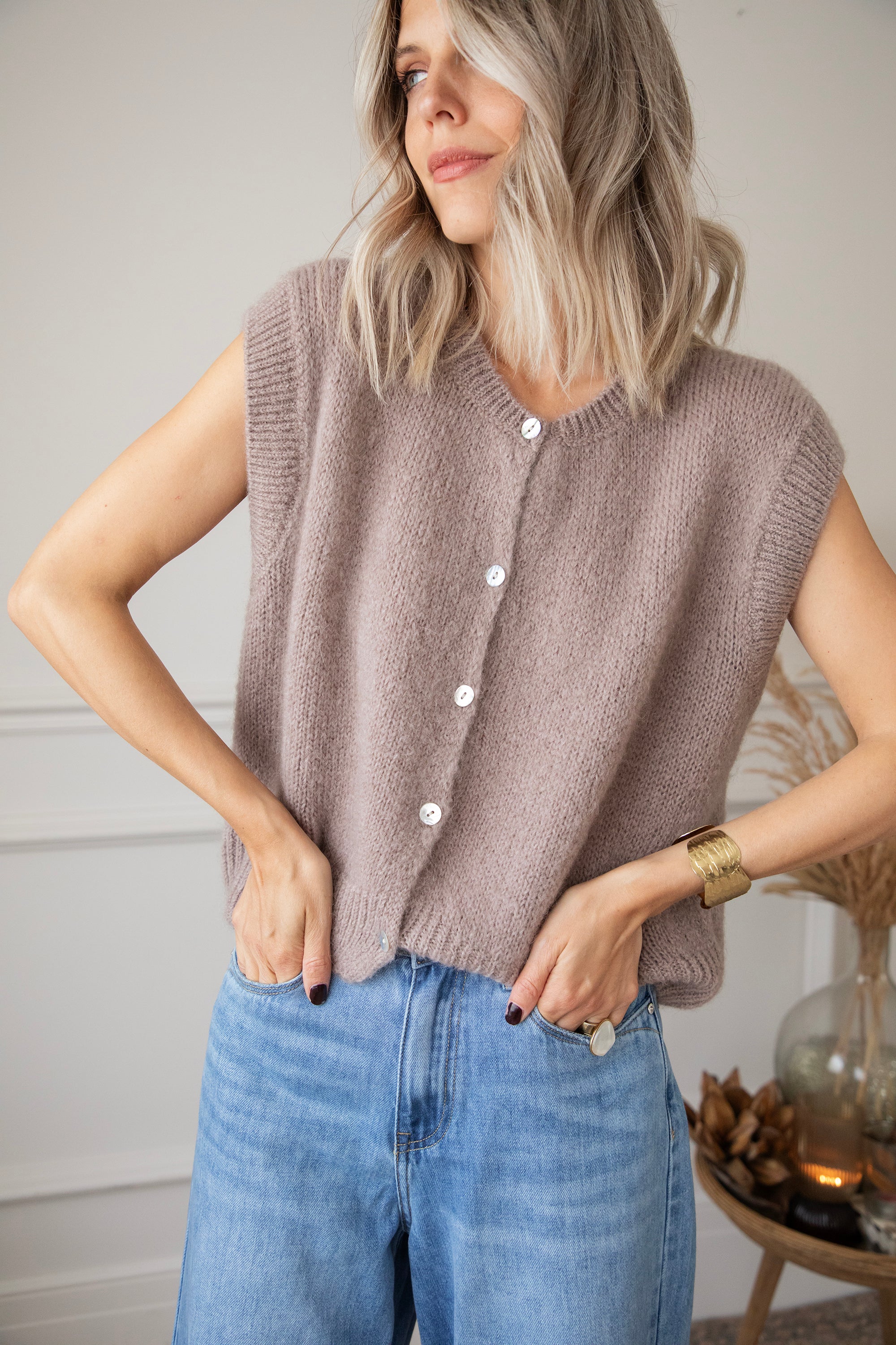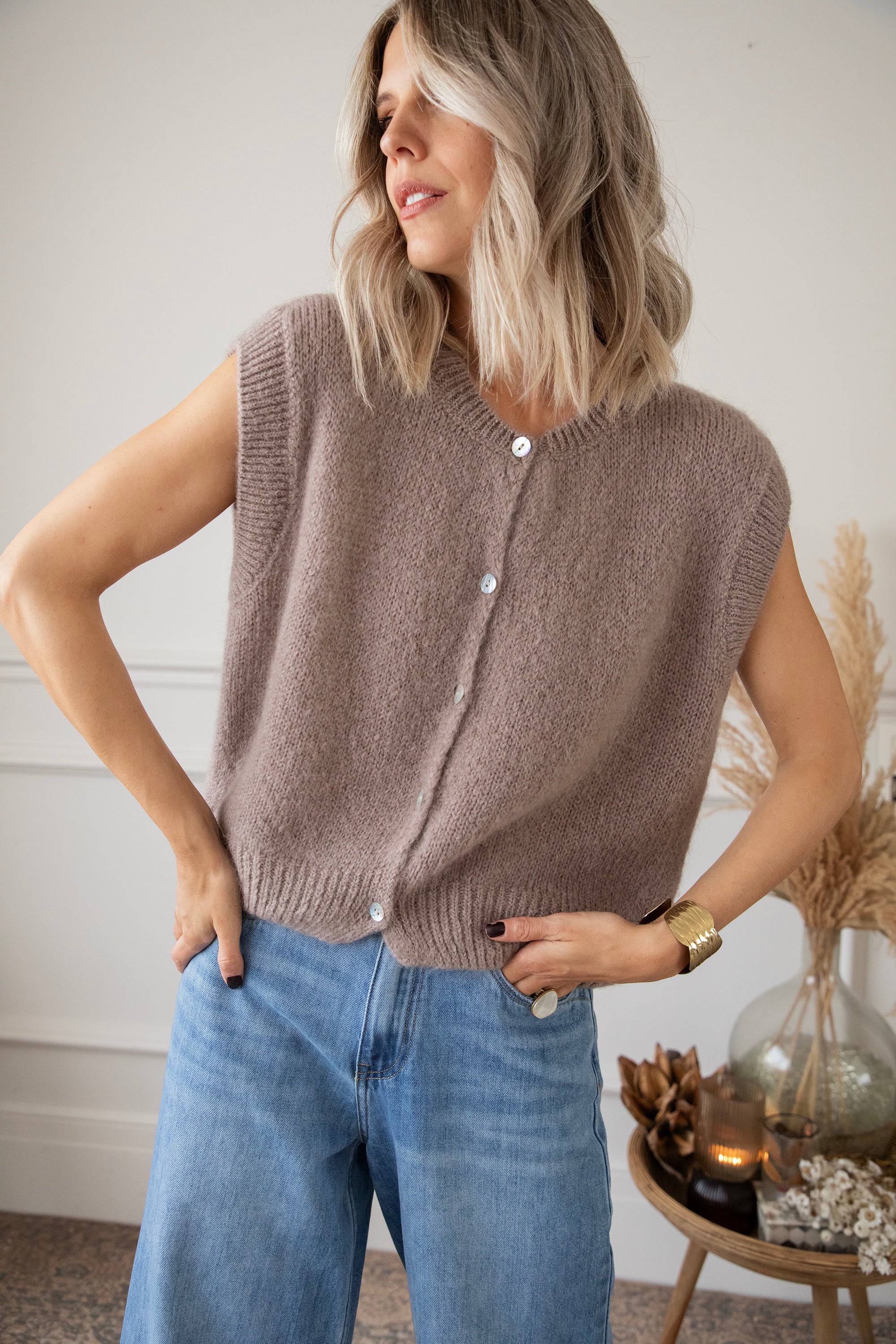 Die Debardeurs... sie bringen sofort pure Nostalgie in deine Garderobe 😊 Sie haben diesen typischen Preppy-Look, ein bisschen retro und gleichzeitig total angesagt. Es ist ein so bequemes Teil, das trotzdem edel aussieht, vor allem dieses Modell mit seiner süßen Reihe von Perlmuttknöpfen ✨ Die 30 % Mohair machen es extra warm und kuschelig, perfekt für den Herbst!