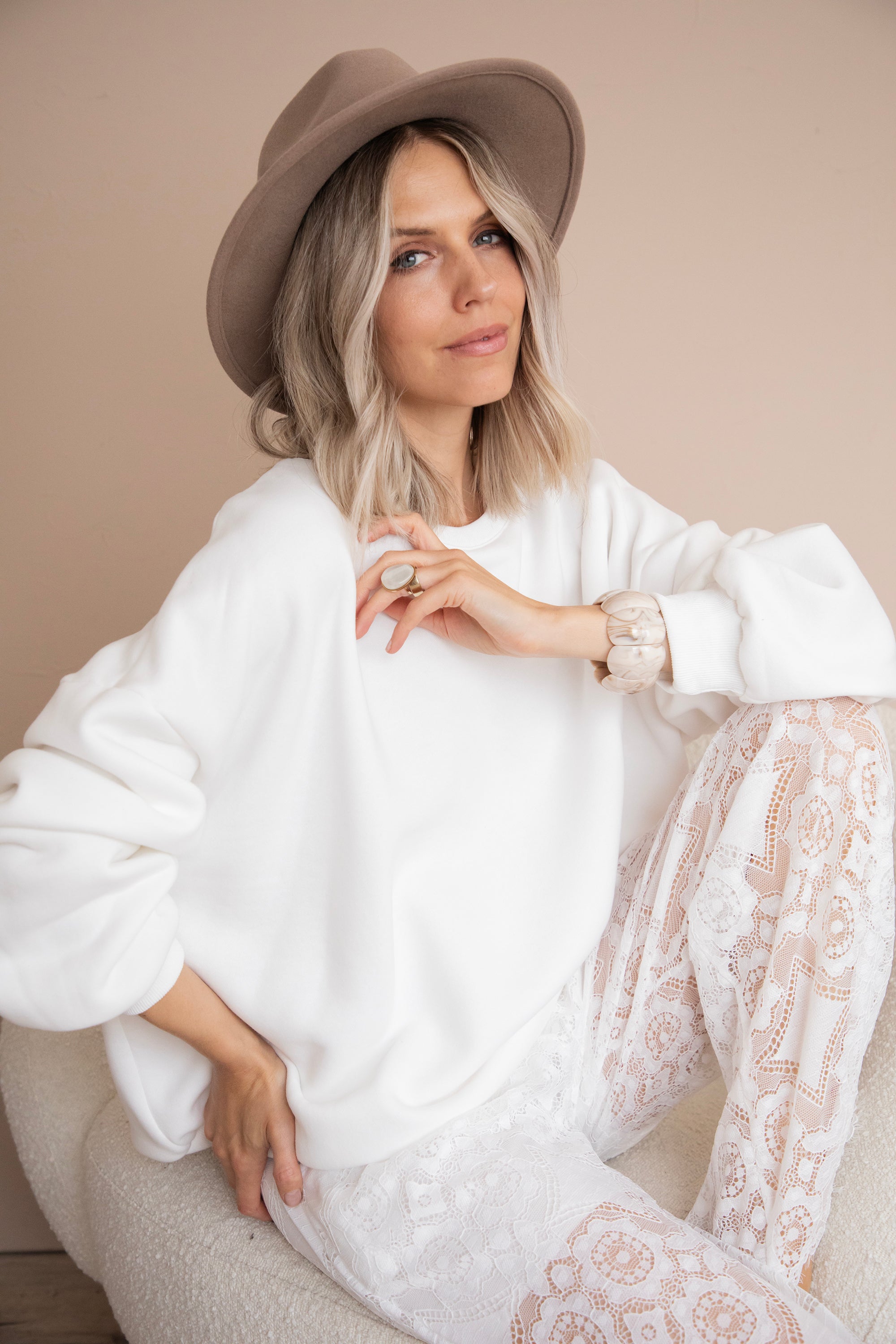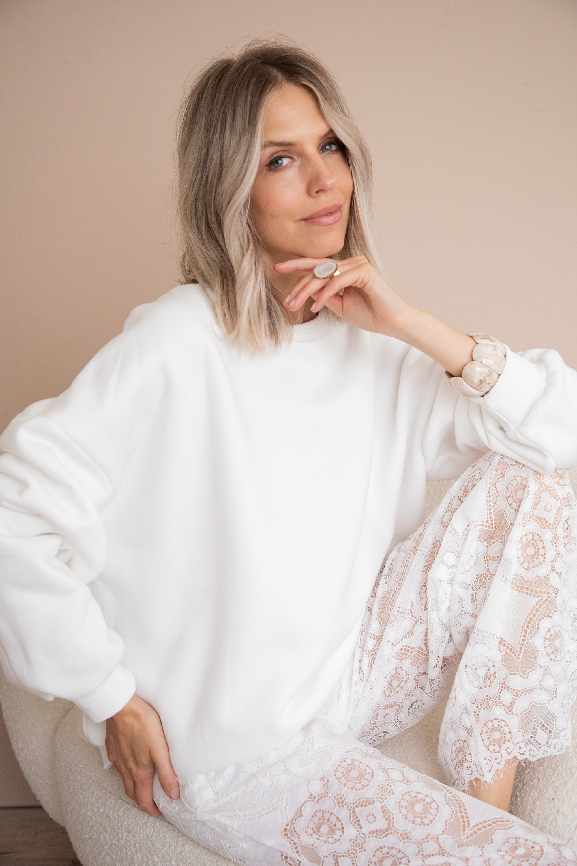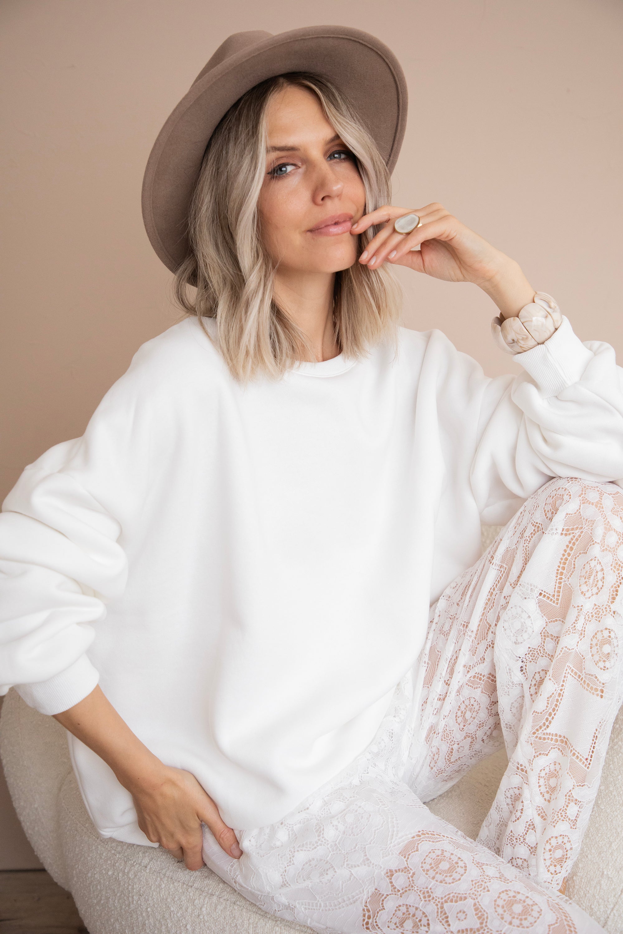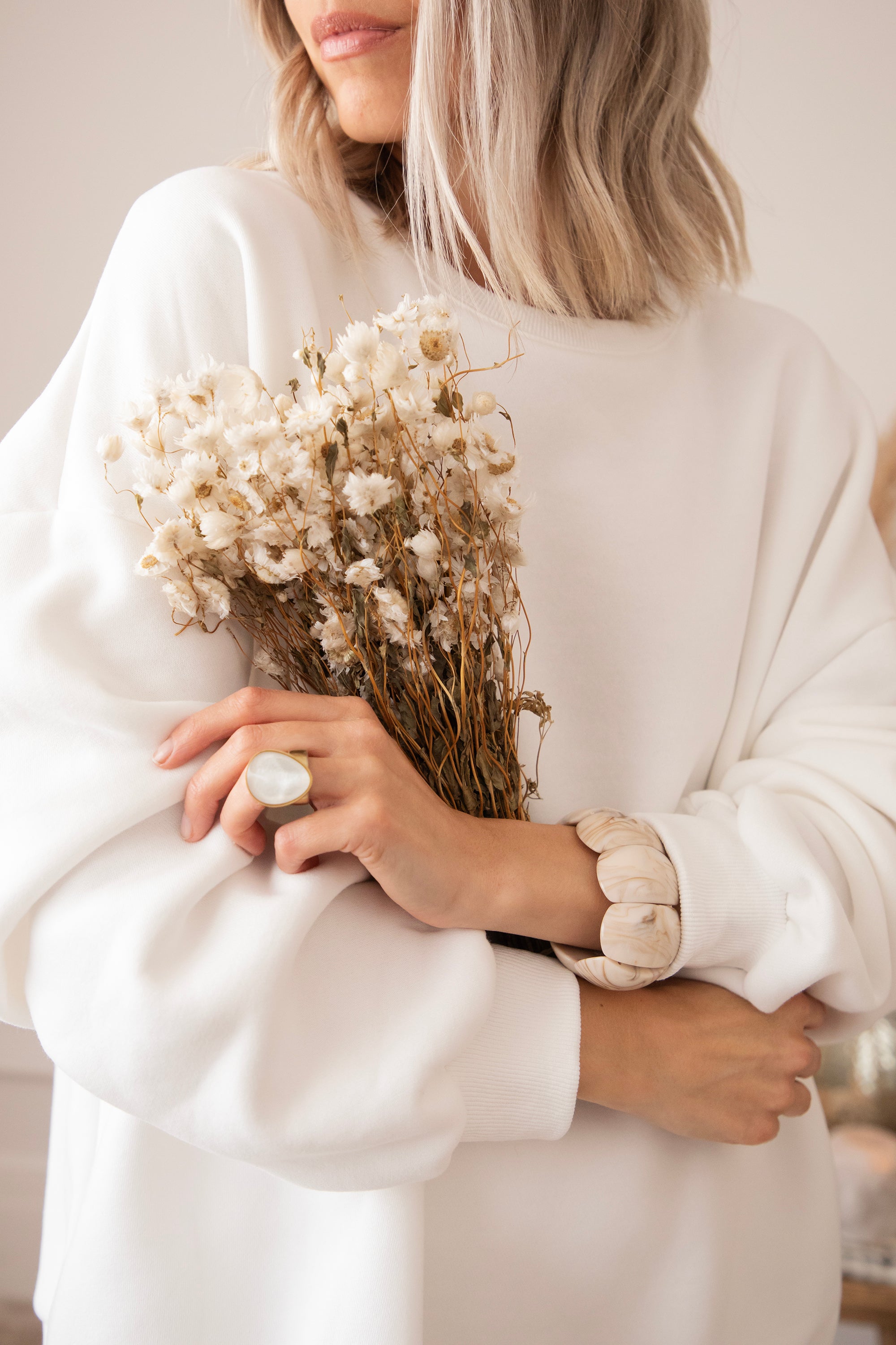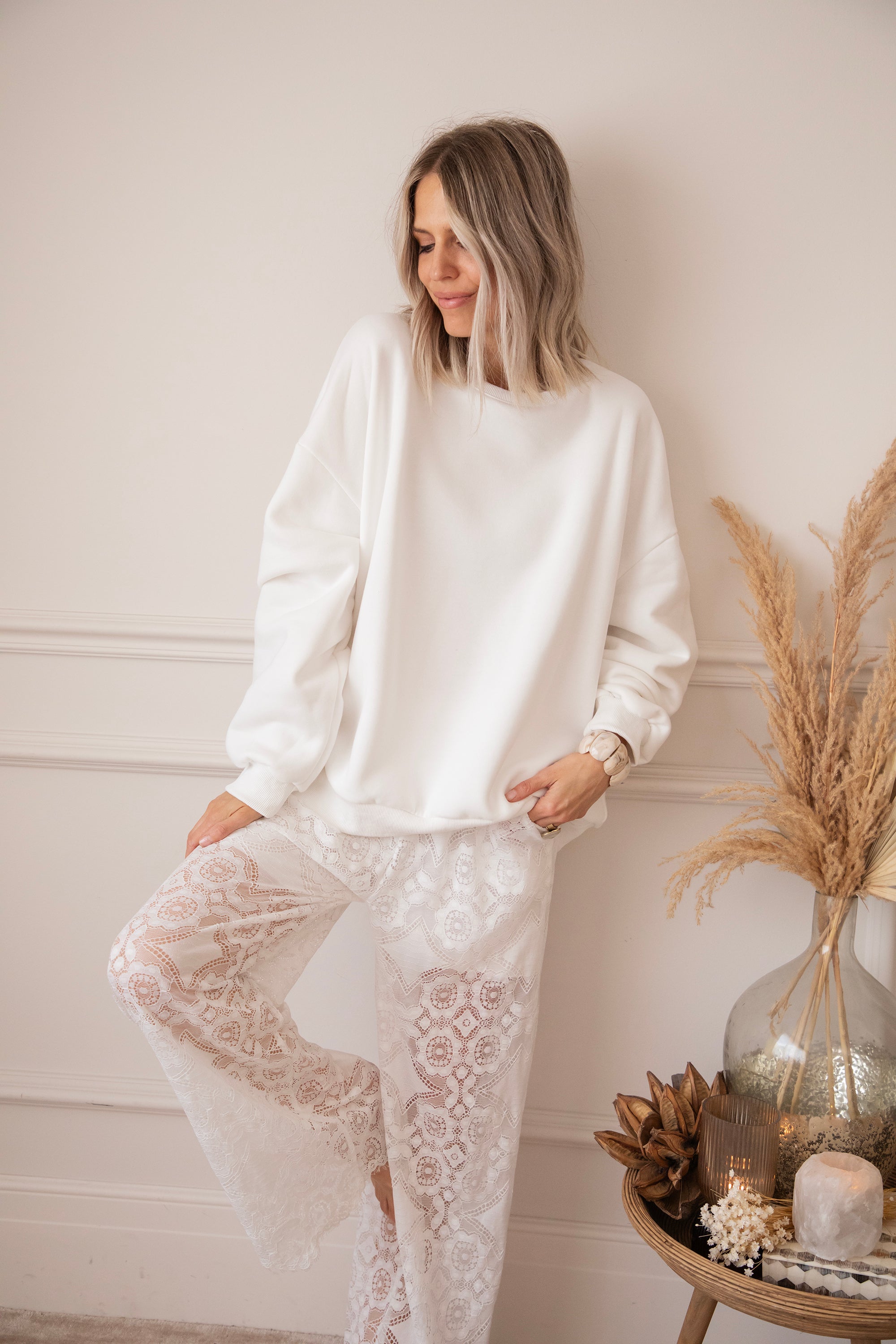 Da ist er wieder: unser Lieblingspullover in schlichtem Design! Weiß wird immer in unserer Kollektion zu finden sein, weil es eine Farbe ist, die man das ganze Jahr über tragen kann 🤍 Für mich ist dieser Pullover das ultimative Kleidungsstück für einen Wochentag oder einen faulen Sonntag! Zusammen mit einer weiten Jeans und Sneakers hast du ein einfaches, aber ach so schönes Outfit 🎀 Je einfacher, desto besser! Wusstest du übrigens, dass die Innenseite aus Fleece ist? Aaaahhh 😍