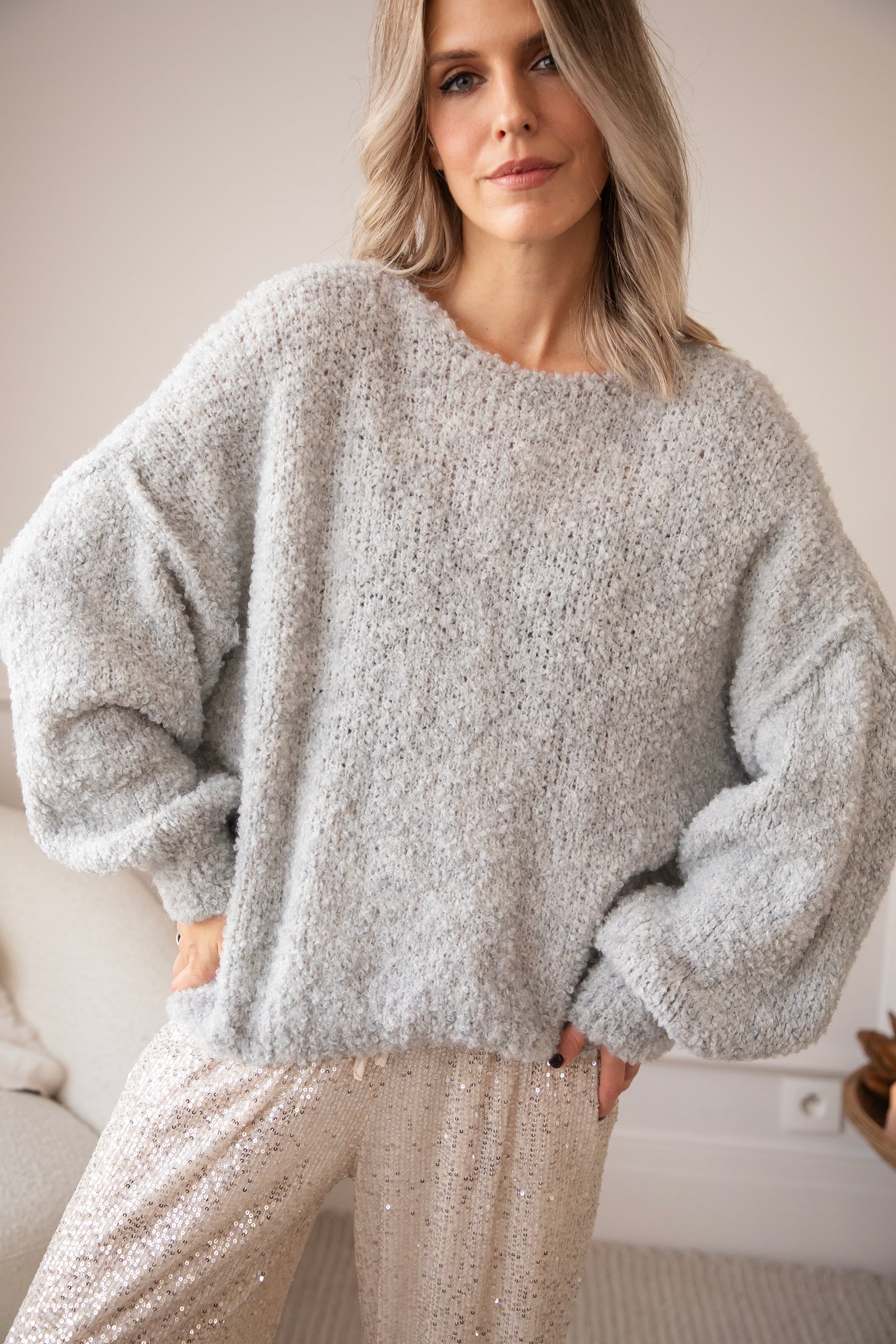 Ist dir aufgefallen, dass ich total auf extra große, flauschige Pullover stehe? 😍 Ich kann echt nicht ohne sie leben, vor allem, wenn man bedenkt, dass noch der ganze Winter vor uns liegt! Zeit, uns schön warm und gemütlich einzupacken 🥰❄️ Und Soft Soul macht das für dich! Die Schulternähte und die Rückennaht sind so schöne Details, die ihn zu etwas ganz Besonderem machen 🎀