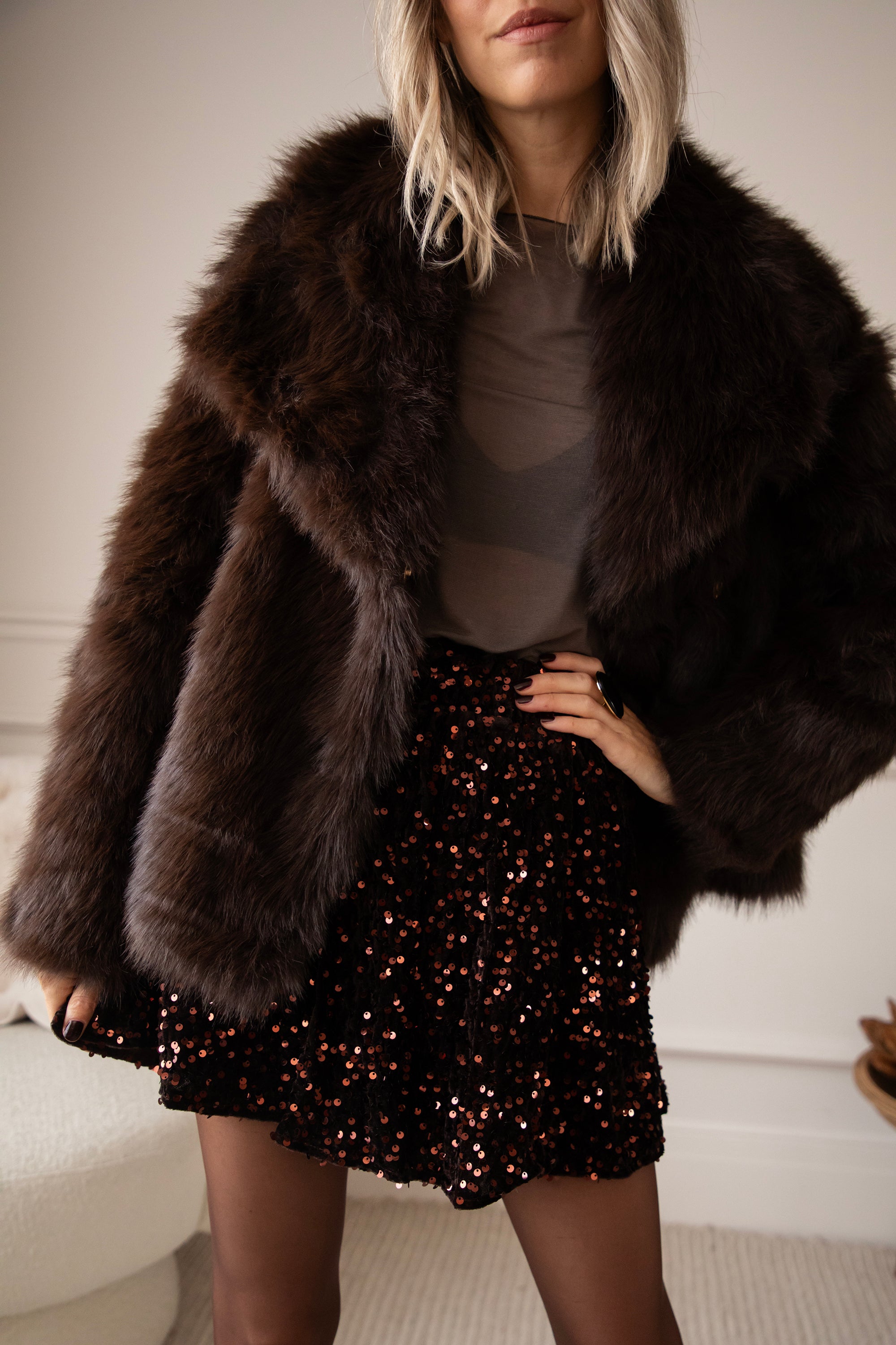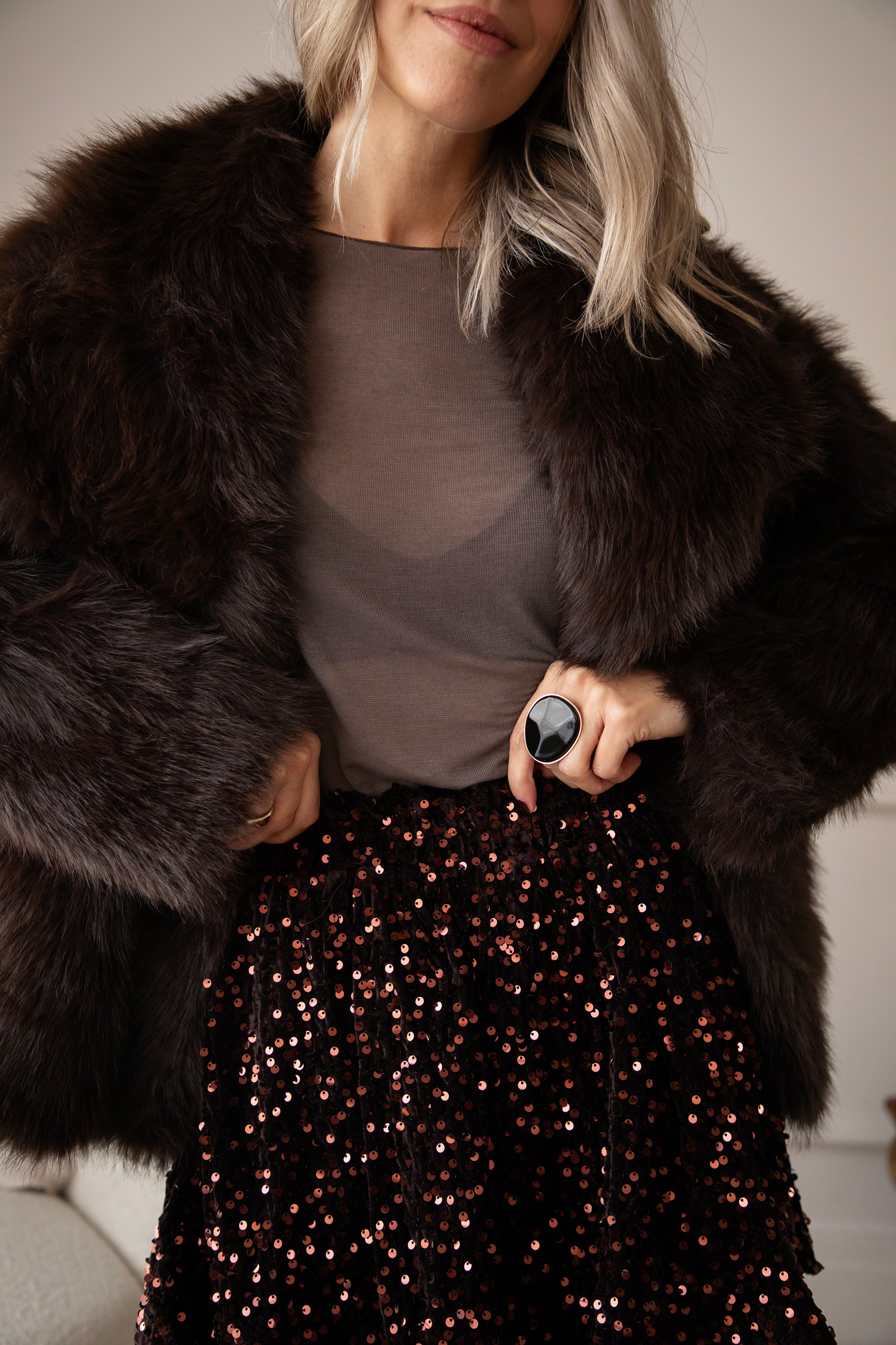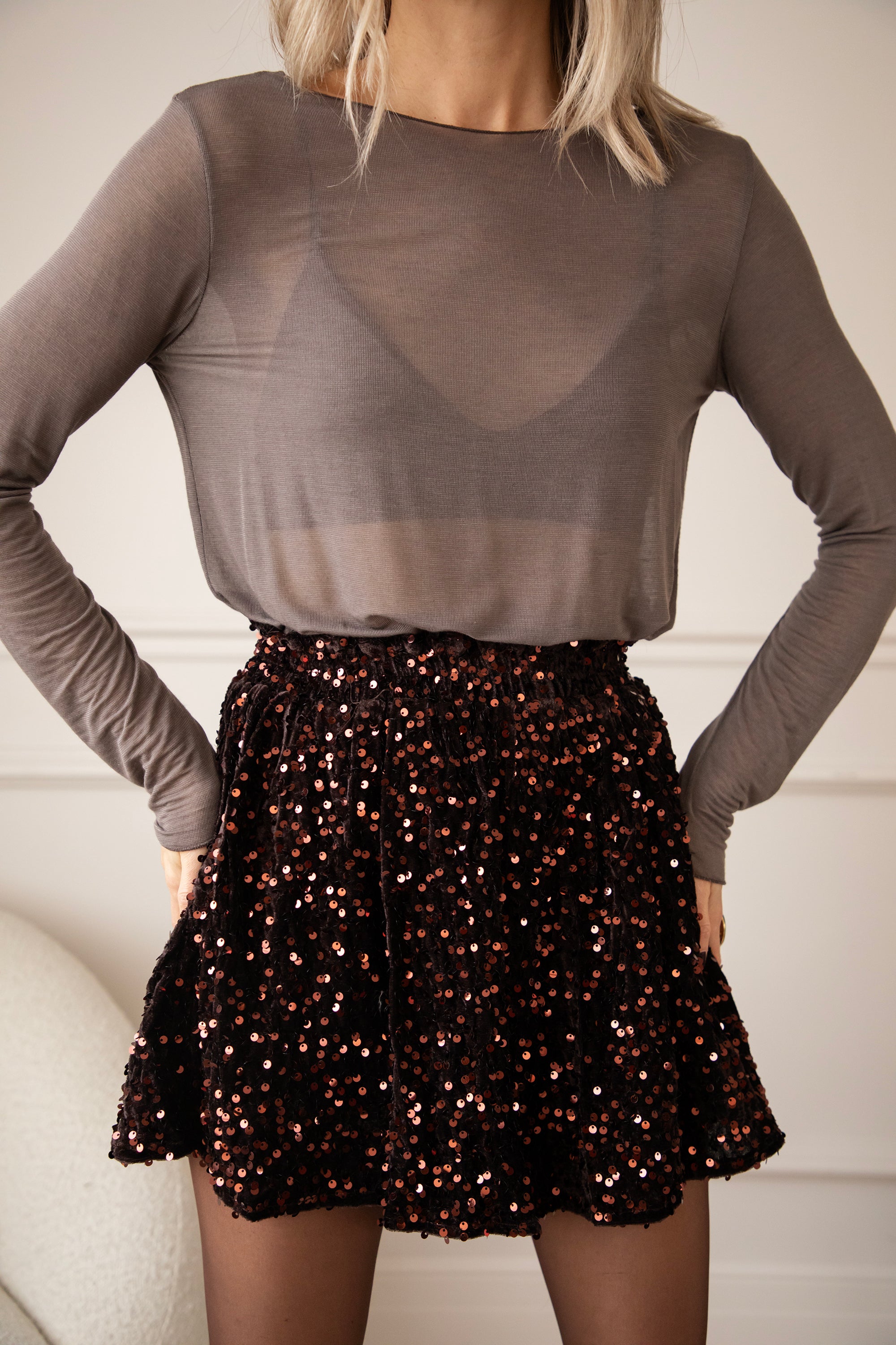 Wenn du lieber keine Röcke trägst, aber trotzdem den gleichen Effekt erzielen möchtest, dann ist dieser Velvet Dreams genau das Richtige für dich! ✨ Velvet Dreams ist ein superbequemer Short mit glamourösem Flair dank der glänzenden braunen Pailletten! Ein echt schickes Teil! Ich trage ihn wirklich sehr gerne 😍 Durch die weiten und fließenden Hosenbeine sieht er aus wie ein Rock. Die Taille ist ebenfalls schön dehnbar! Einfach top.