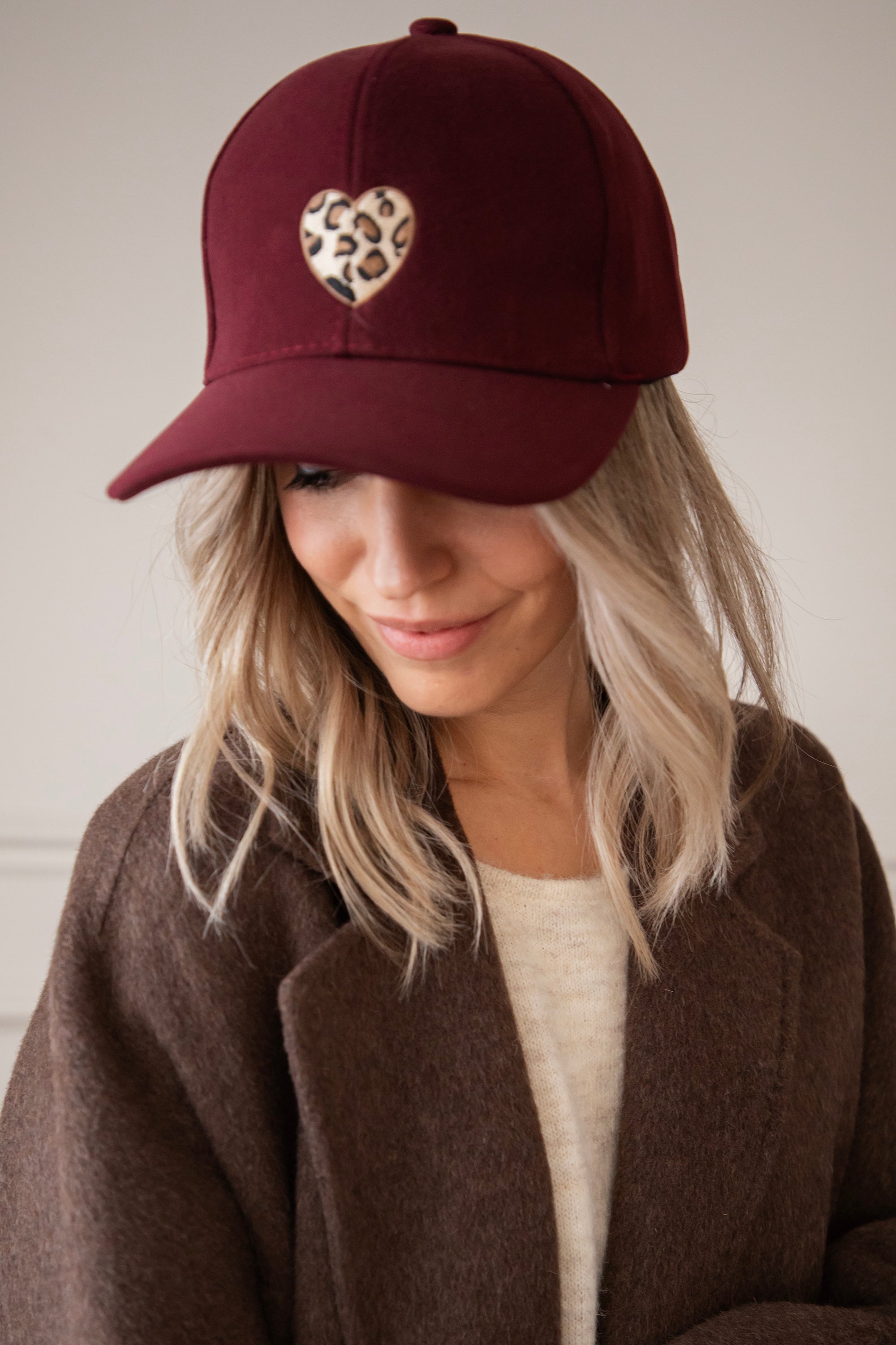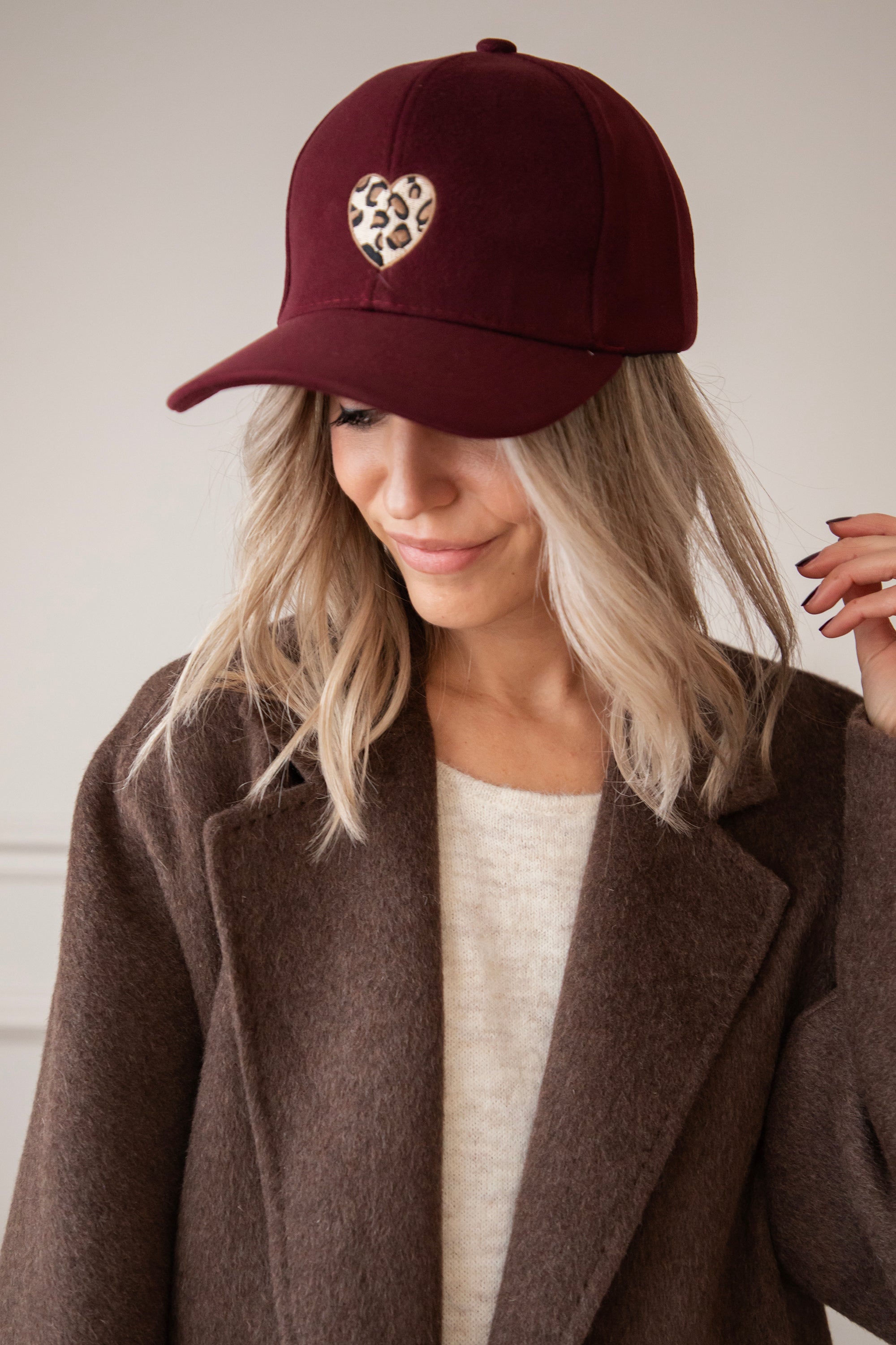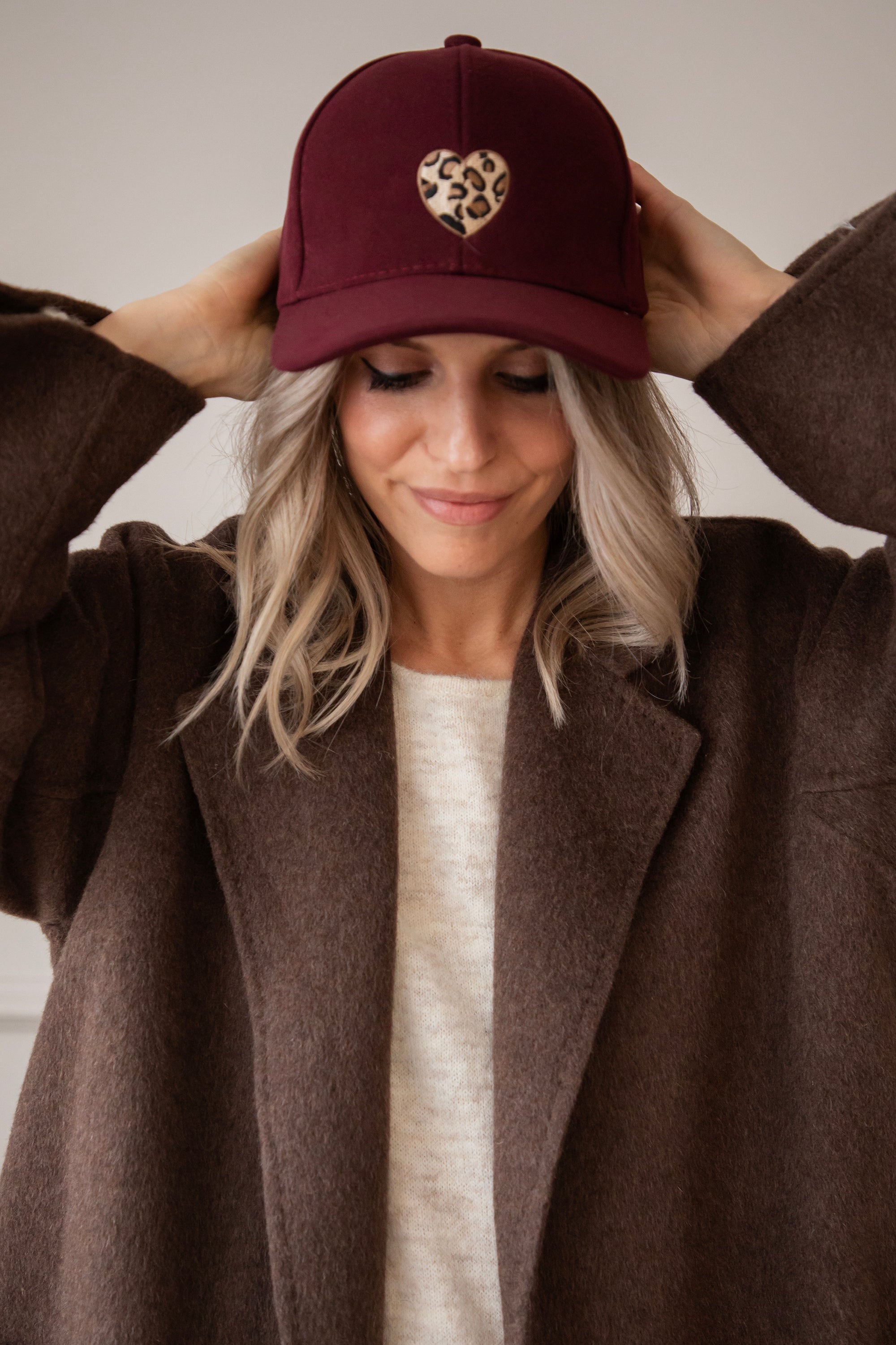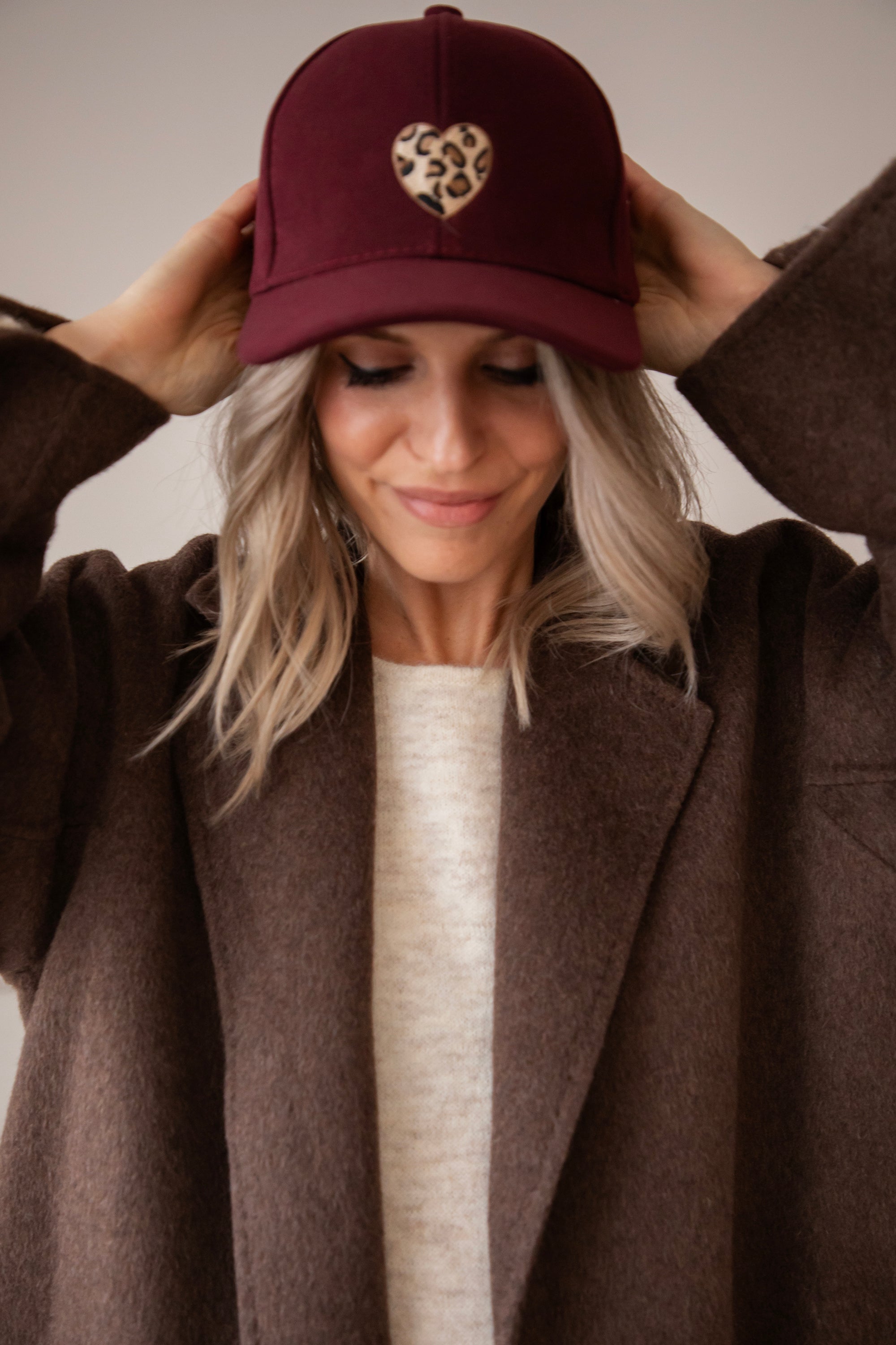 Wie süß ist die denn bitte? Die burgunderrote Farbe passt perfekt zu den Herbst- und Wintertrends, und das kleine Leopardenherz erinnert mich sofort an die Beating Heart-Shirts – ja, ich habe mich sofort verliebt, hihi 😍 Die Krempe ist schön breit, wodurch man sofort diesen coolen Streetwear-Vibe bekommt.