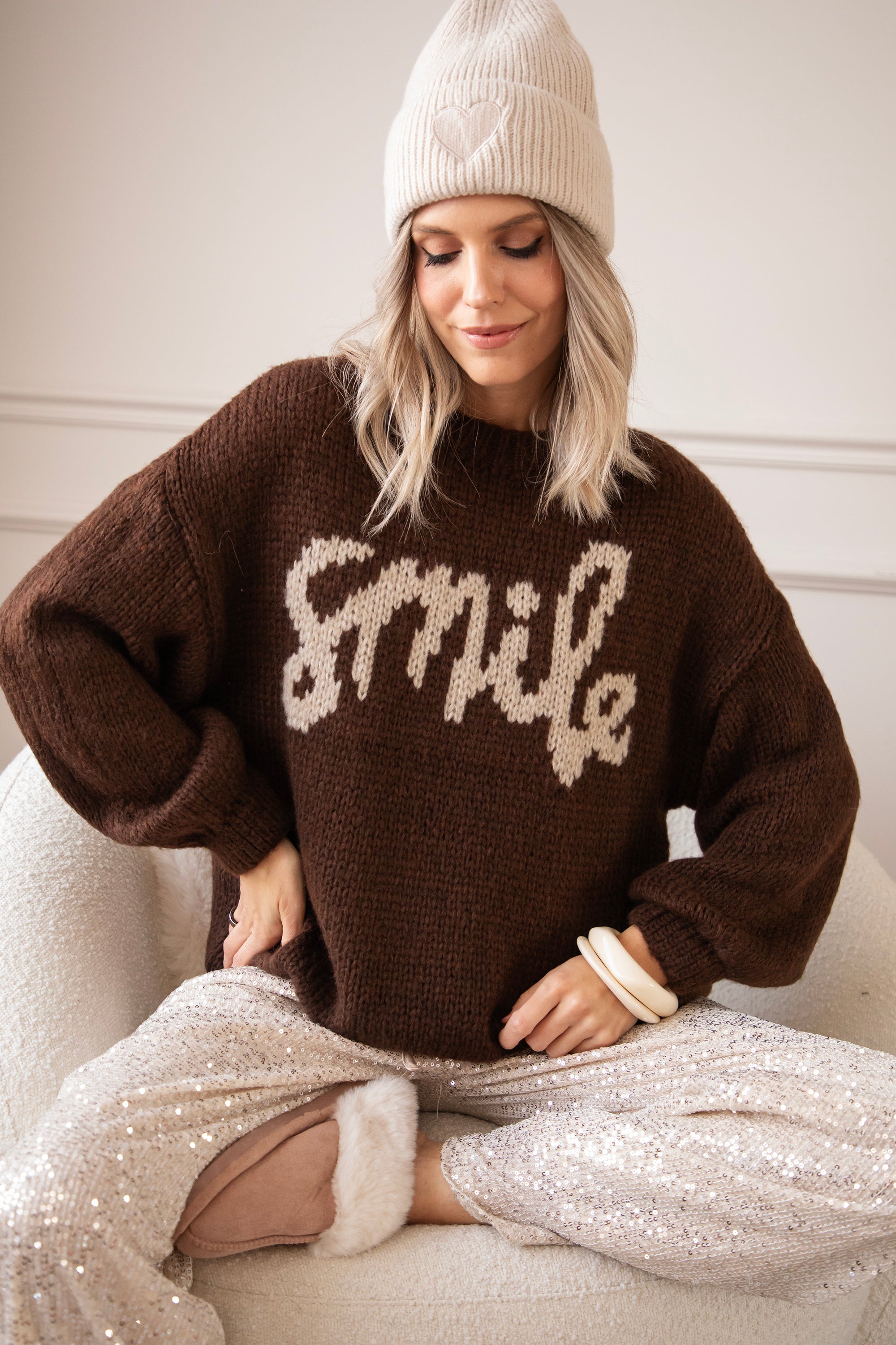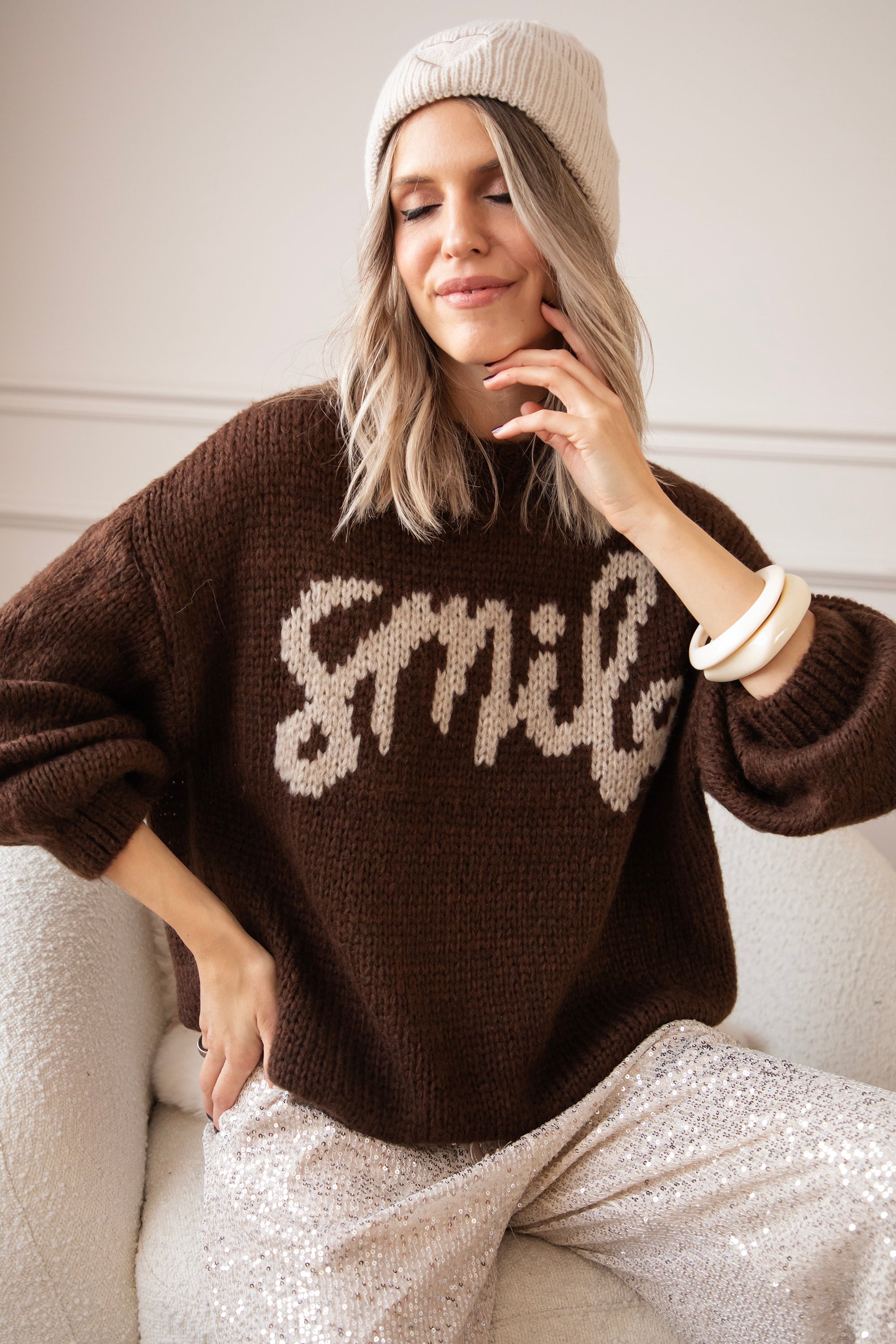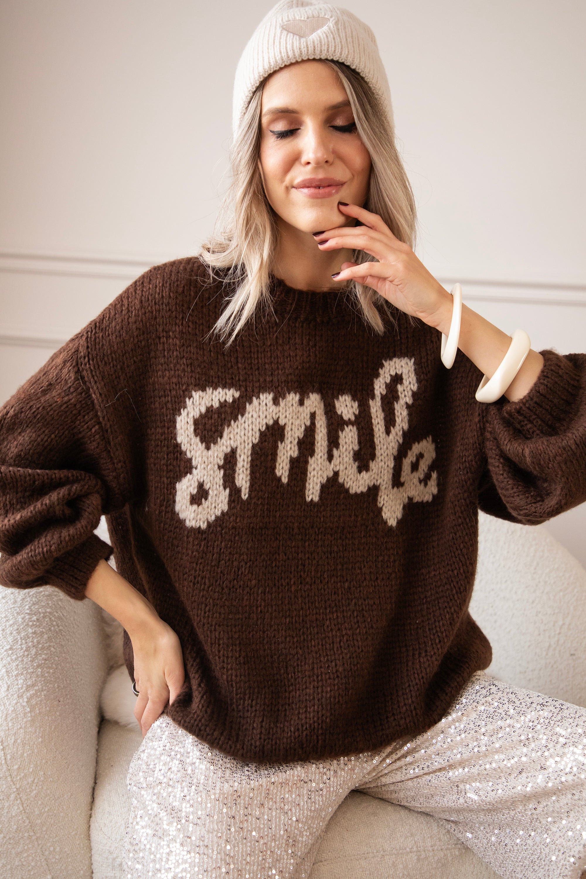 Ich hab nämlich einen super schönen Pullover für euch im Shop 🥰 Da steht echt SMILE drauf 🫶 Your Softest Smile ist schön oversized und hält dich mit einer warmen Wollmischung aus Acryl, Polyamid, Wolle und Viskose schön warm 🔥 Zusammen mit der Paillettenhose kannst du damit ein echtes Outfit-Fest feiern! Smiles garantiert, hihi