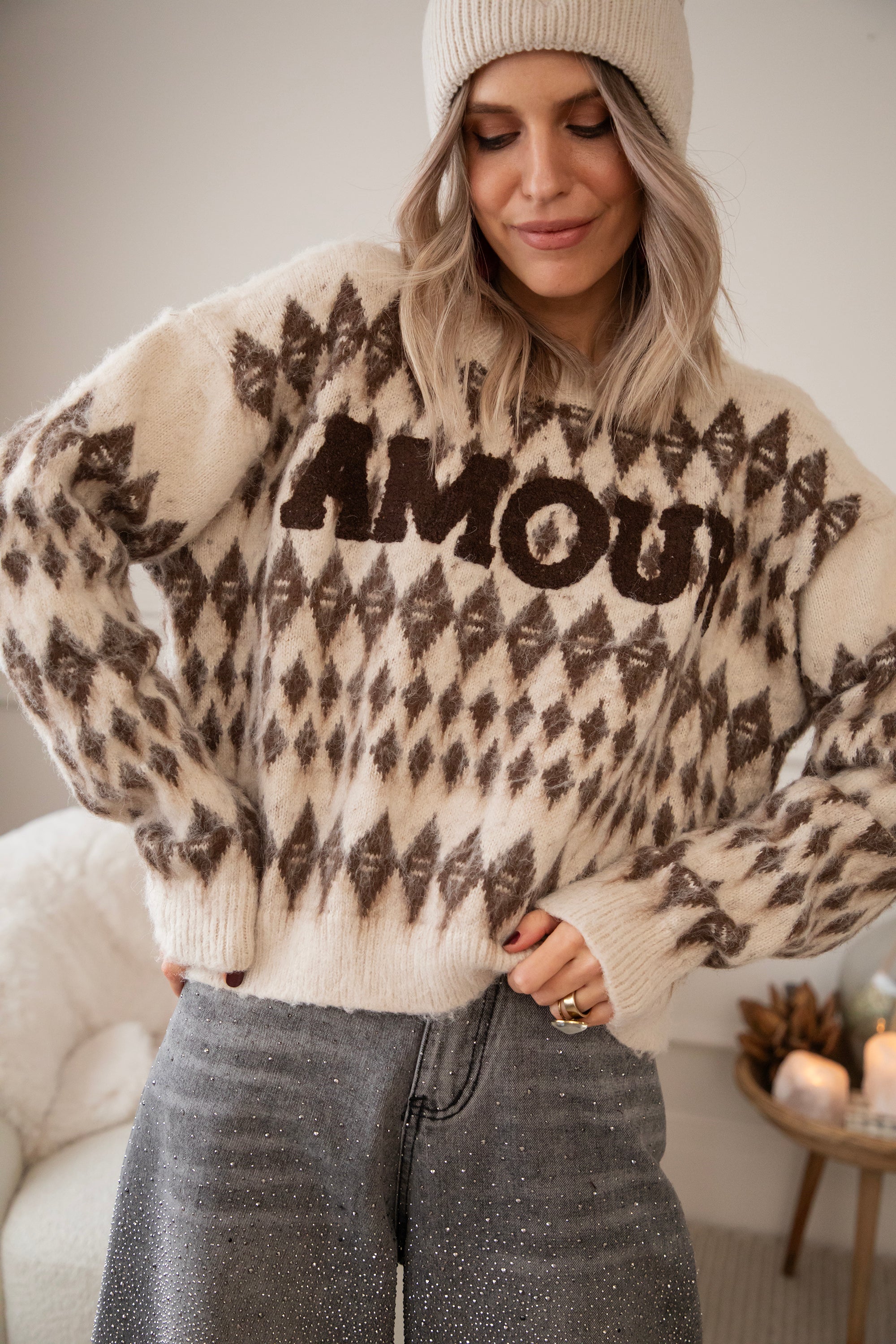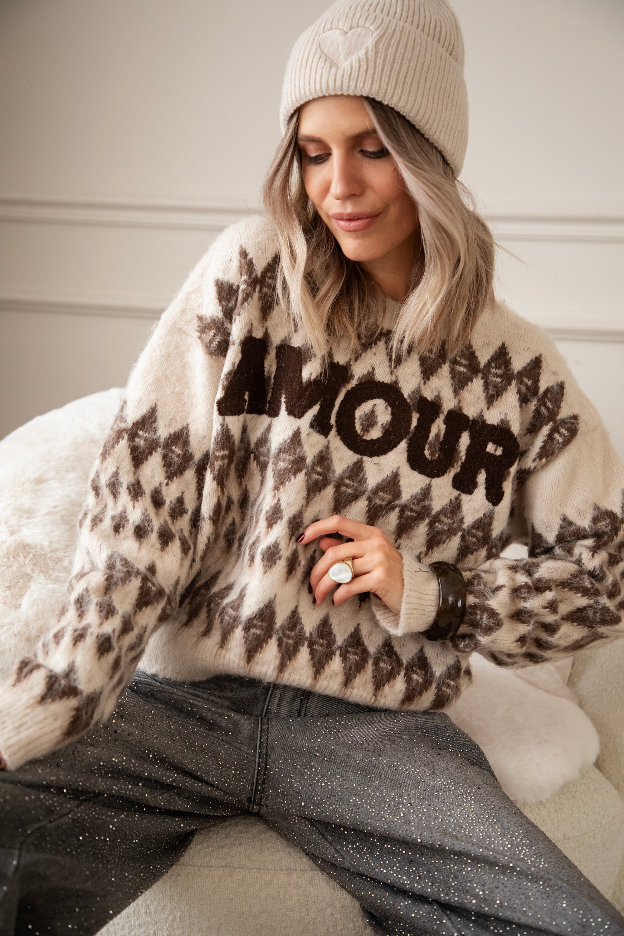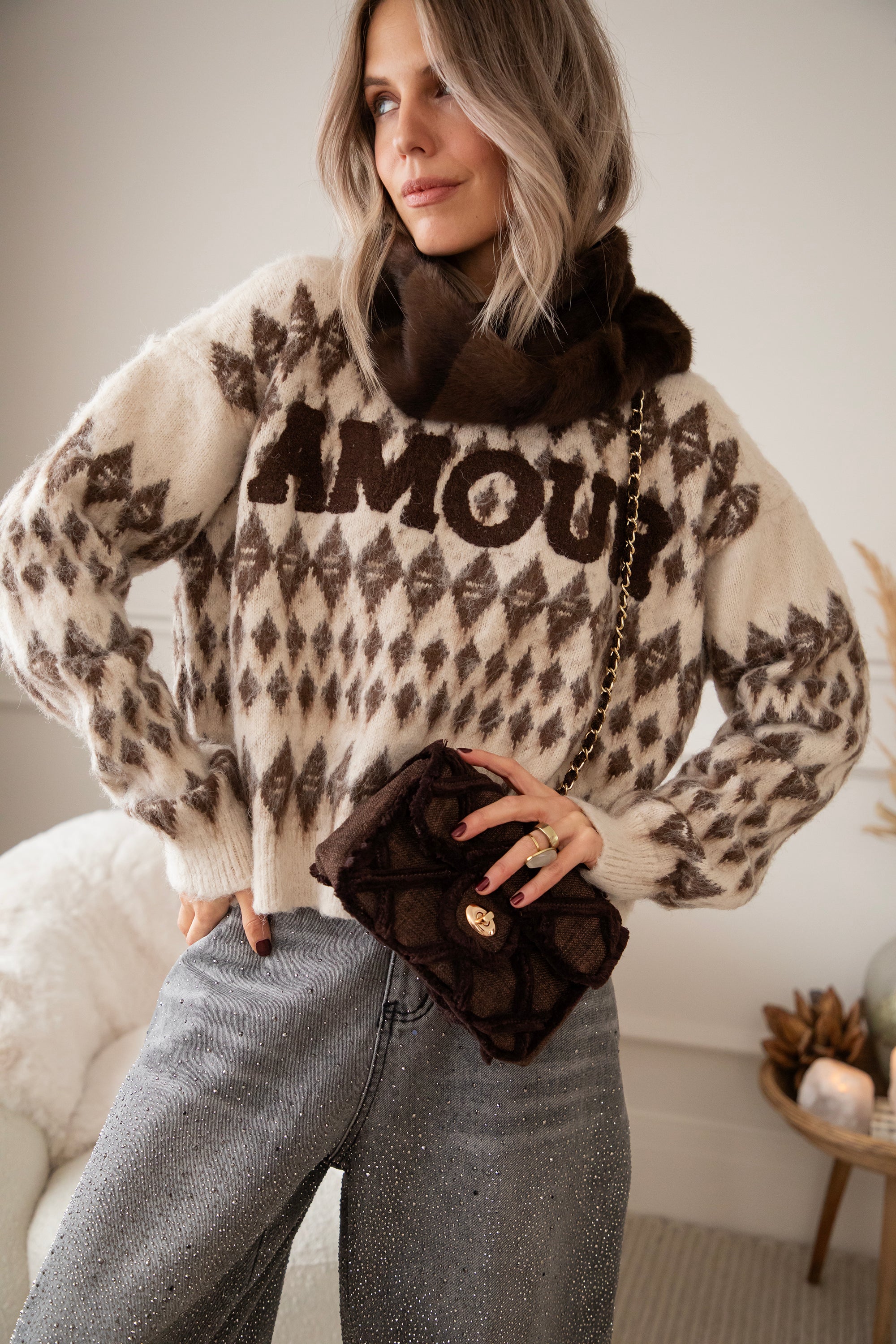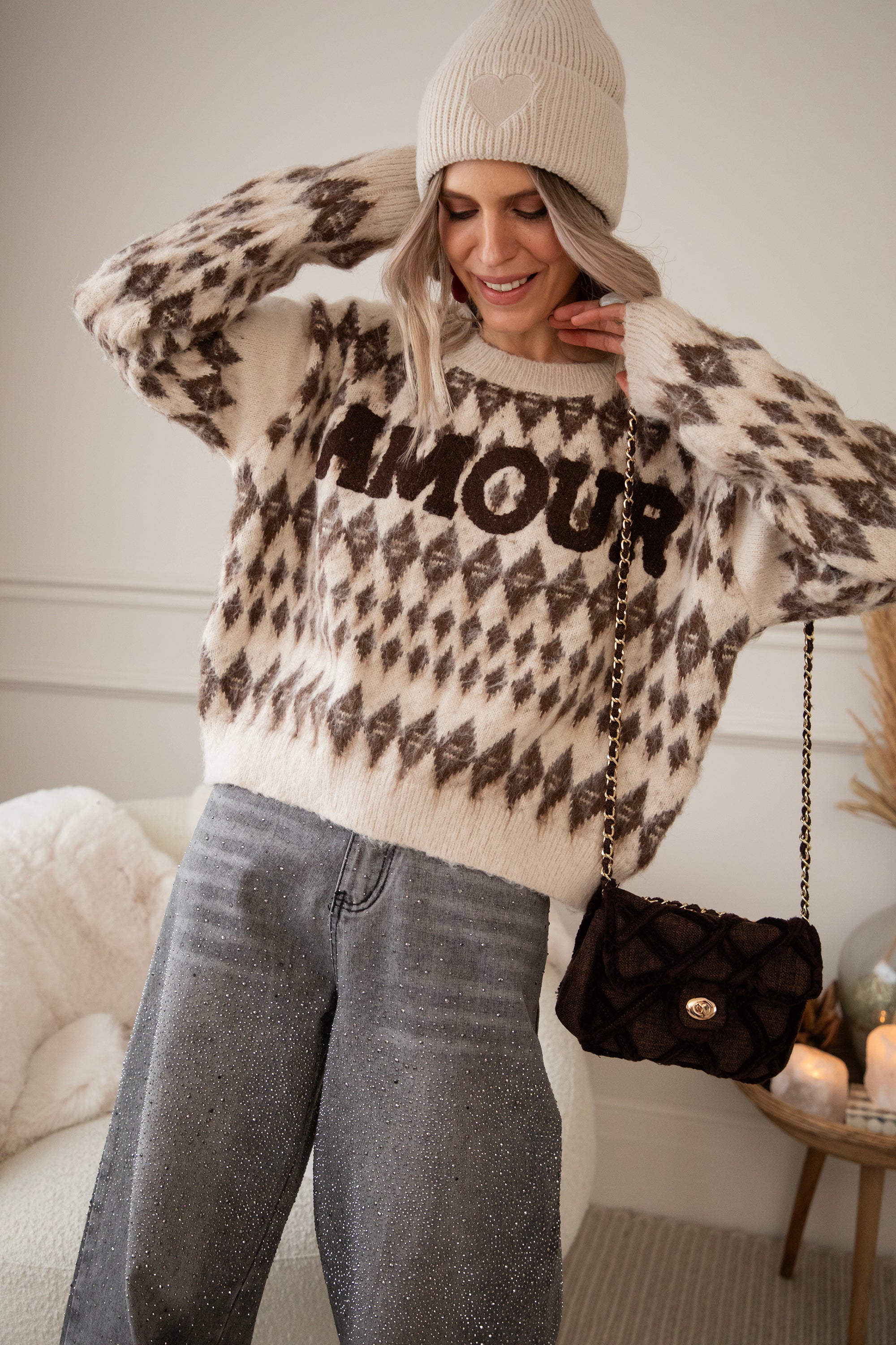Girls... love is in the air with our new AMOUR sweater! The AMOUR sweater exudes that wonderful cozy fall vibe thanks to its checkered pattern in a soft brown shade 🤎 And then there's the ultimate touch of charm: ‘AMOUR’ in soft black teddy letters at the top. A touch of love in a sweater! 🥰