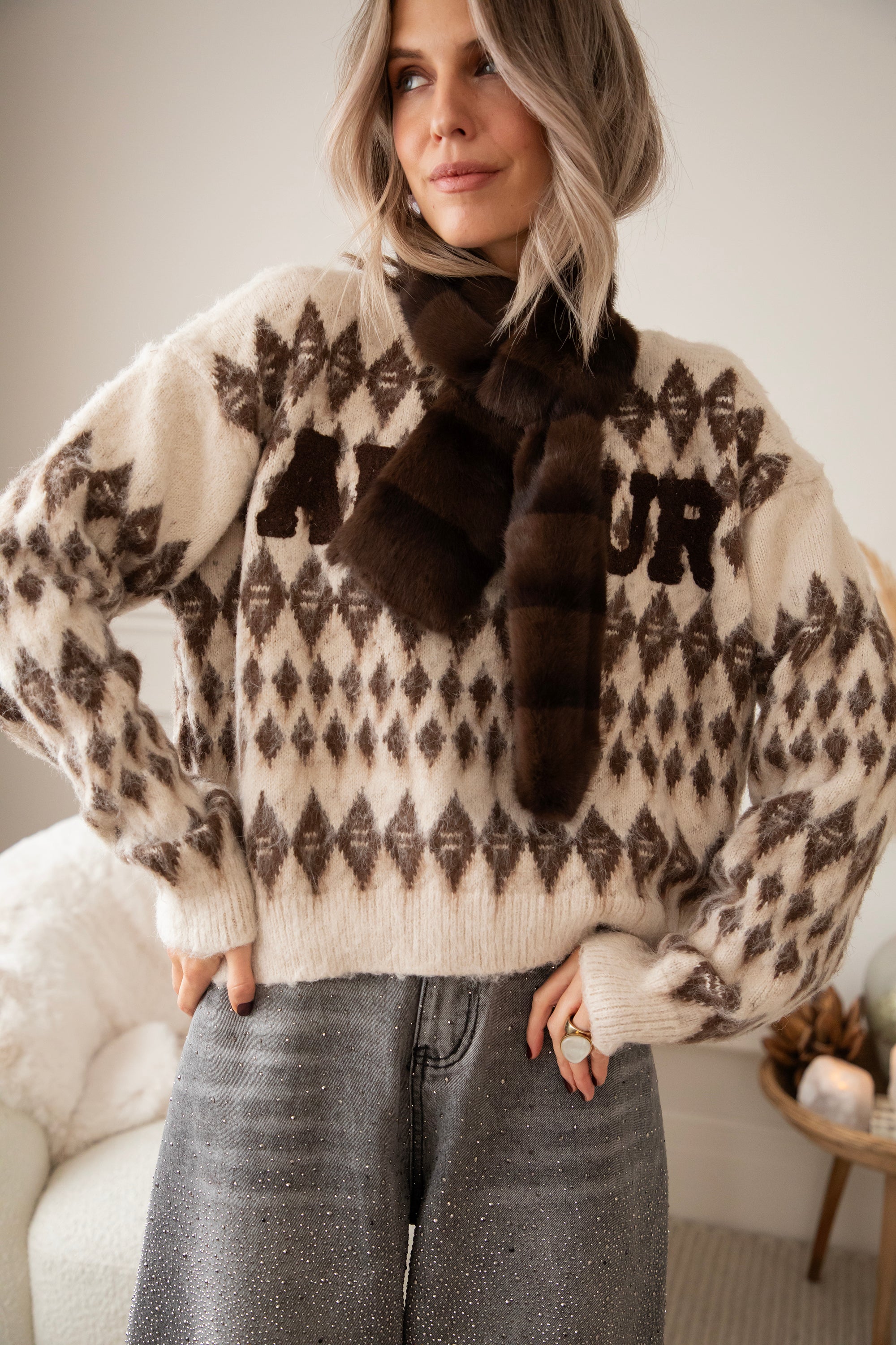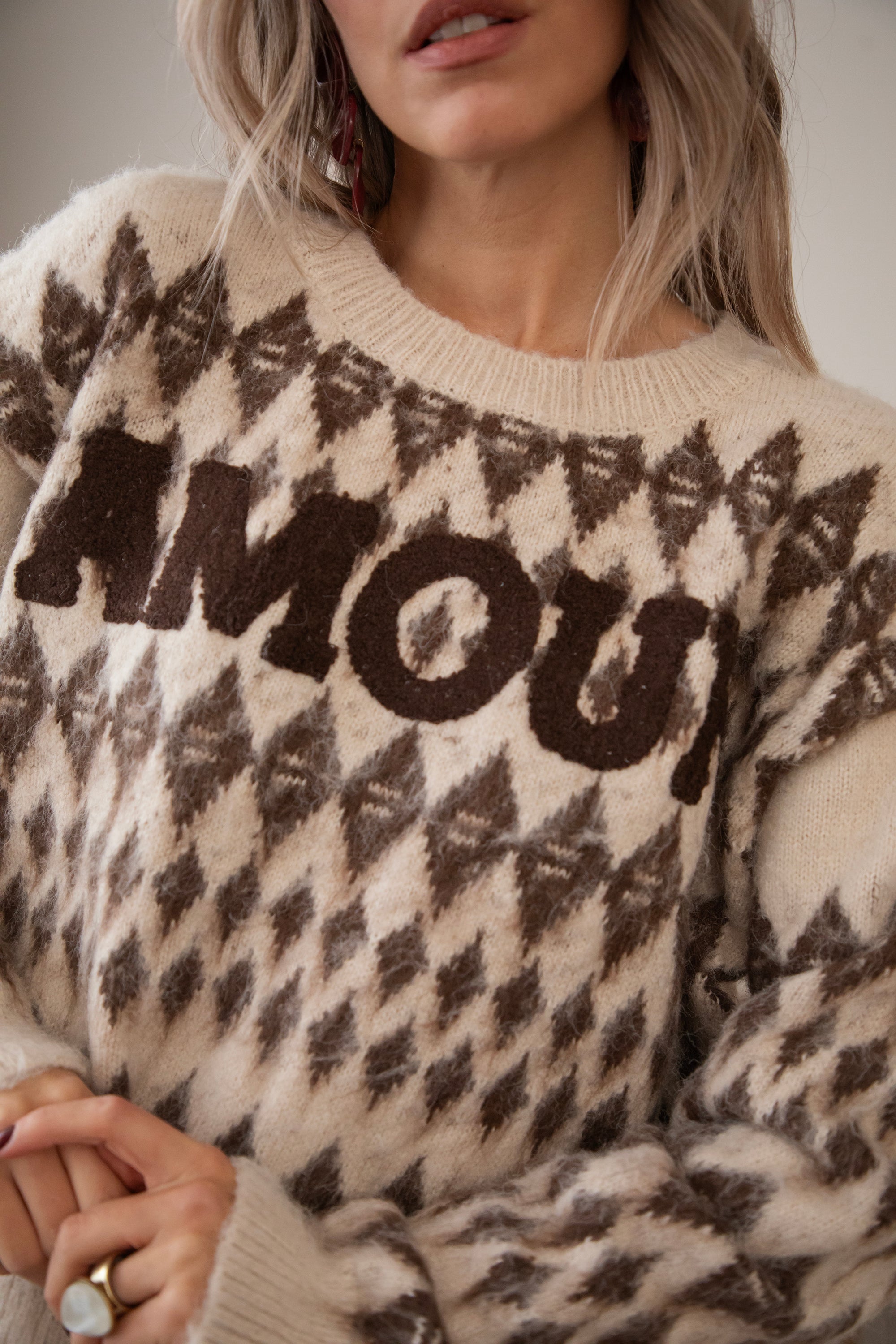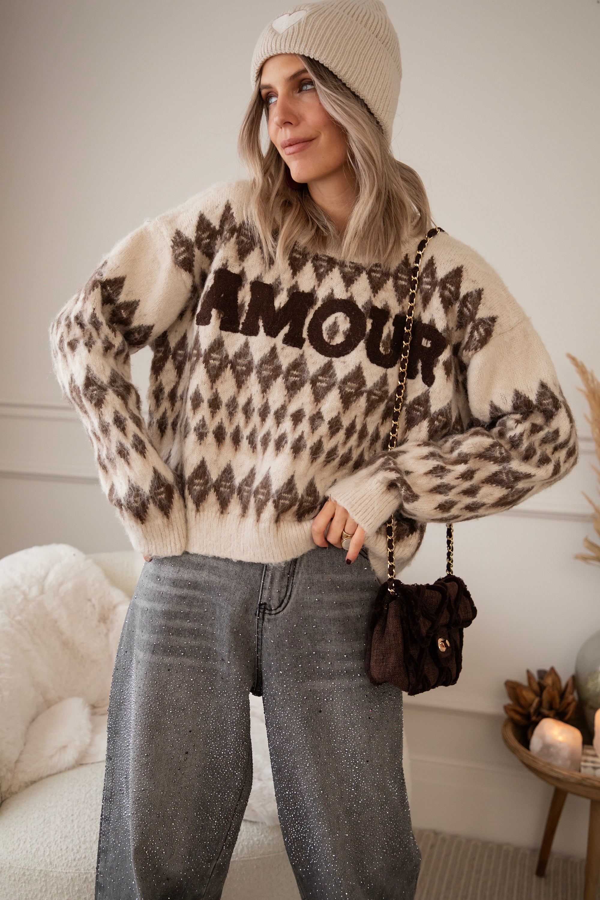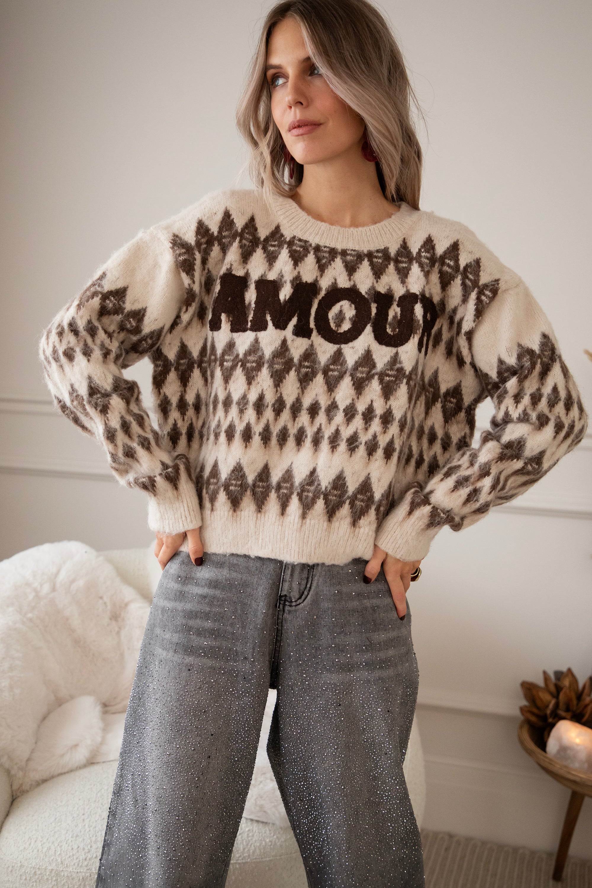 Girls... love is in the air with our new AMOUR sweater! The AMOUR sweater exudes that wonderful cozy fall vibe thanks to its checkered pattern in a soft brown shade 🤎 And then there's the ultimate touch of charm: ‘AMOUR’ in soft black teddy letters at the top. A touch of love in a sweater! 🥰