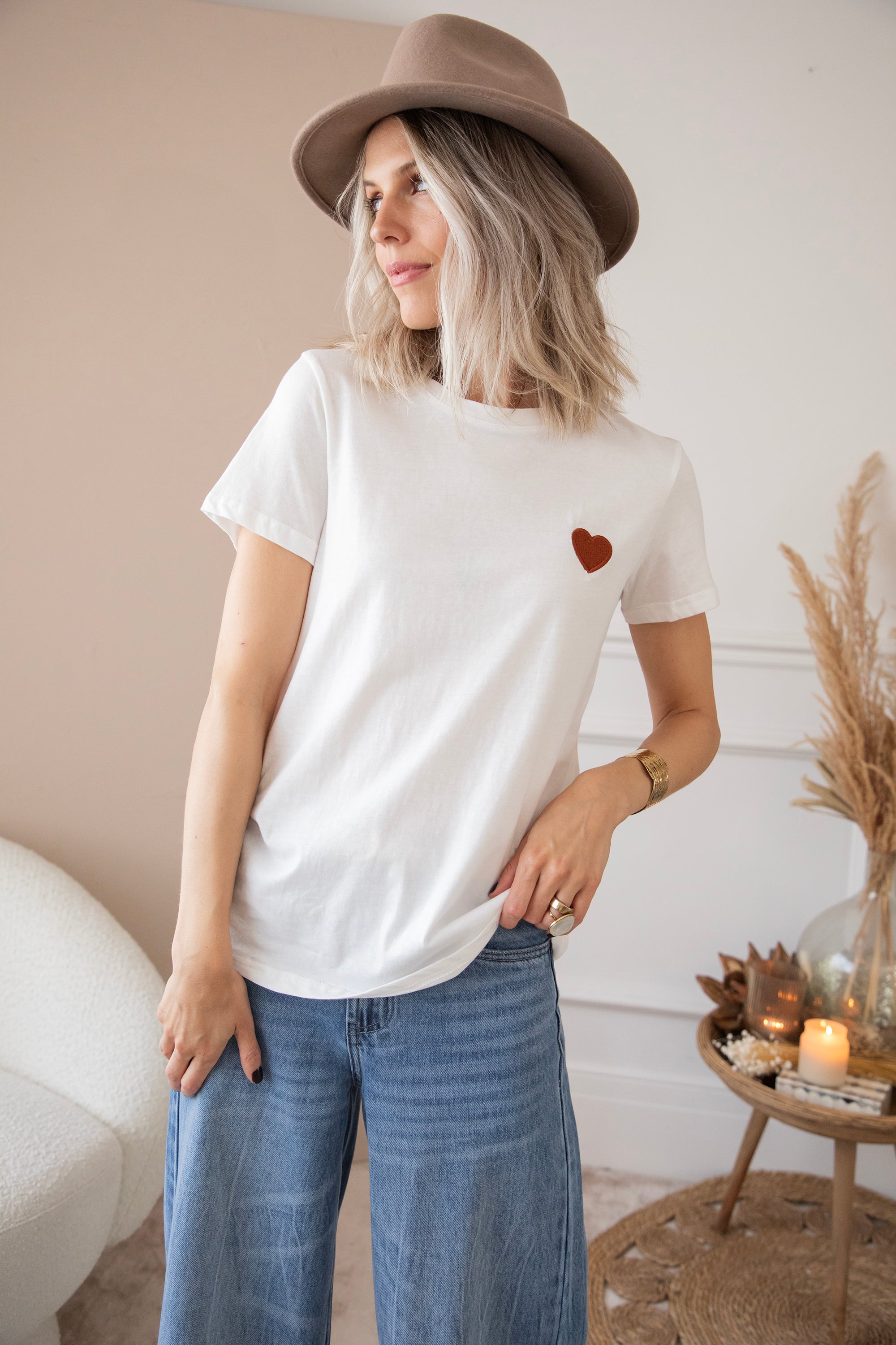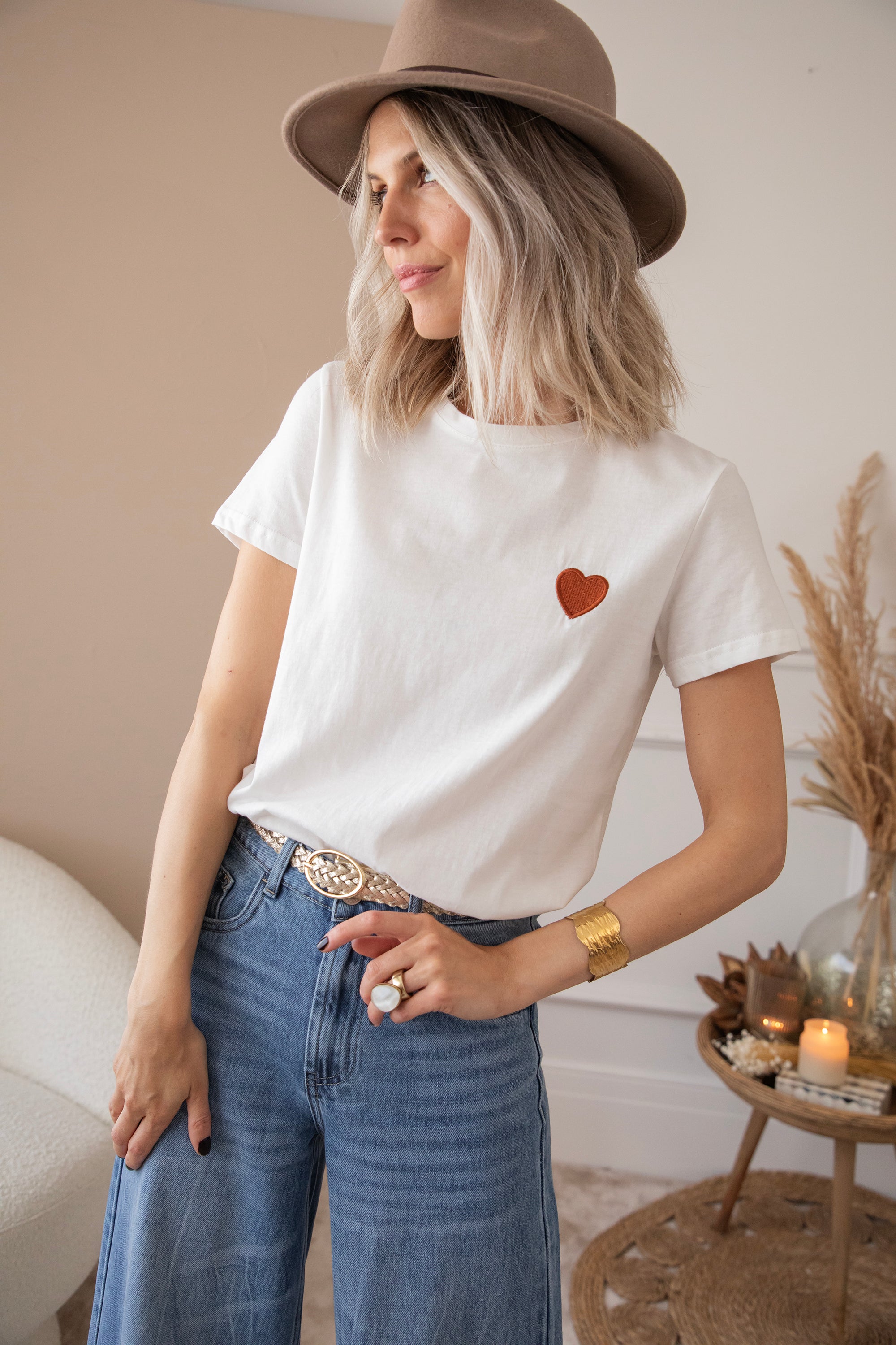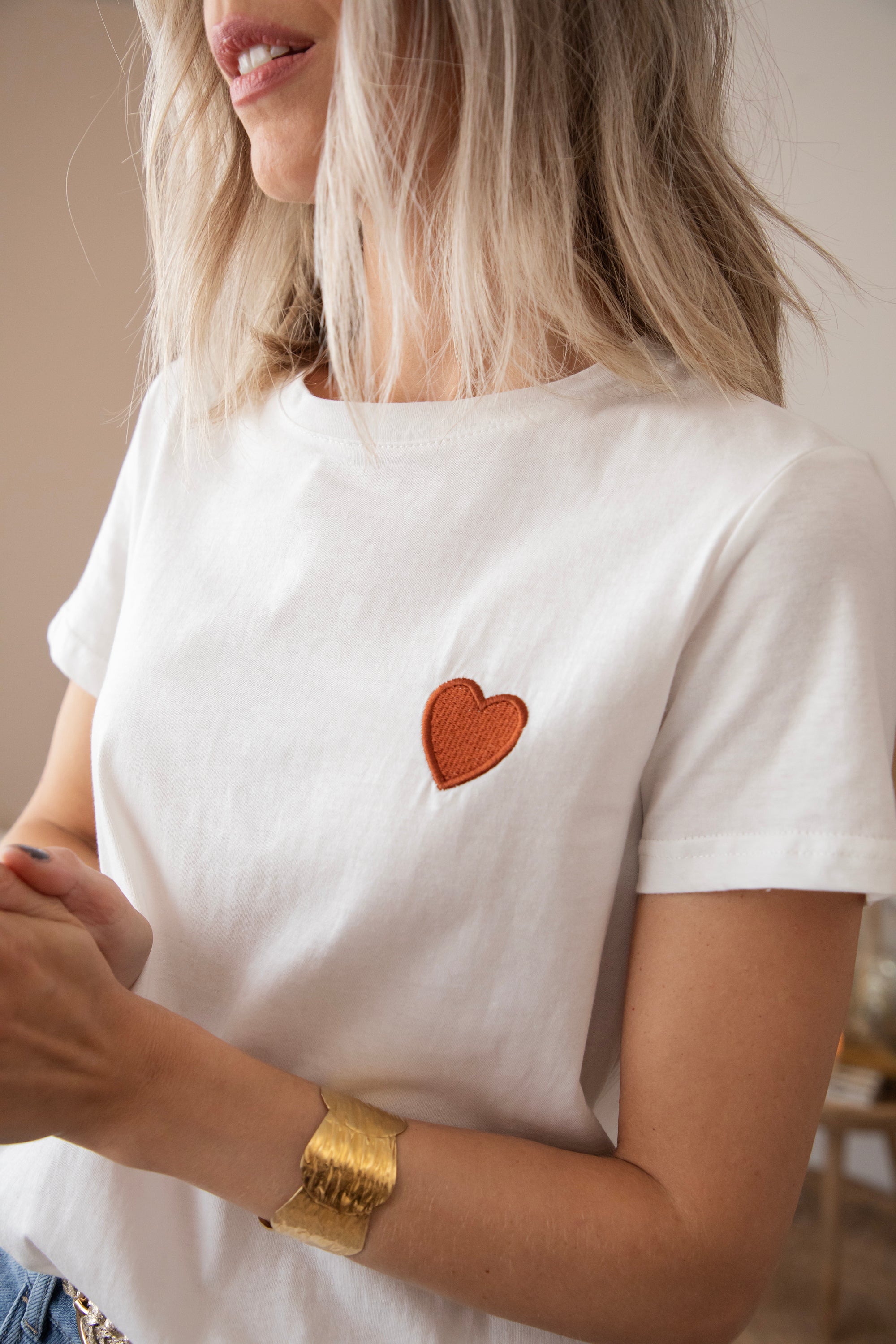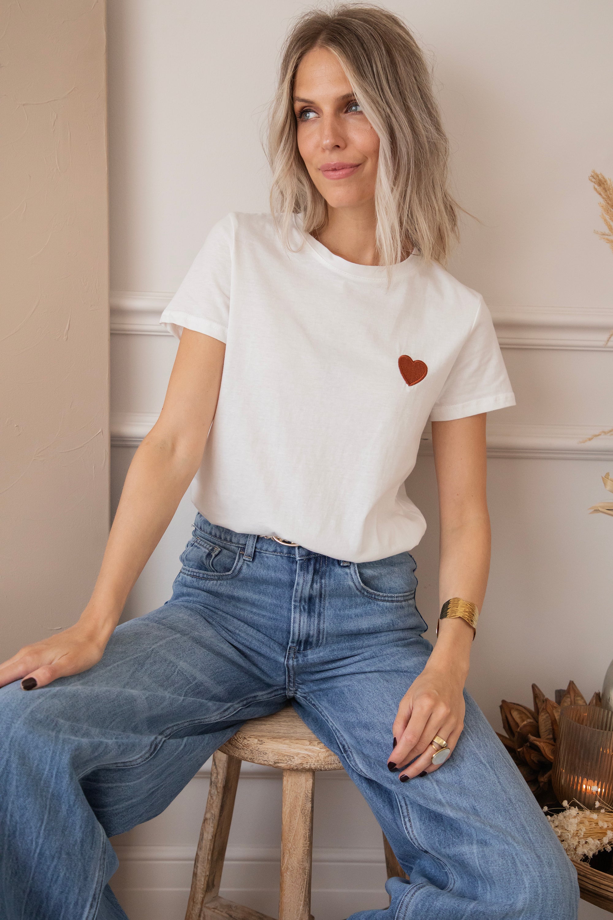 Sweethearts, our most-loved T-shirts are back!! 😍 Year after year, we hold this wonderful basic close to our hearts 🫶 This time, it's not gold but a brown heart! The brown embroidered heart and the blissful easy fit make it a beloved item! I love to wear it with a knitted cardigan or one of the ‘Snuggle Up’ cardigans 🎀