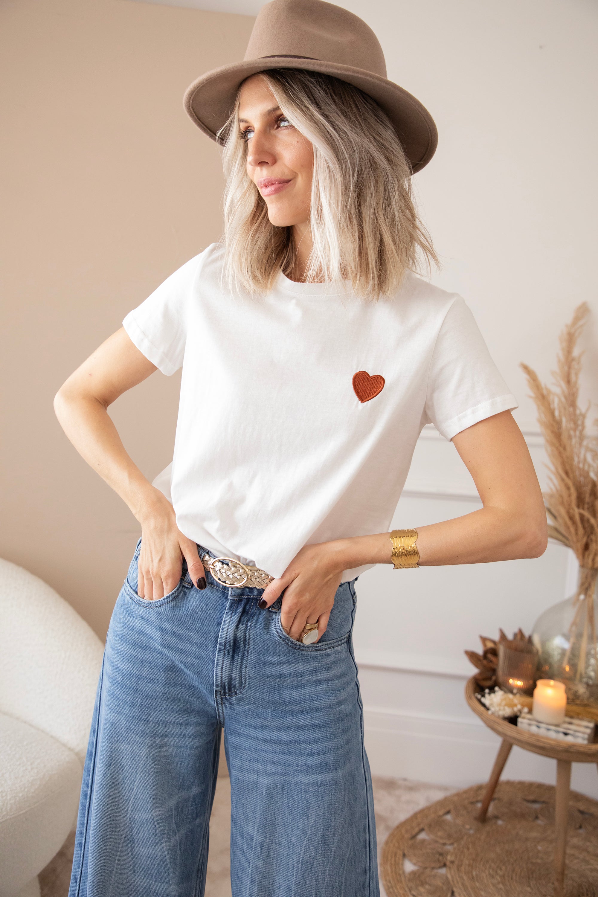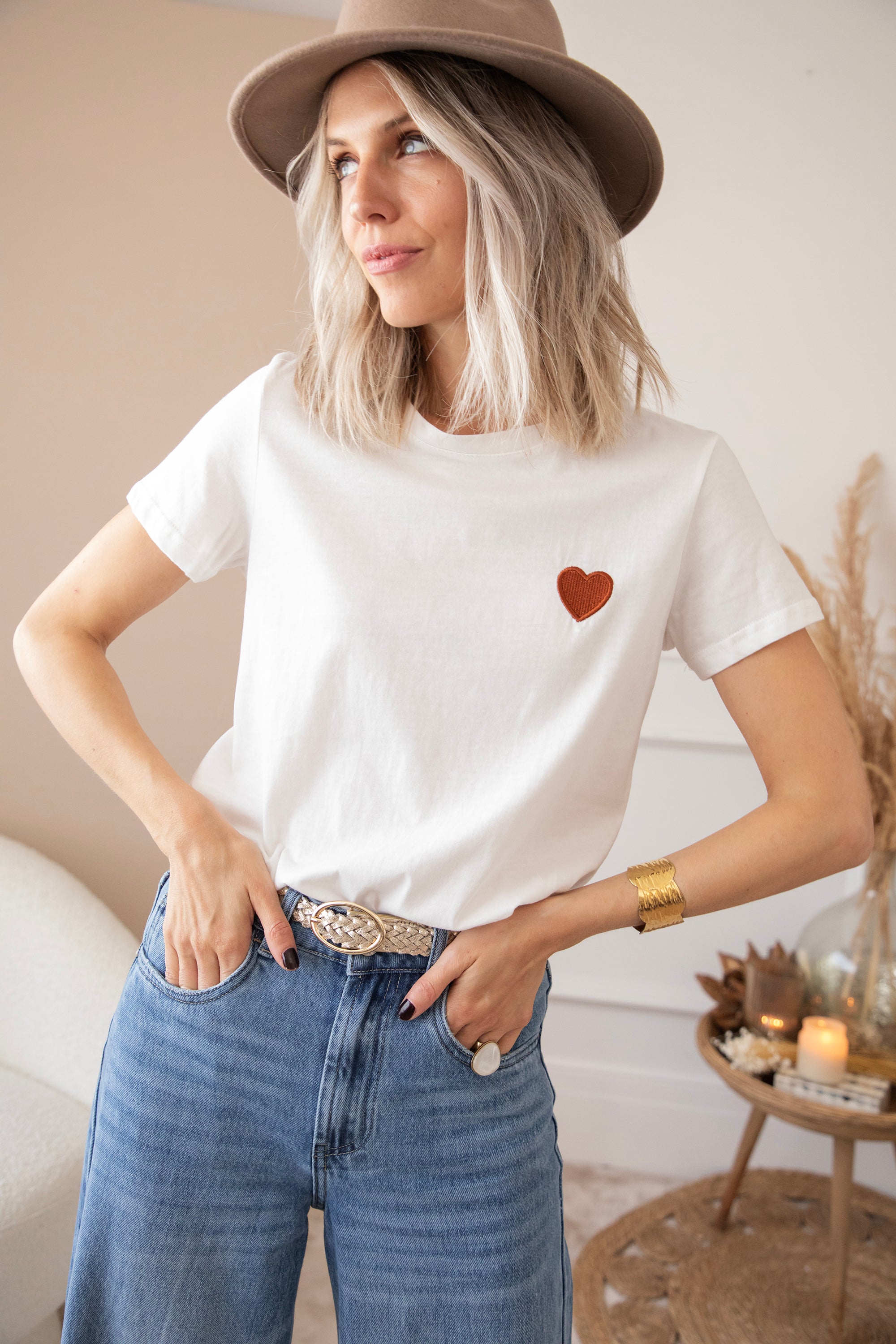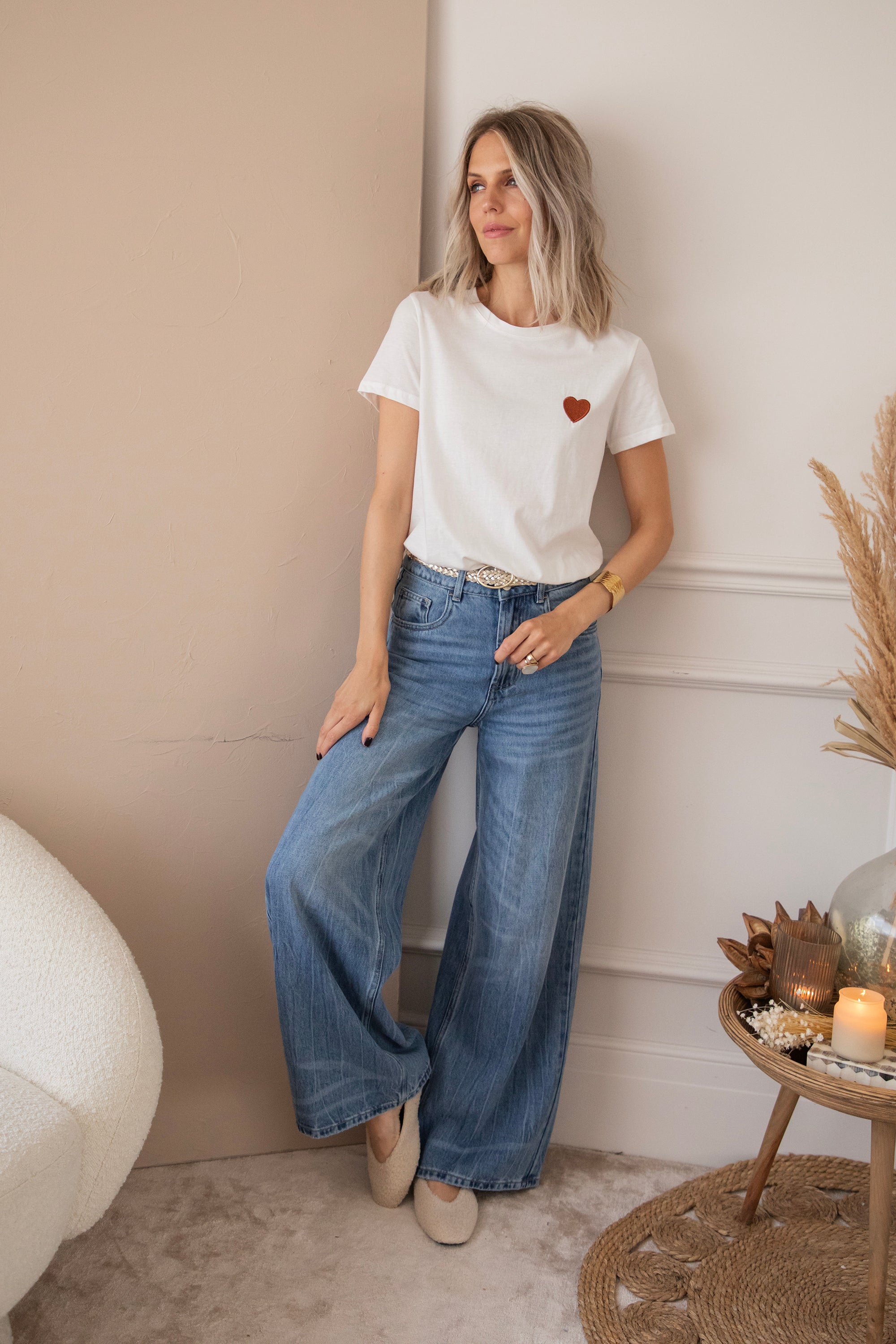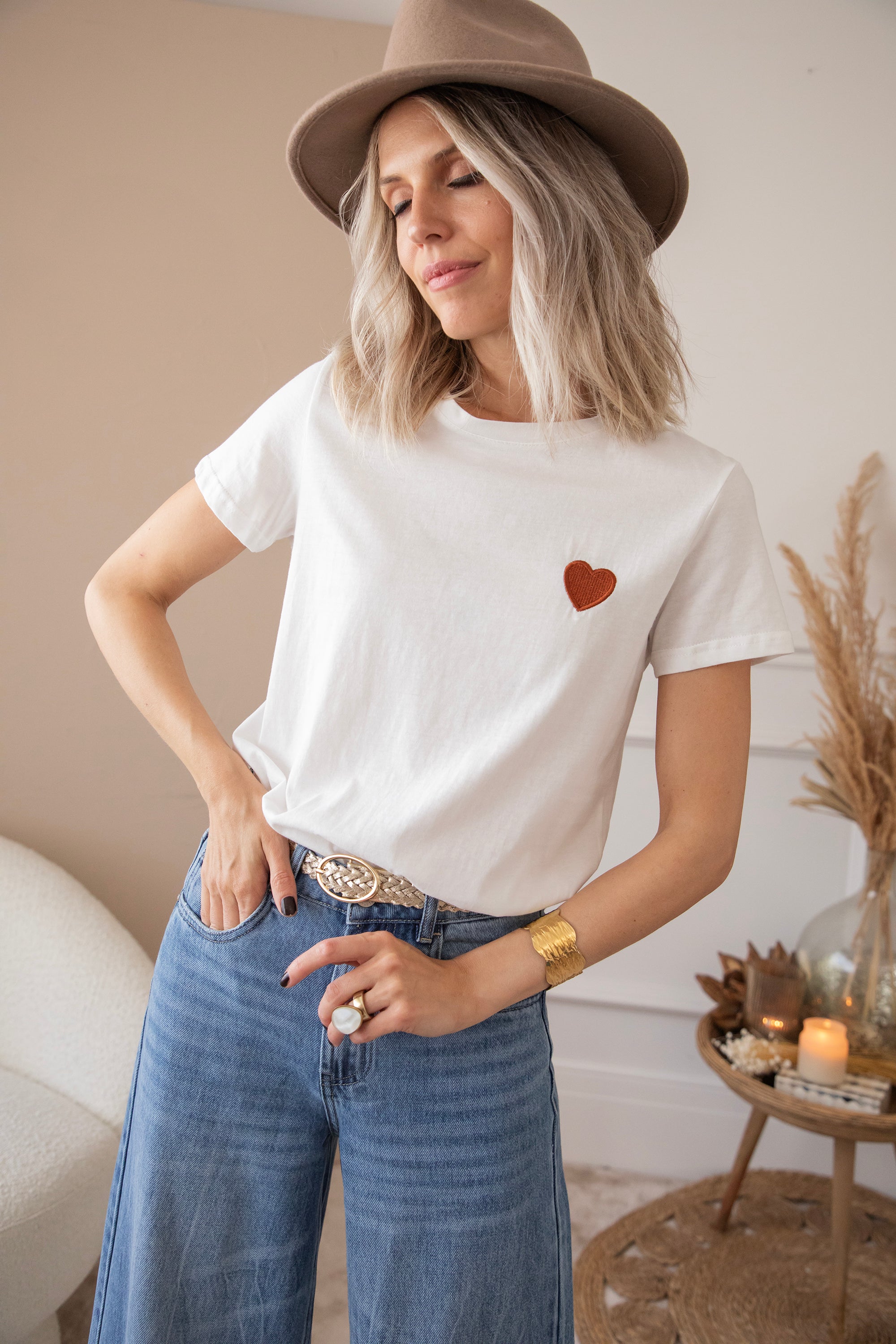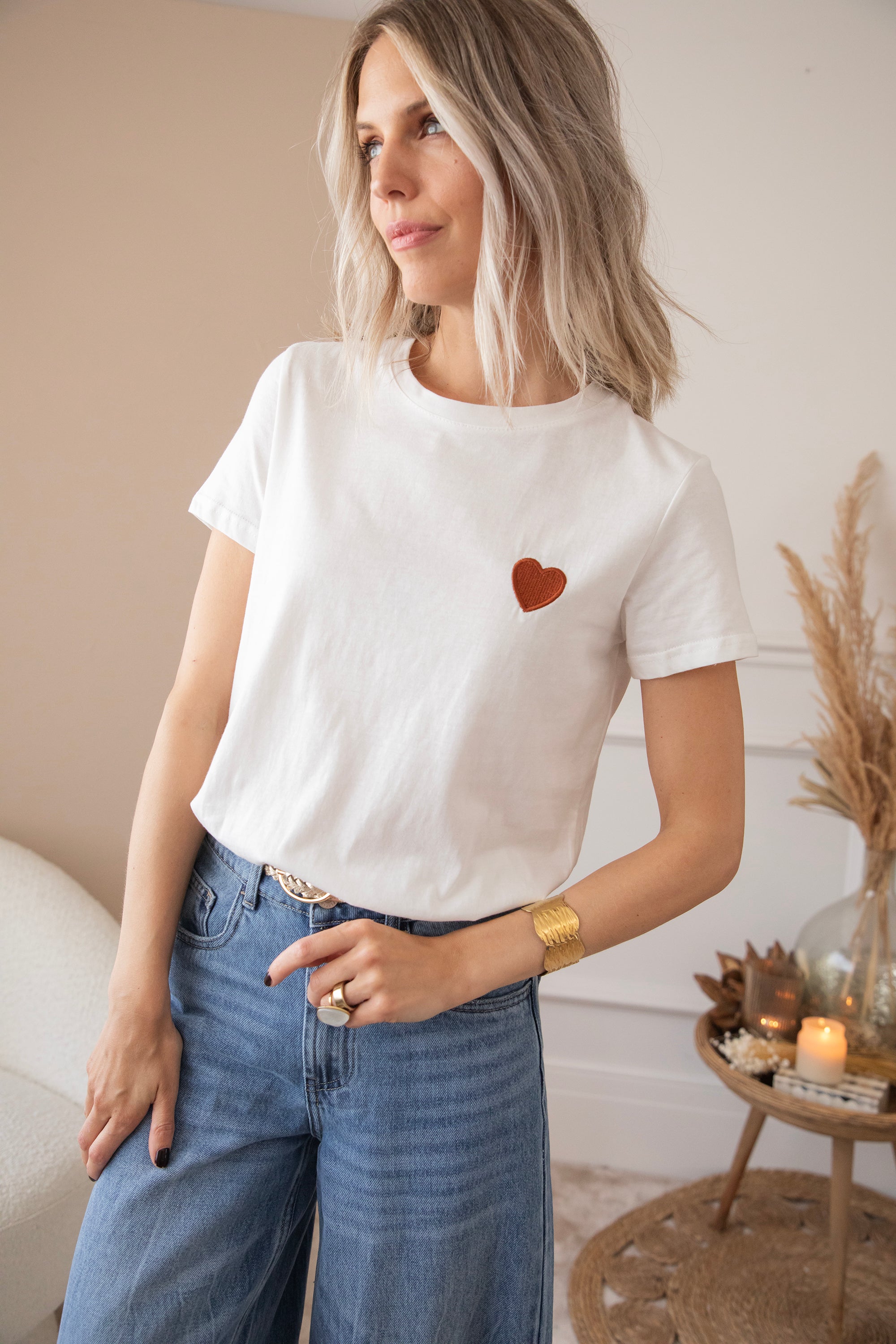 Sweethearts, our most-loved T-shirts are back!! 😍 Year after year, we hold this wonderful basic close to our hearts 🫶 This time, it's not gold but a brown heart! The brown embroidered heart and the blissful easy fit make it a beloved item! I love to wear it with a knitted cardigan or one of the ‘Snuggle Up’ cardigans 🎀