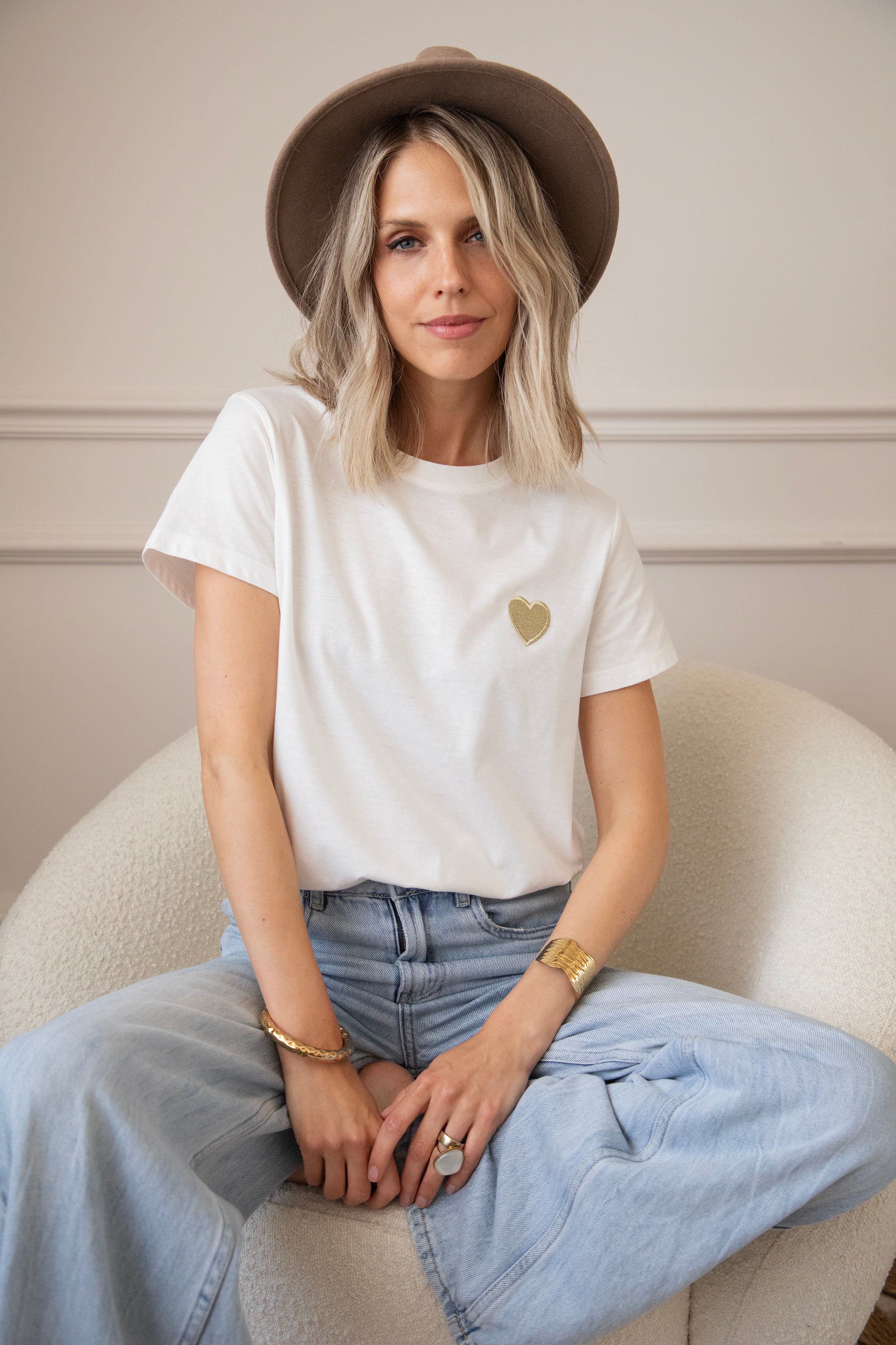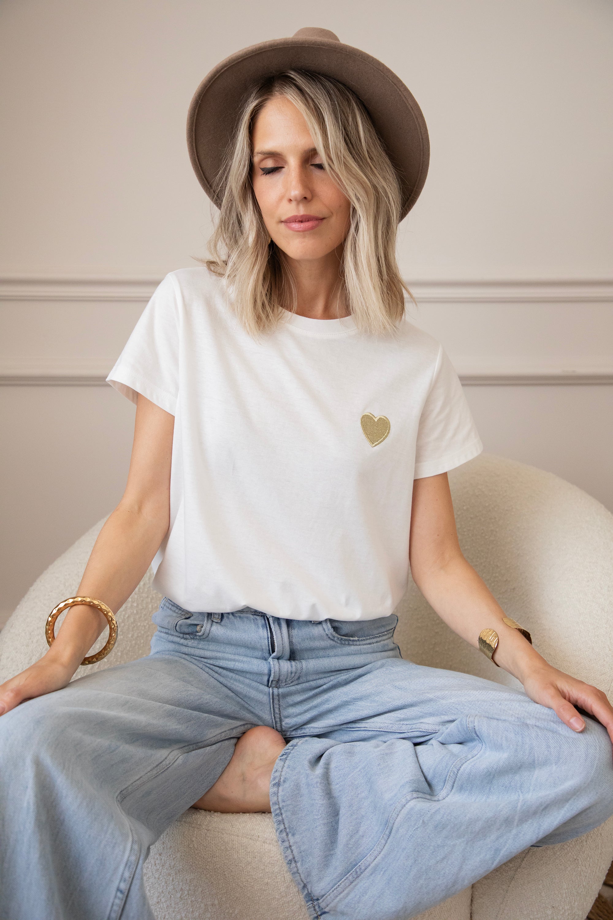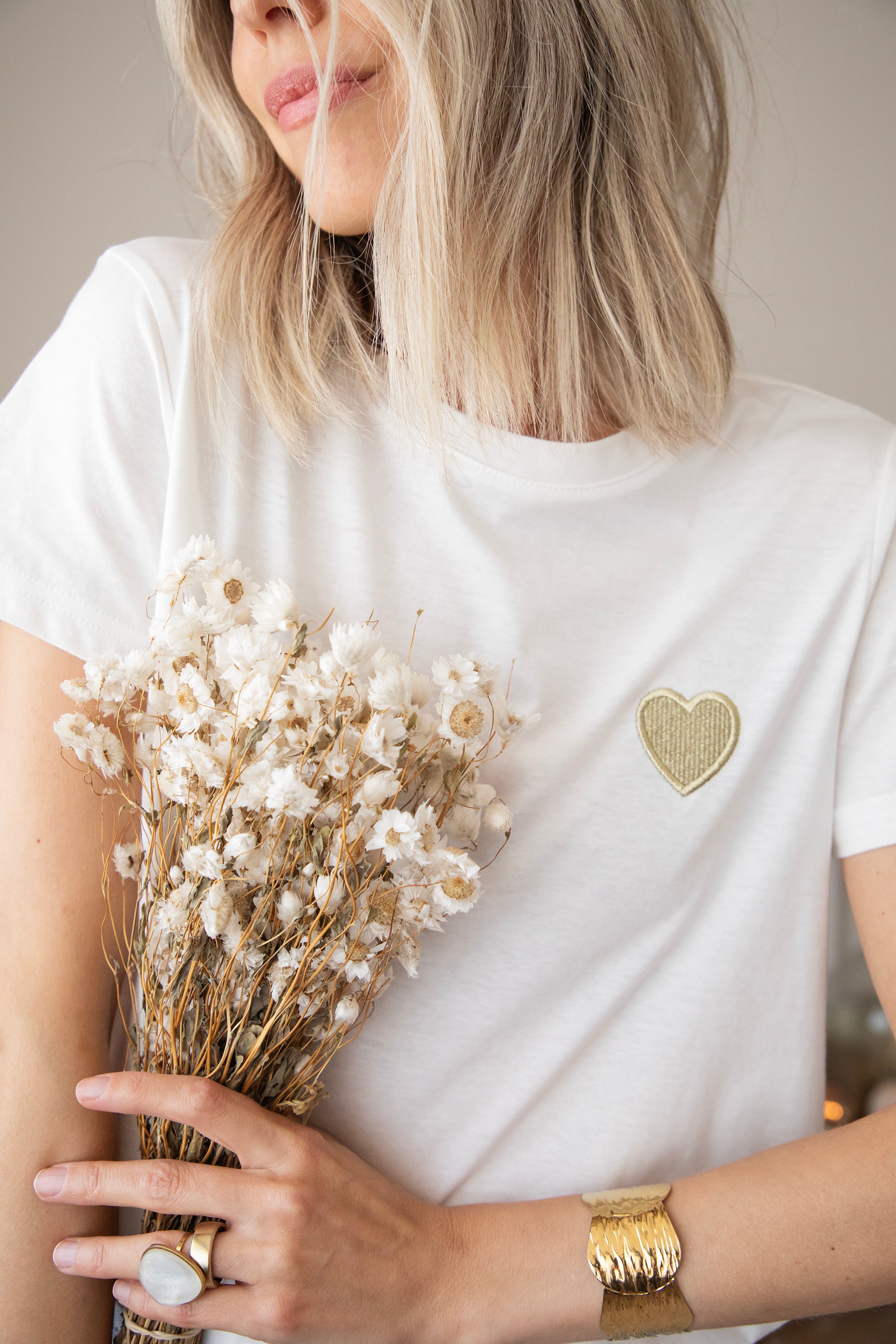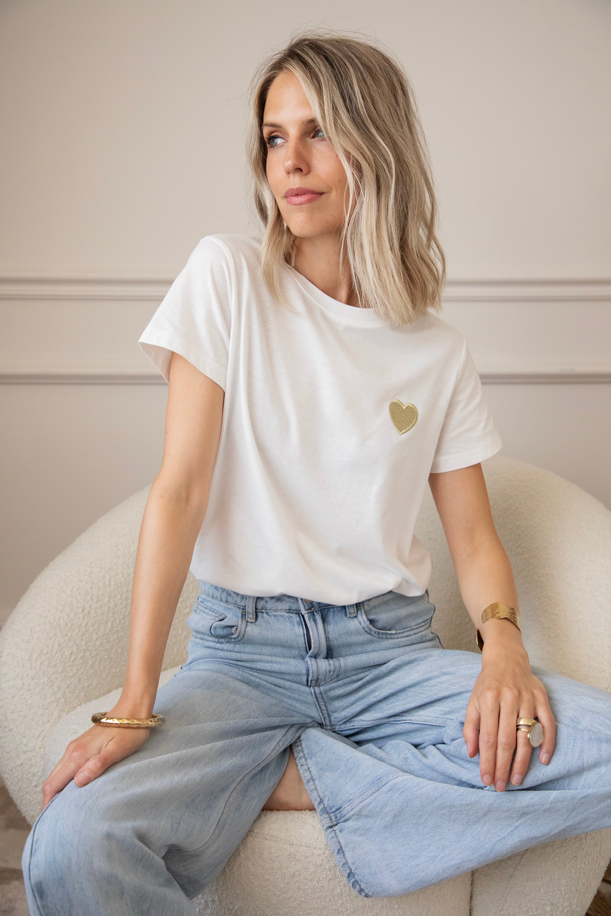 Year after year, we hold this wonderful basic close to our hearts 🫶 The gold embroidered heart and the blissful easy fit make it a beloved item! Beating Heart is a stunning basic with a lovely twist! A basic white color is always a nice addition! We also have a slightly darker shade, but there is very little difference ☺️