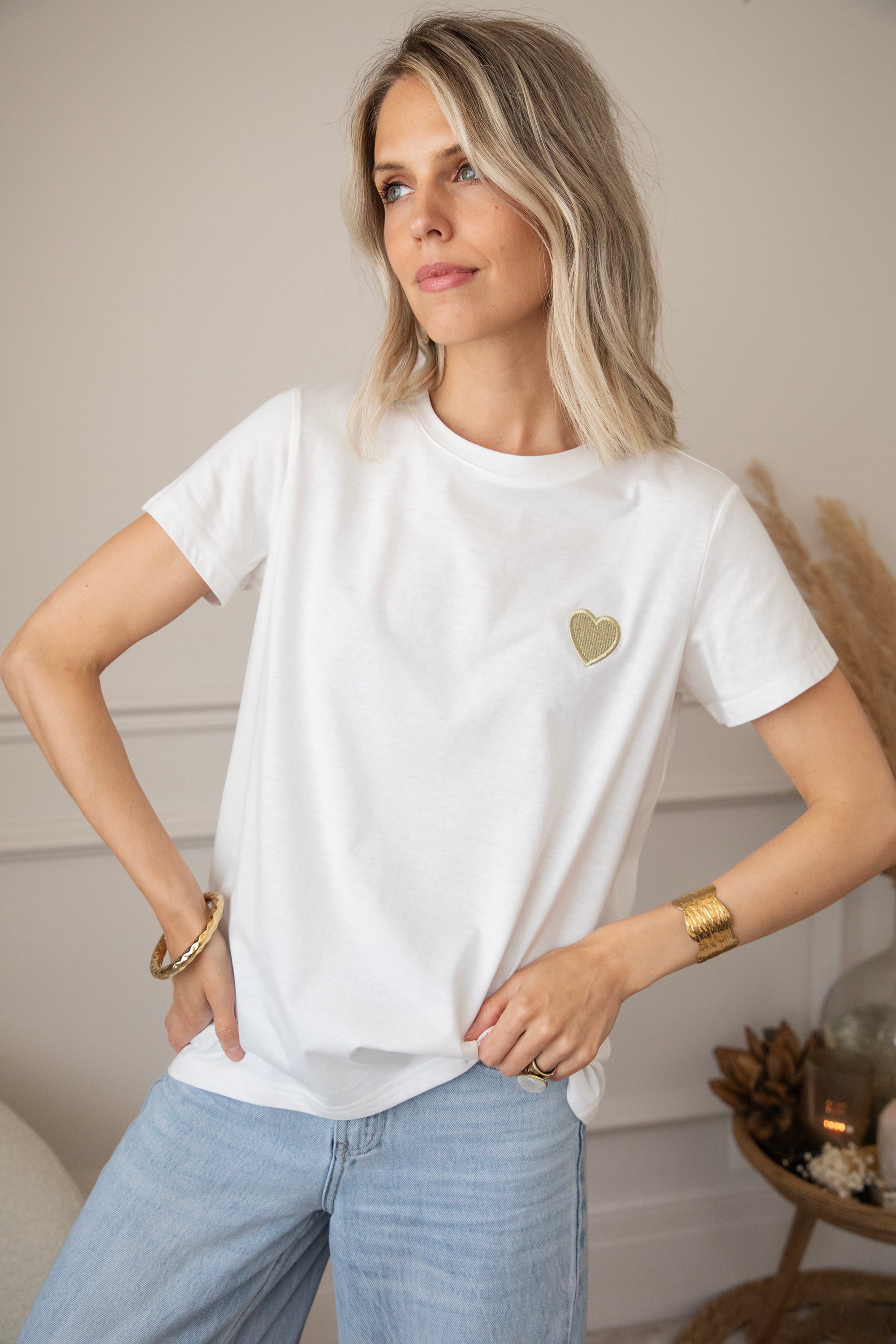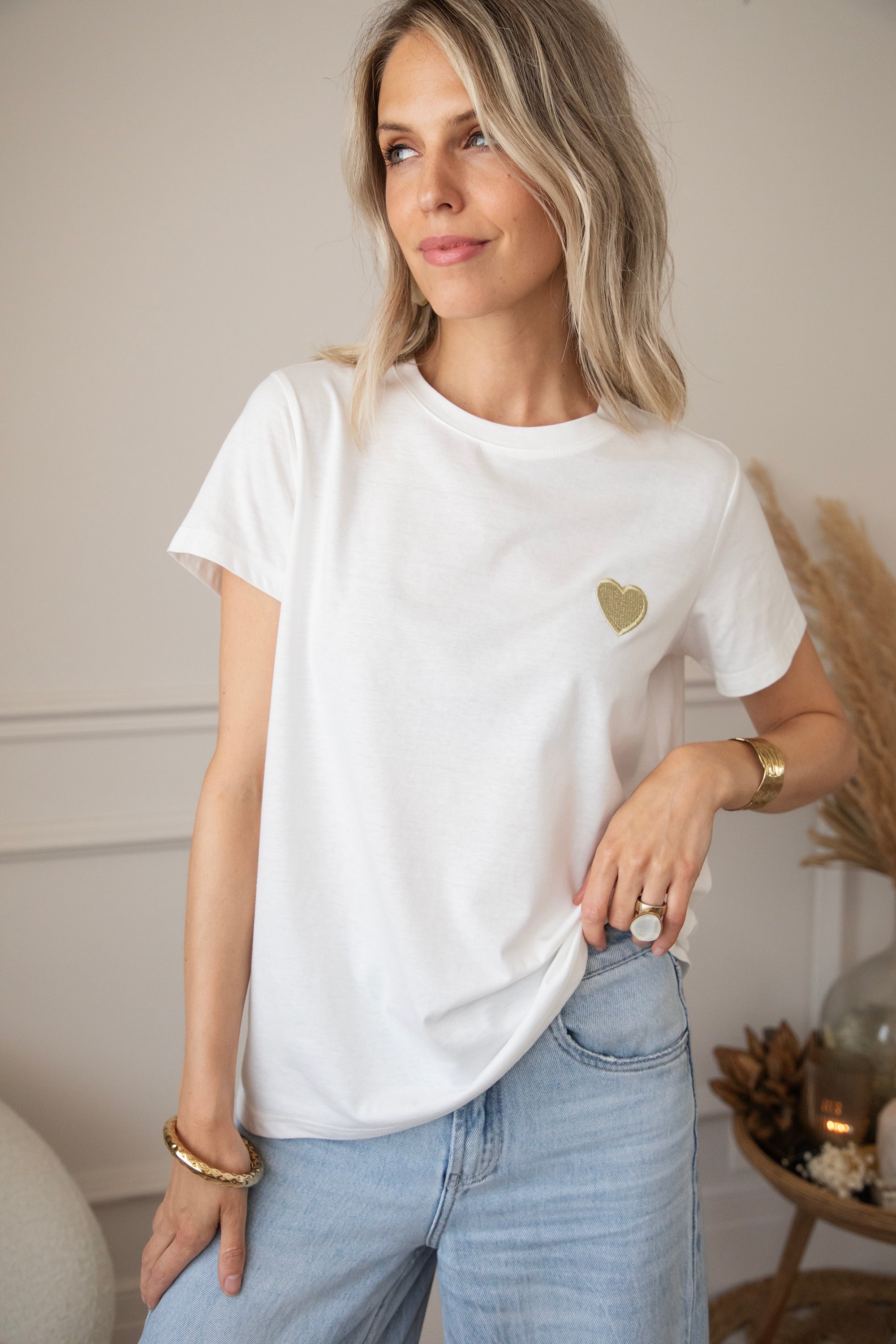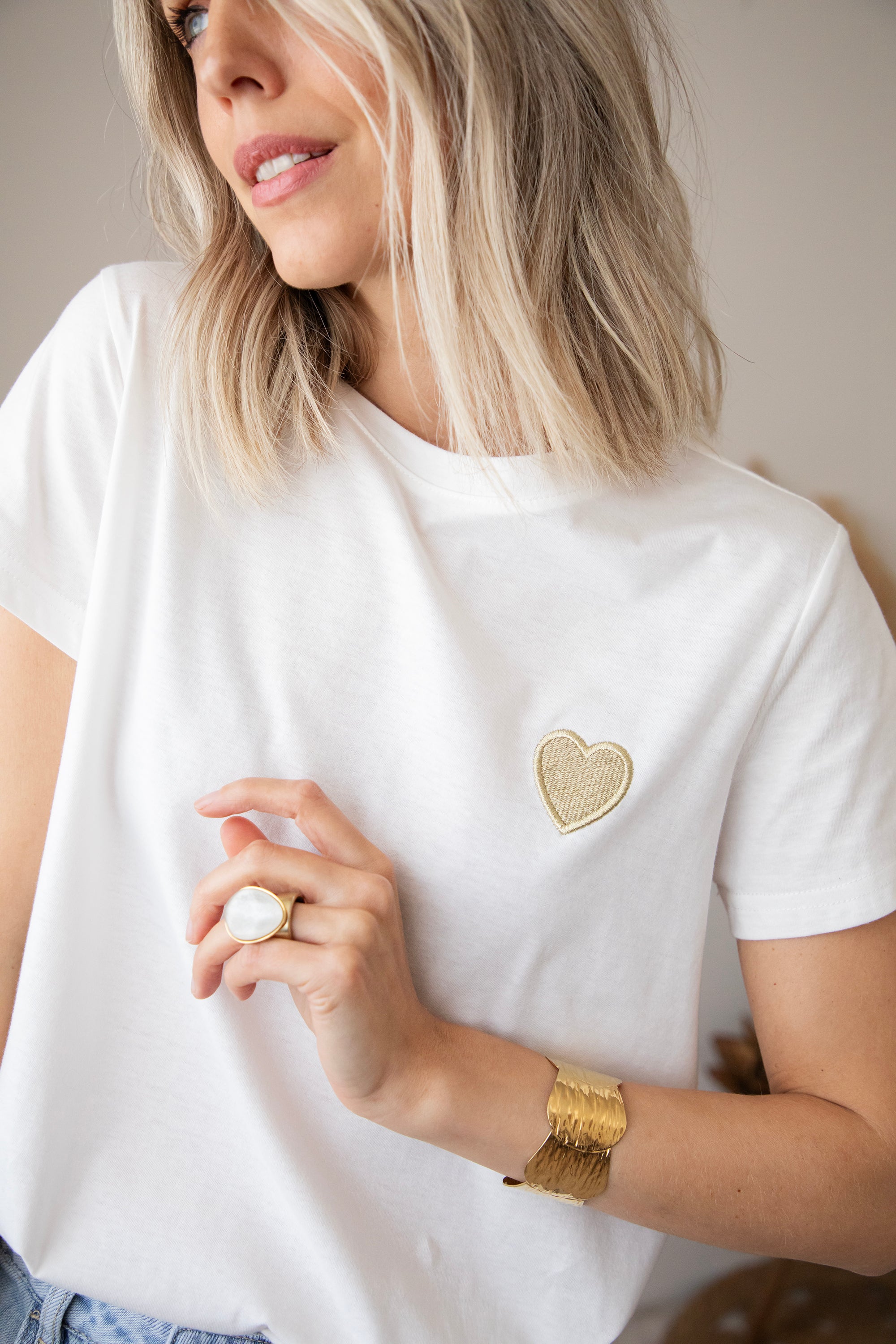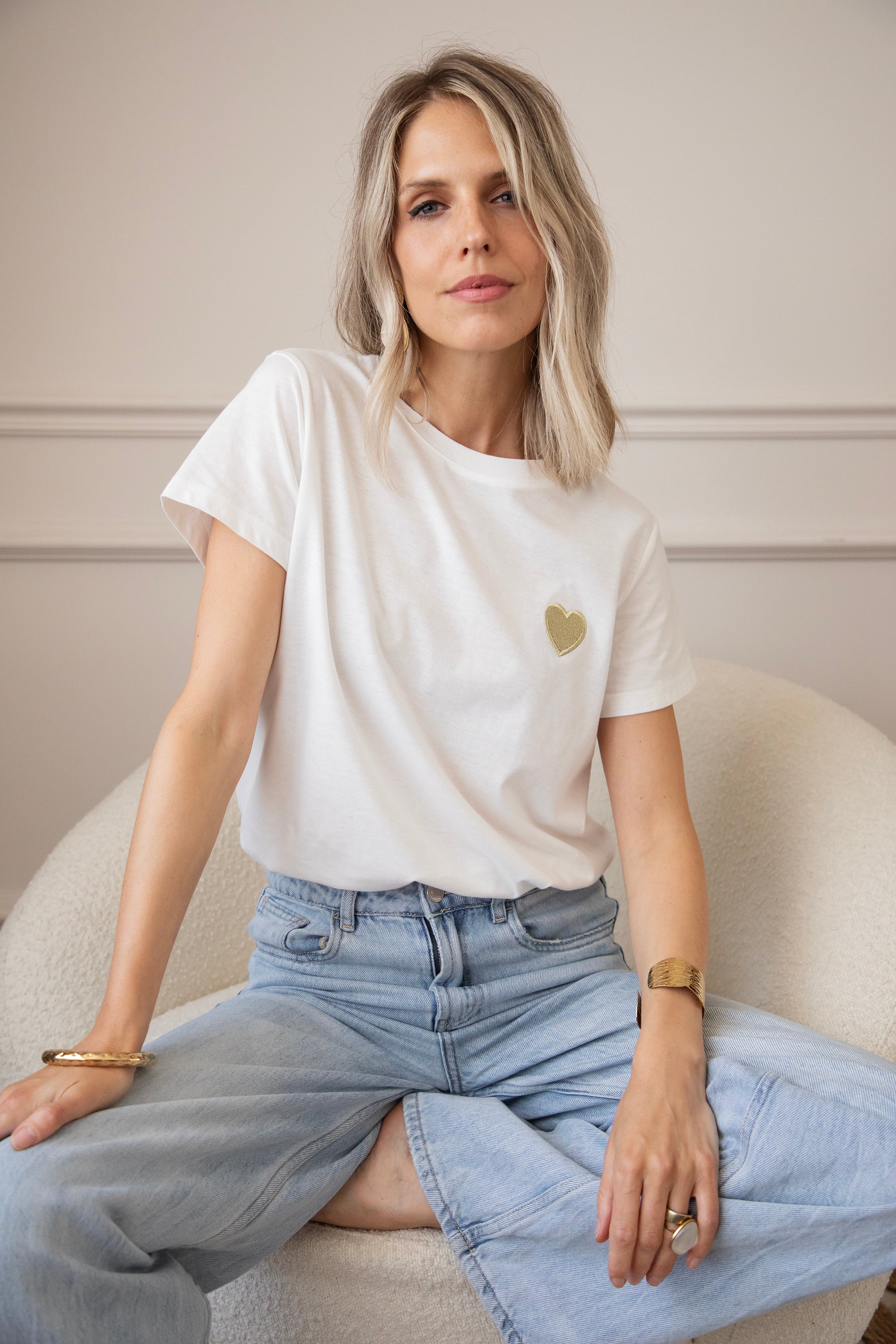 Year after year, we hold this wonderful basic close to our hearts 🫶 The gold embroidered heart and the blissful easy fit make it a beloved item! Beating Heart is a stunning basic with a lovely twist! A basic white color is always a nice addition! We also have a slightly darker shade, but there is very little difference ☺️
