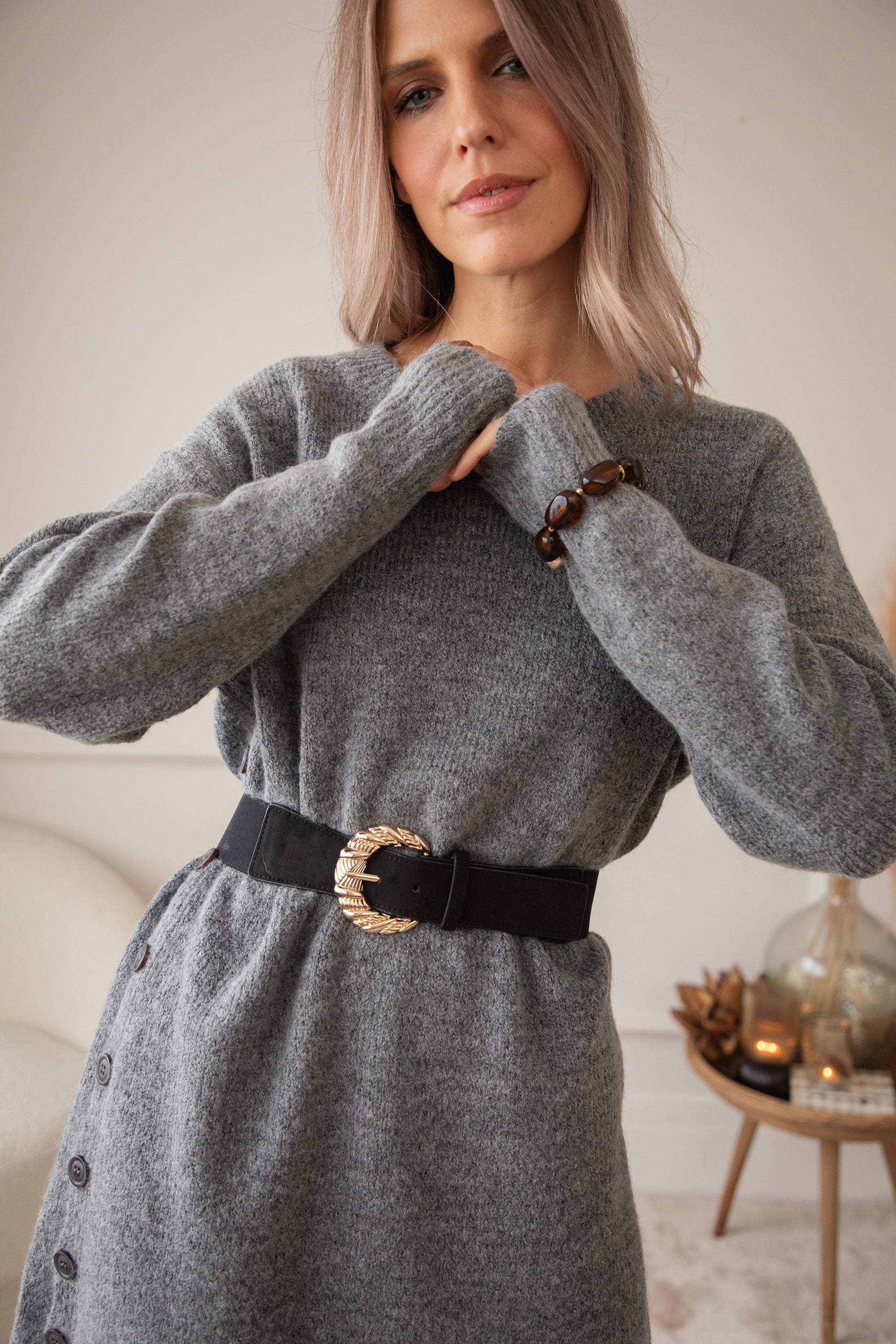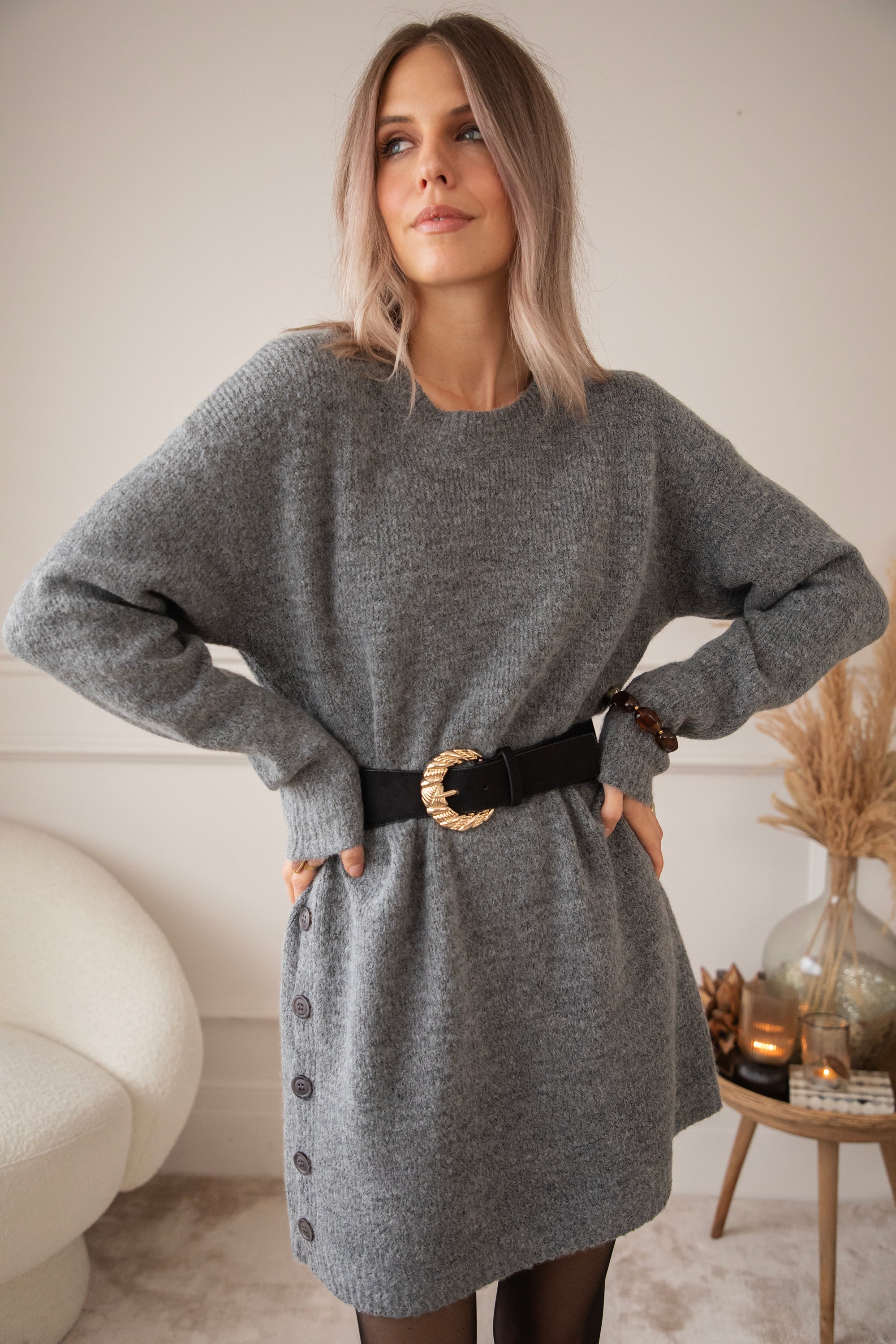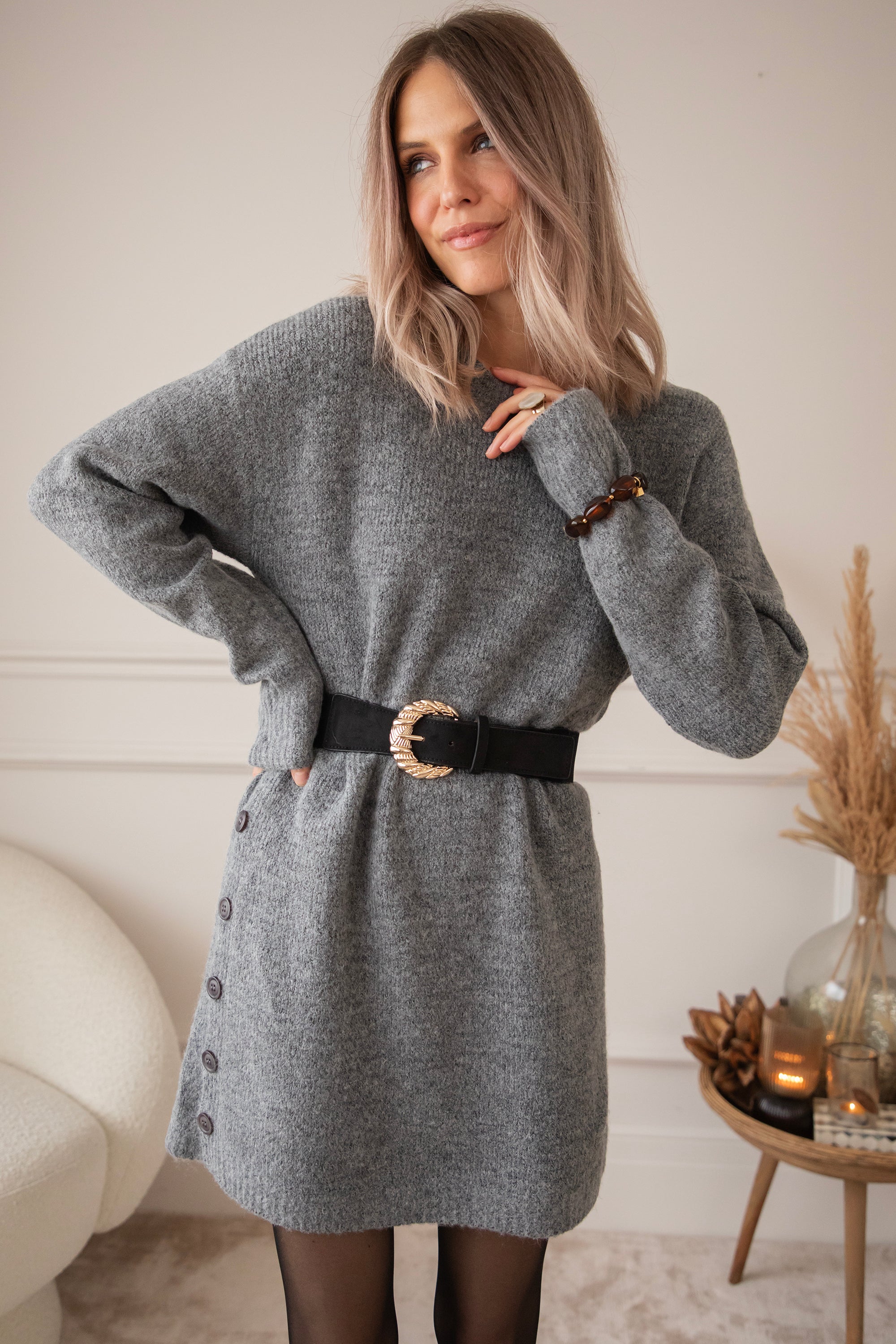 Oooh ladies, I've received so many lovely messages and compliments about this sweater dress! 🥰 And I totally get it! I love wearing it myself... It's long enough, super comfortable thanks to the easy fit and low shoulder seam, and comes with cute button details on the side! You can dress it up with a sleeveless jacket and a pair of high boots, which for me is the ultimate fall outfit 🍂