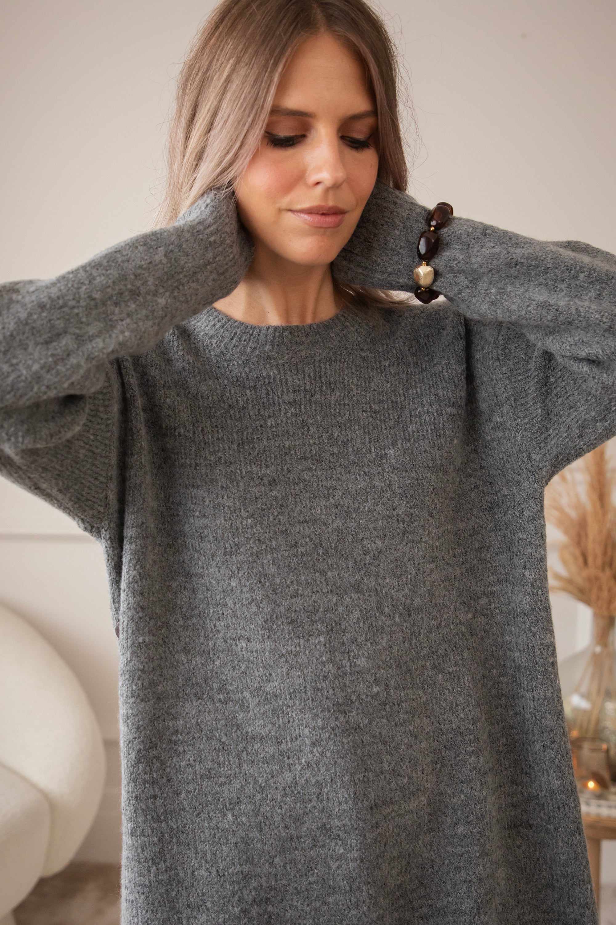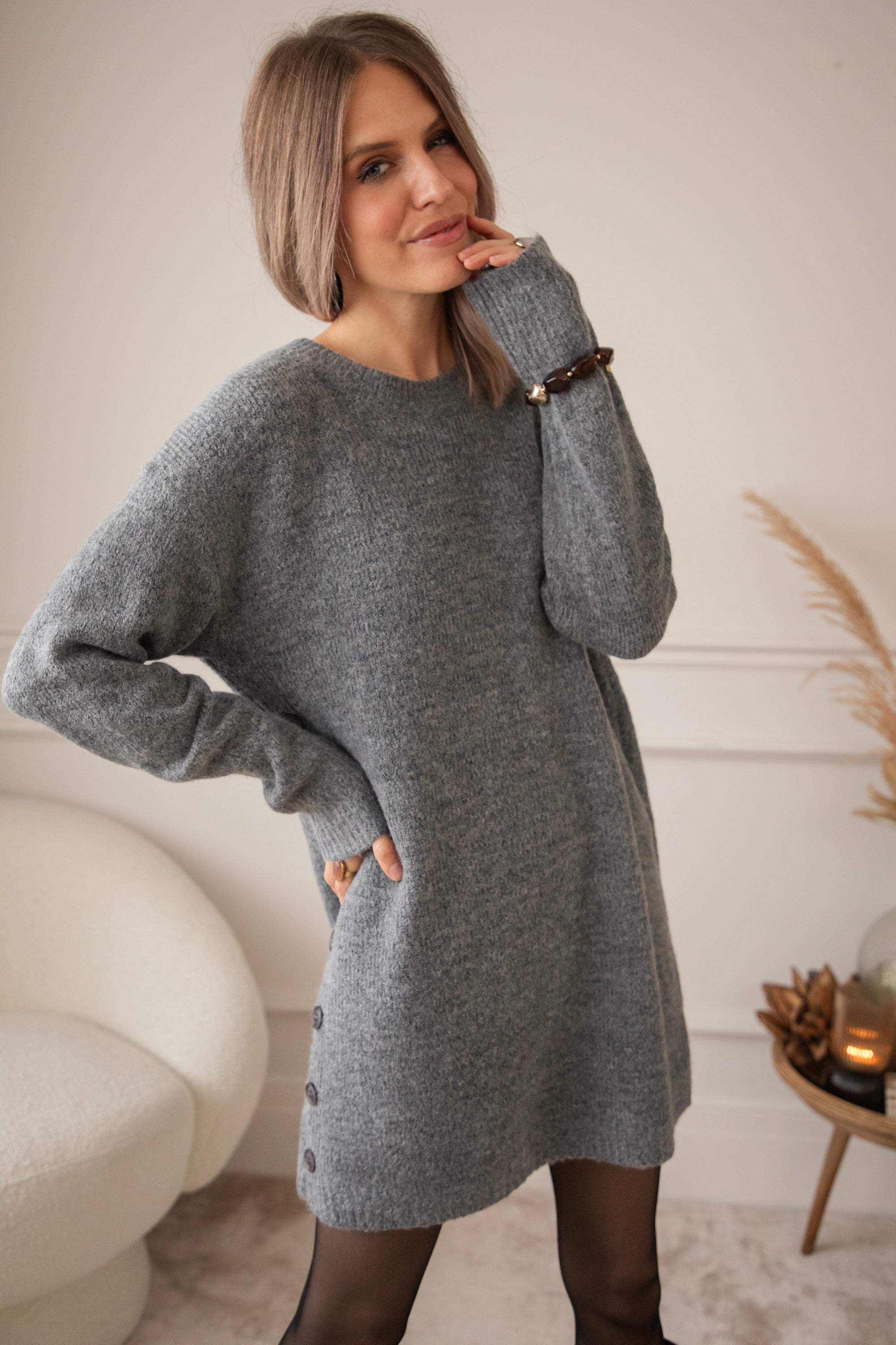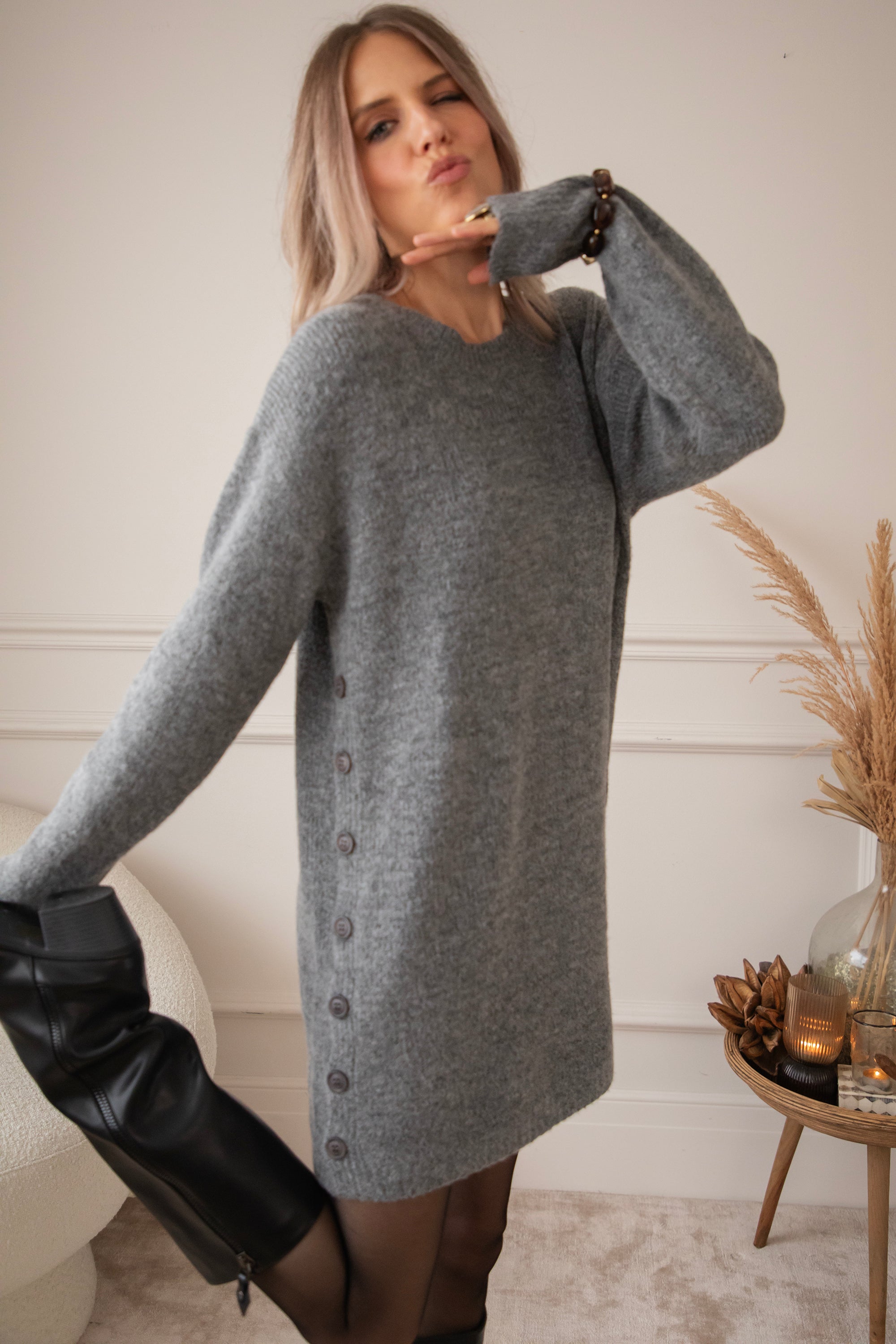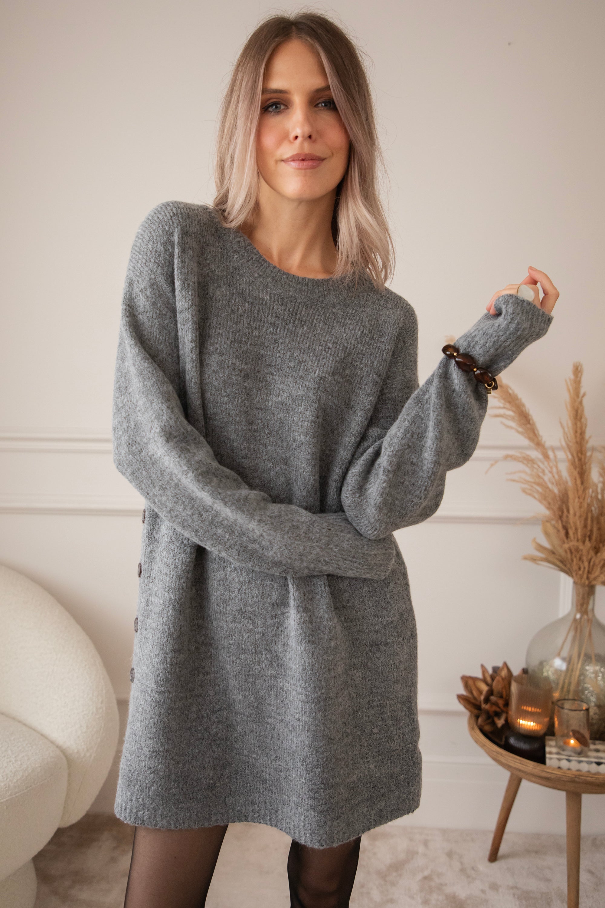 Oooh ladies, I've received so many lovely messages and compliments about this sweater dress! 🥰 And I totally get it! I love wearing it myself... It's long enough, super comfortable thanks to the easy fit and low shoulder seam, and comes with cute button details on the side! You can dress it up with a sleeveless jacket and a pair of high boots, which for me is the ultimate fall outfit 🍂