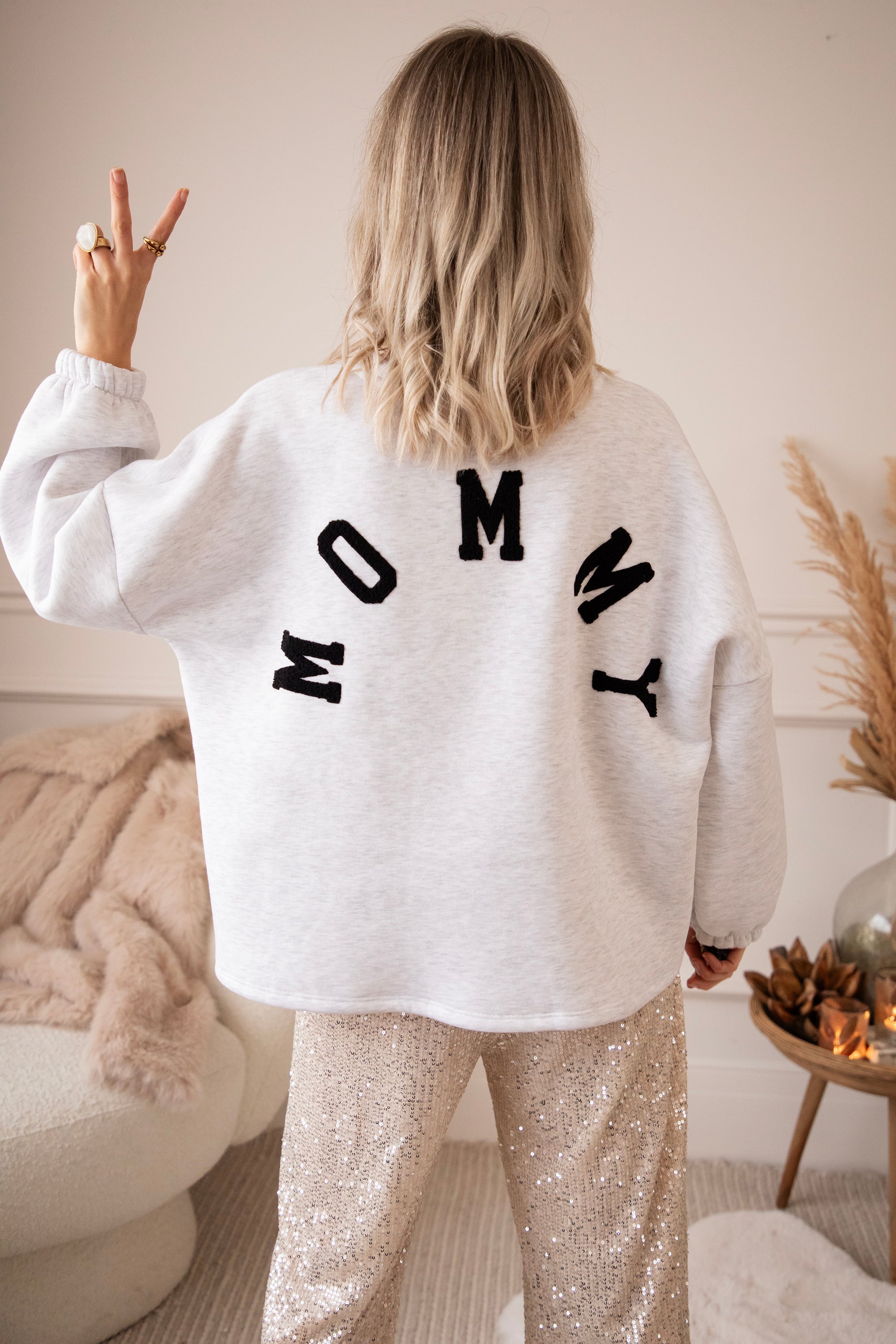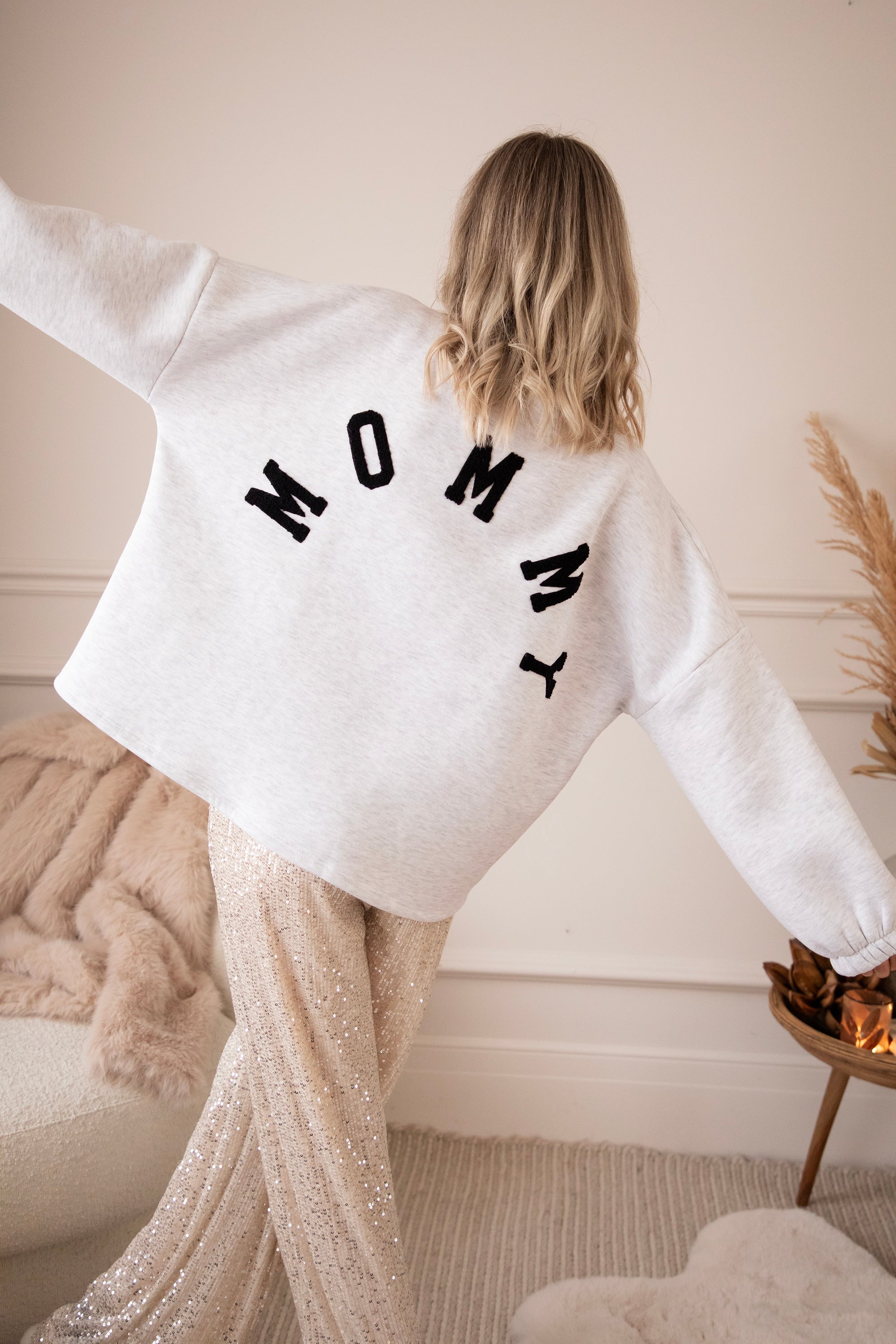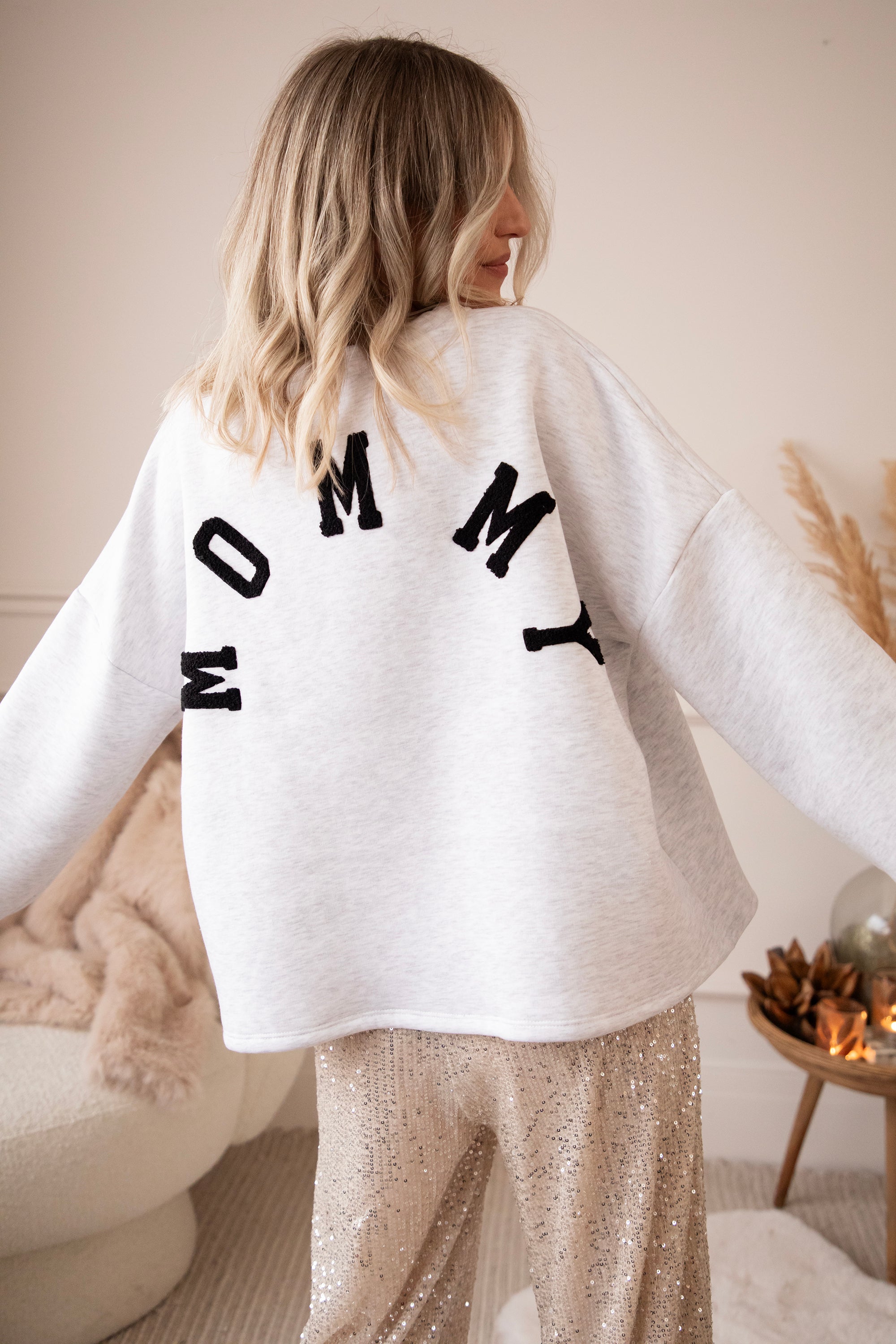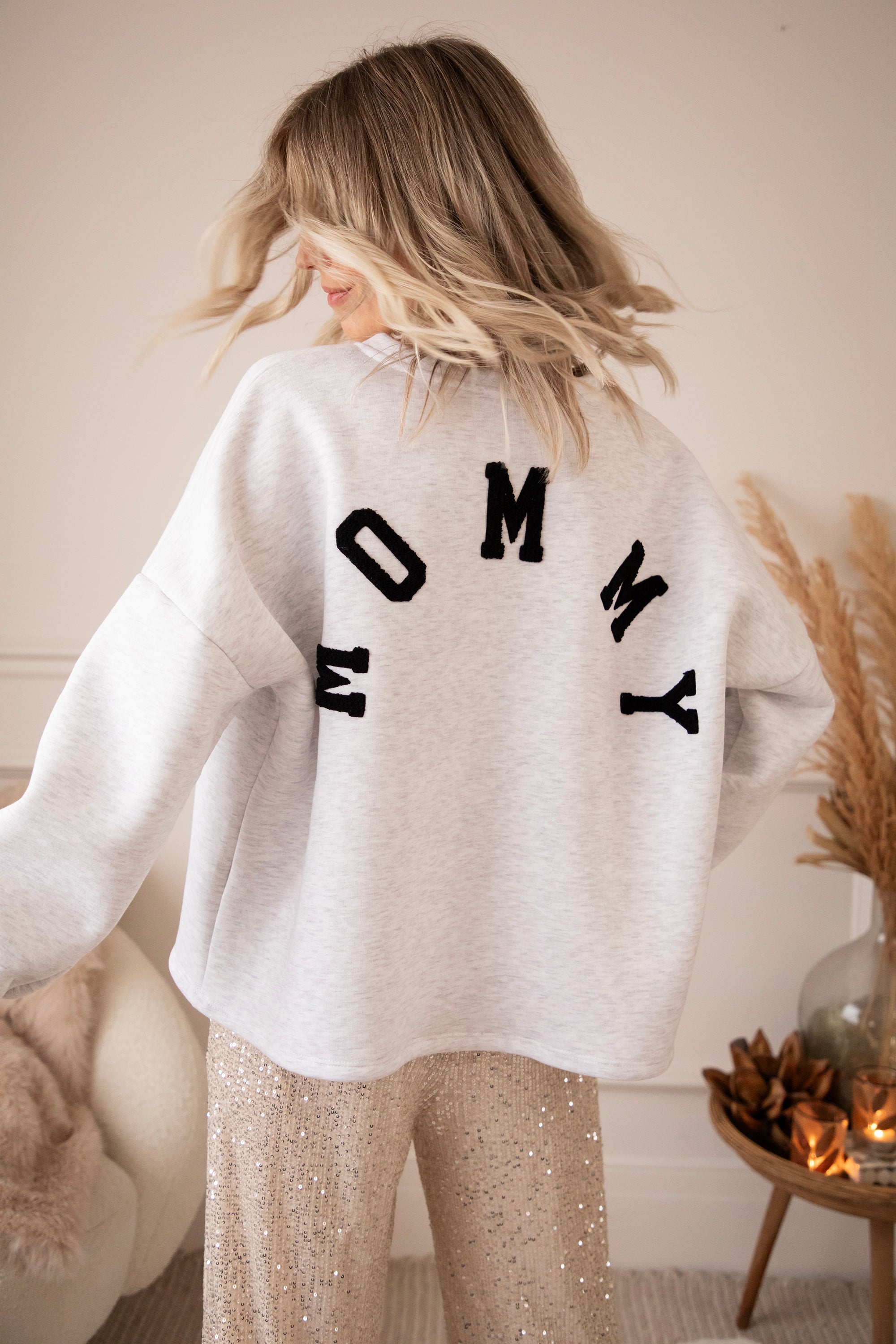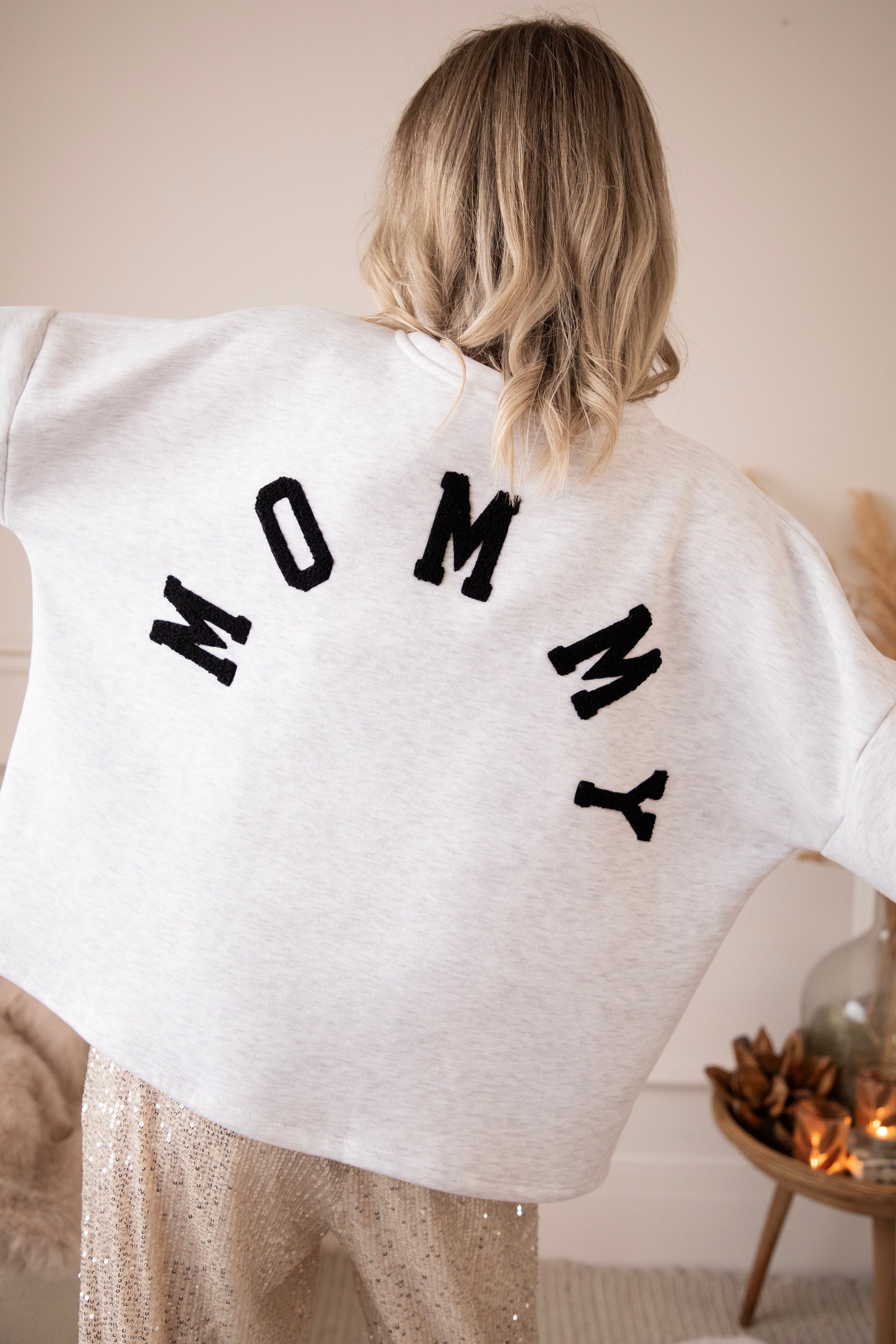 On the back, it now says MOMMY in soft black teddy letters ✨ Perfect for all moms who want to treat themselves to so much comfort because you deserve it so much... or as the sweetest gift for your own mommy 💖 A sweater that radiates warmth, comfort, and love every time you wear it.