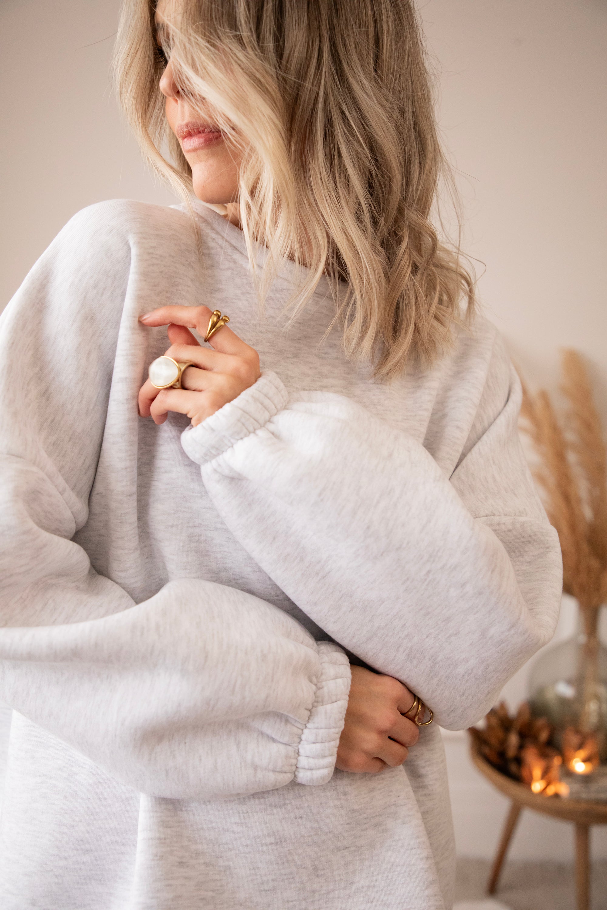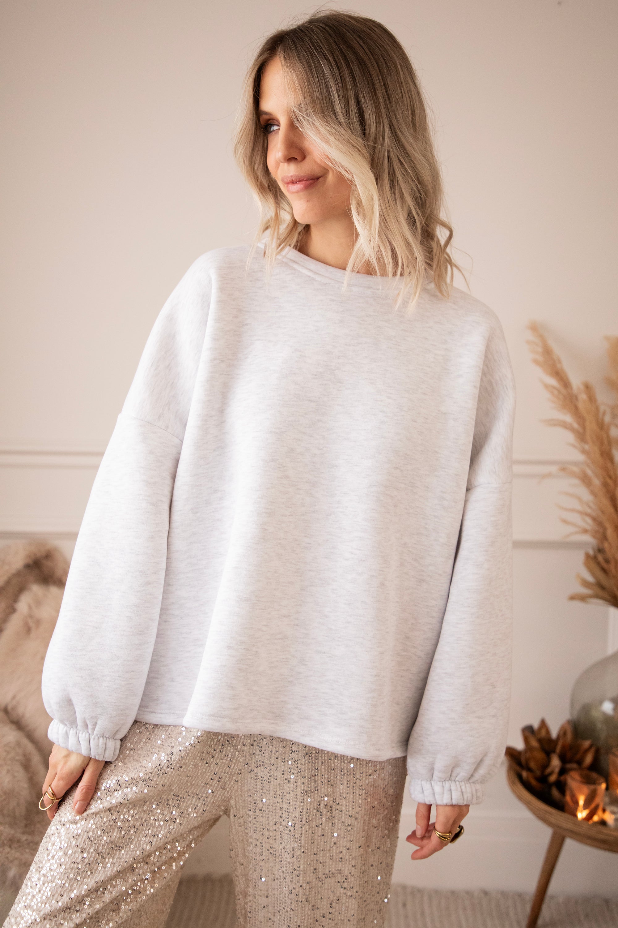 This sweater is for those moments when you curl up on the couch, light some candles, and just relax. With a loose fit, stretchy sleeve ends, and a fleece lining, it's a real cuddle on chilly winter days ❄️