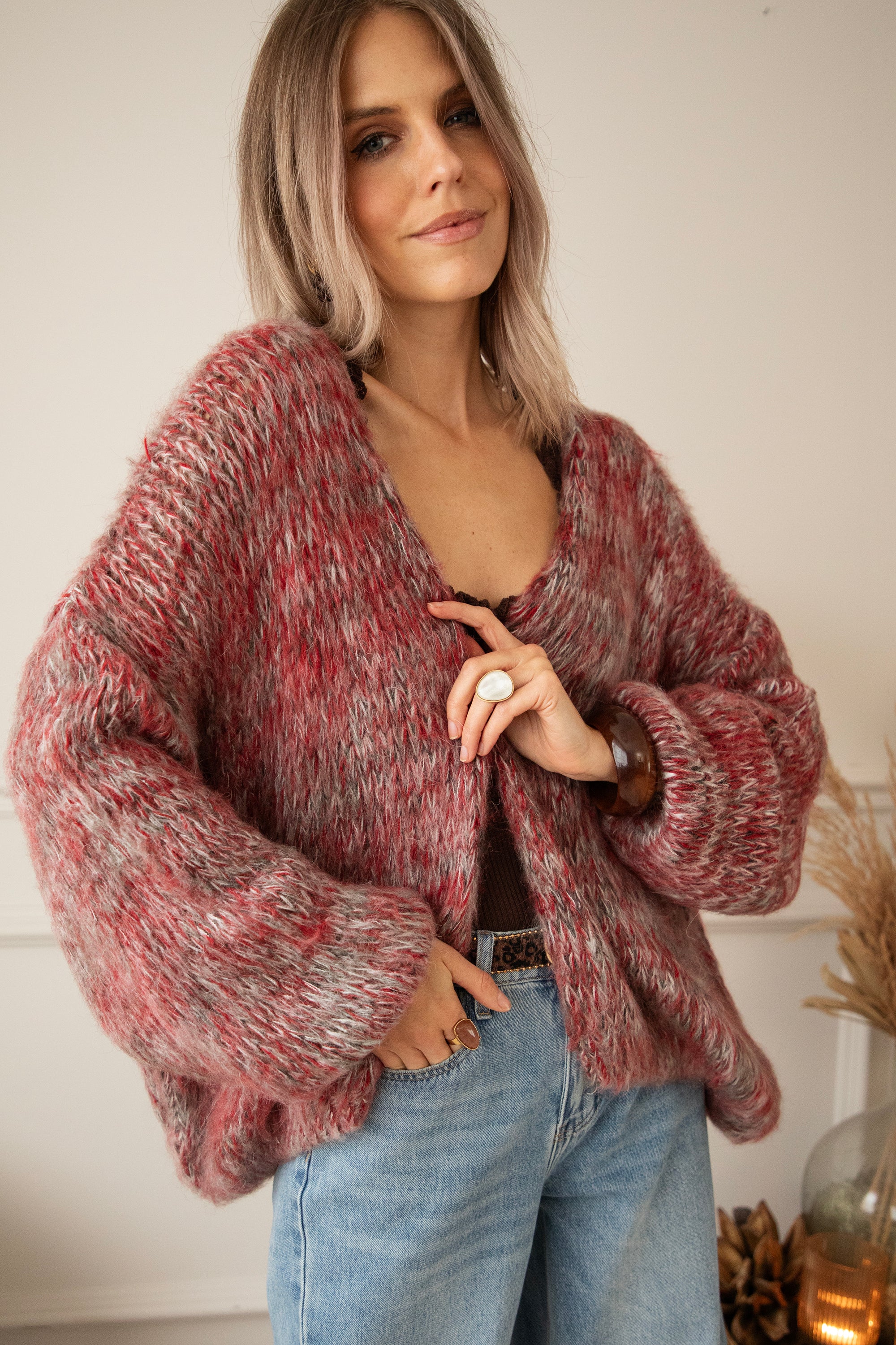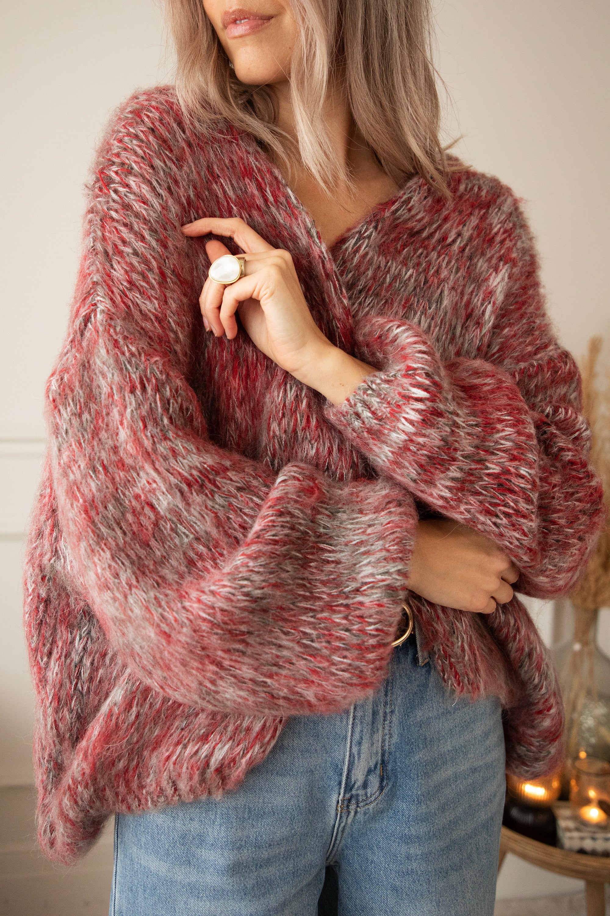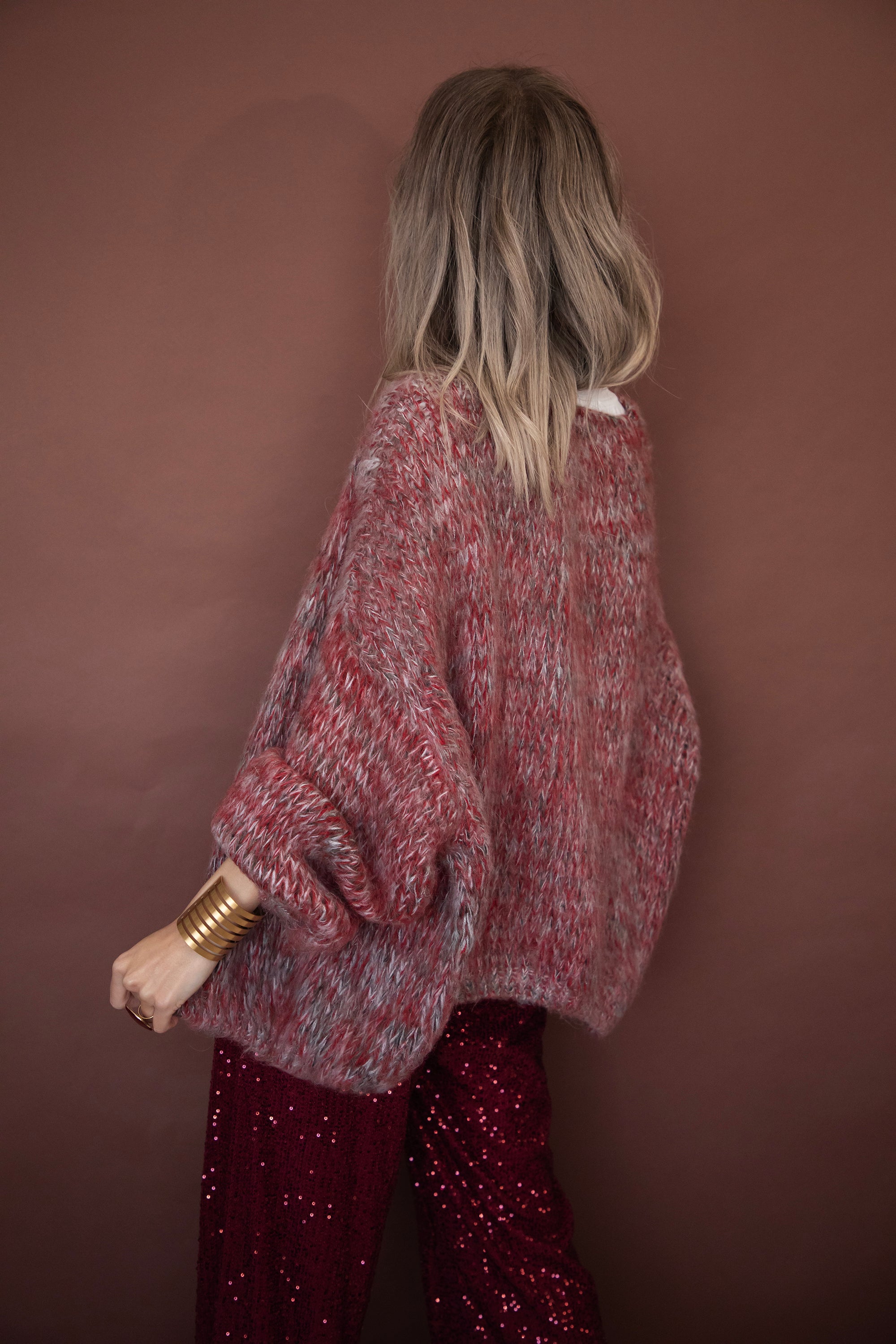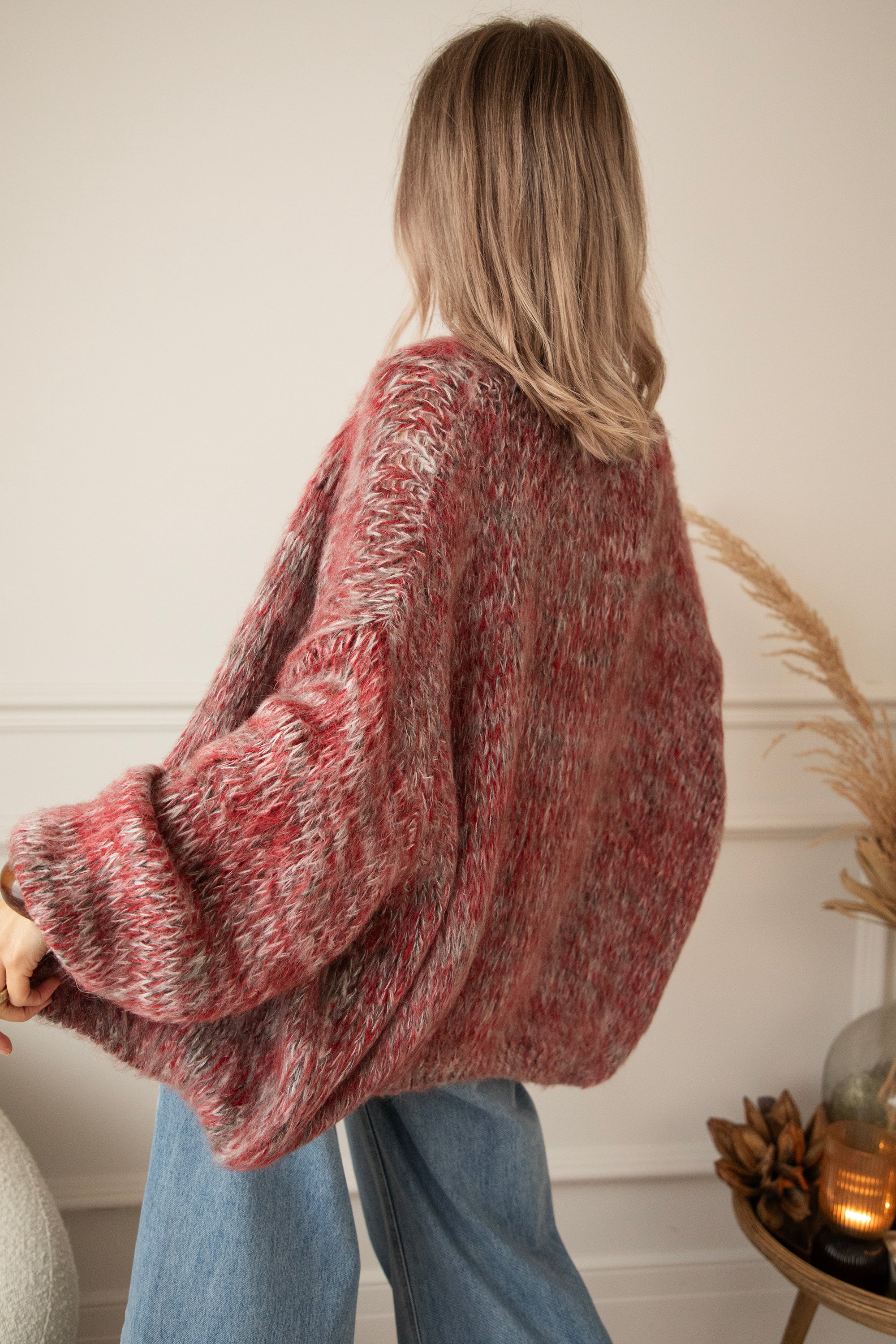 Meet Elody, a new Bernadette model! A melange knit of red and khaki yarn ❤️ Its style is similar to our ‘Original’ Bernadette: low shoulder seam & baggy sleeves 😊 It also contains a touch of wool and viscose for flexibility ✨
