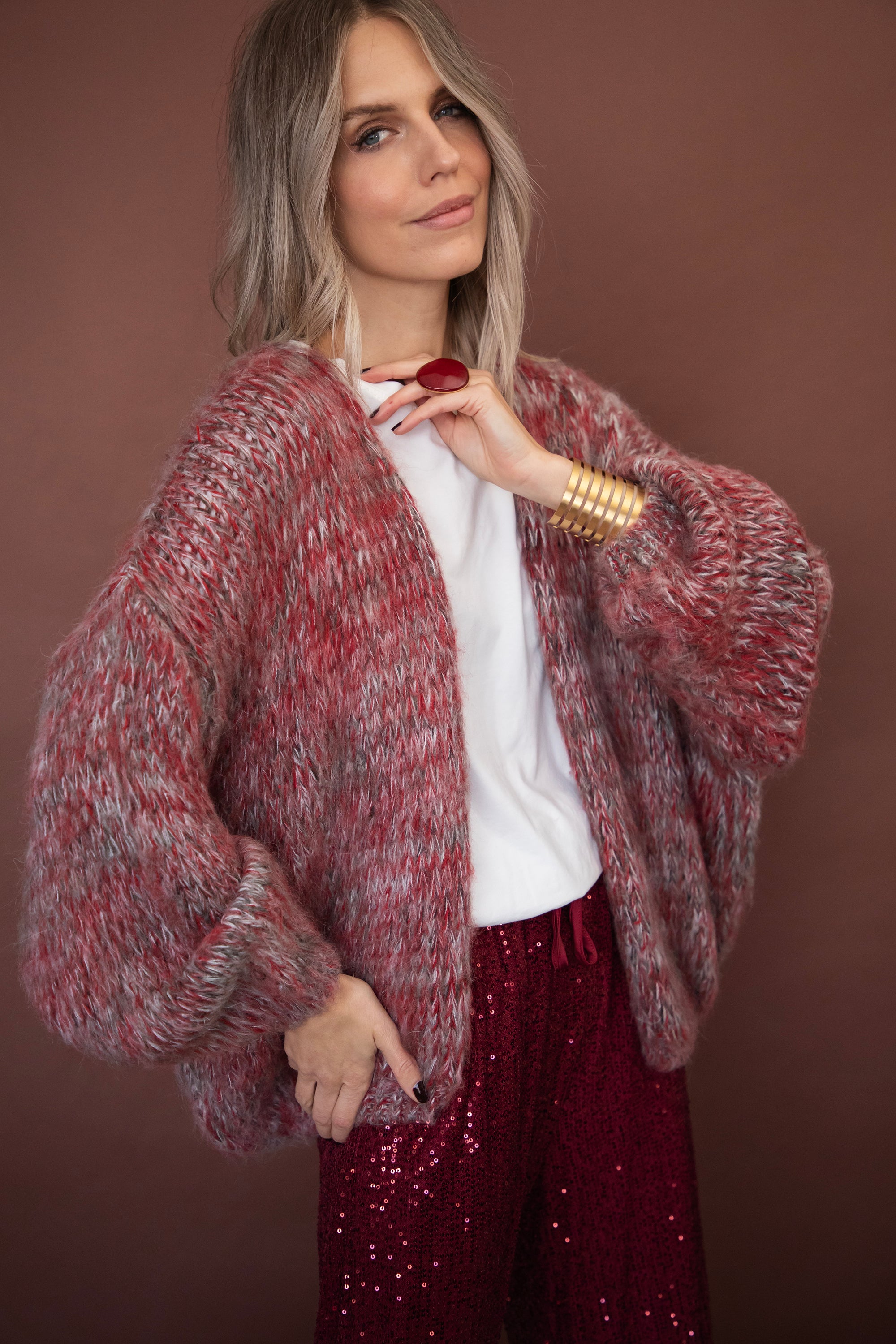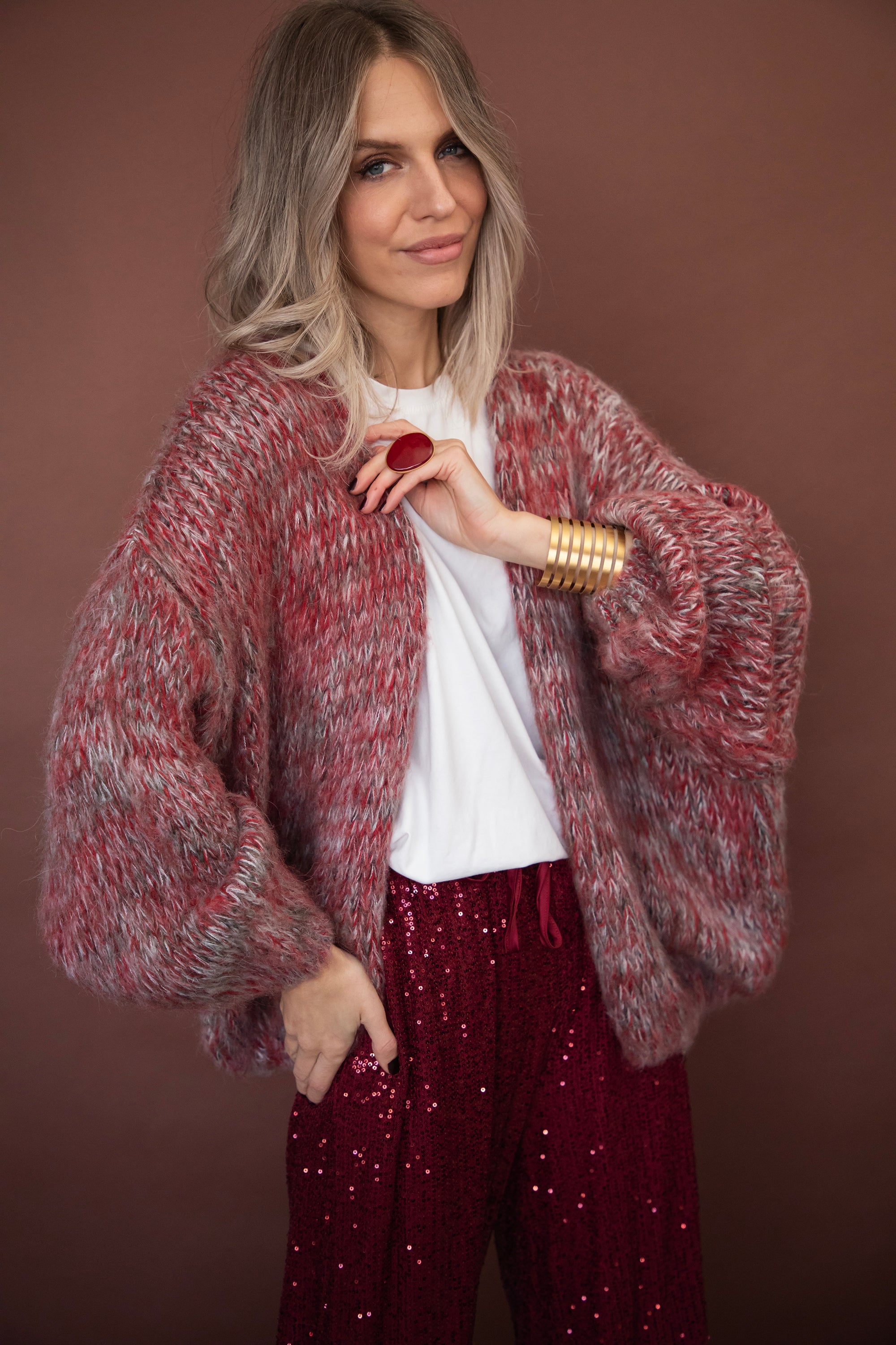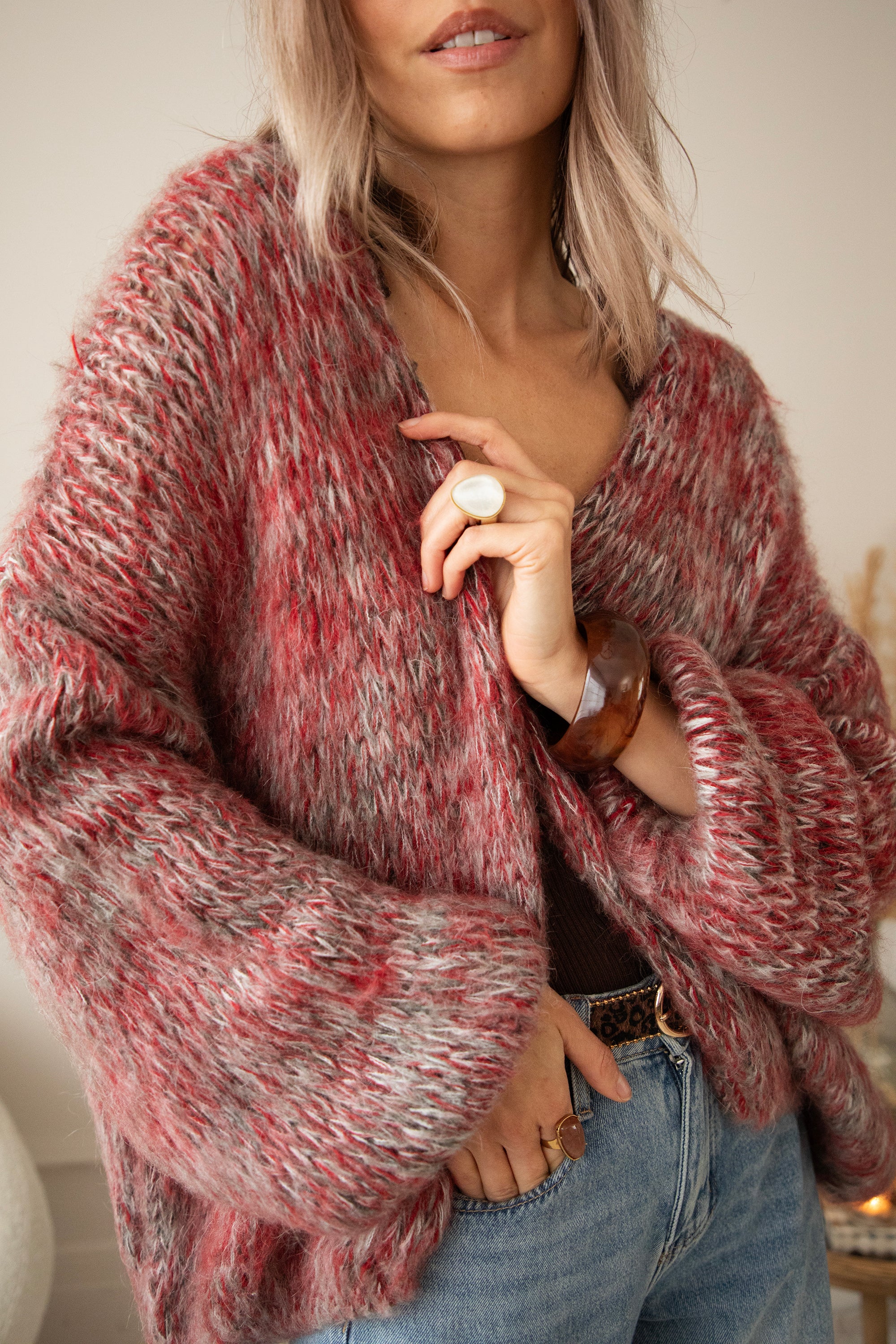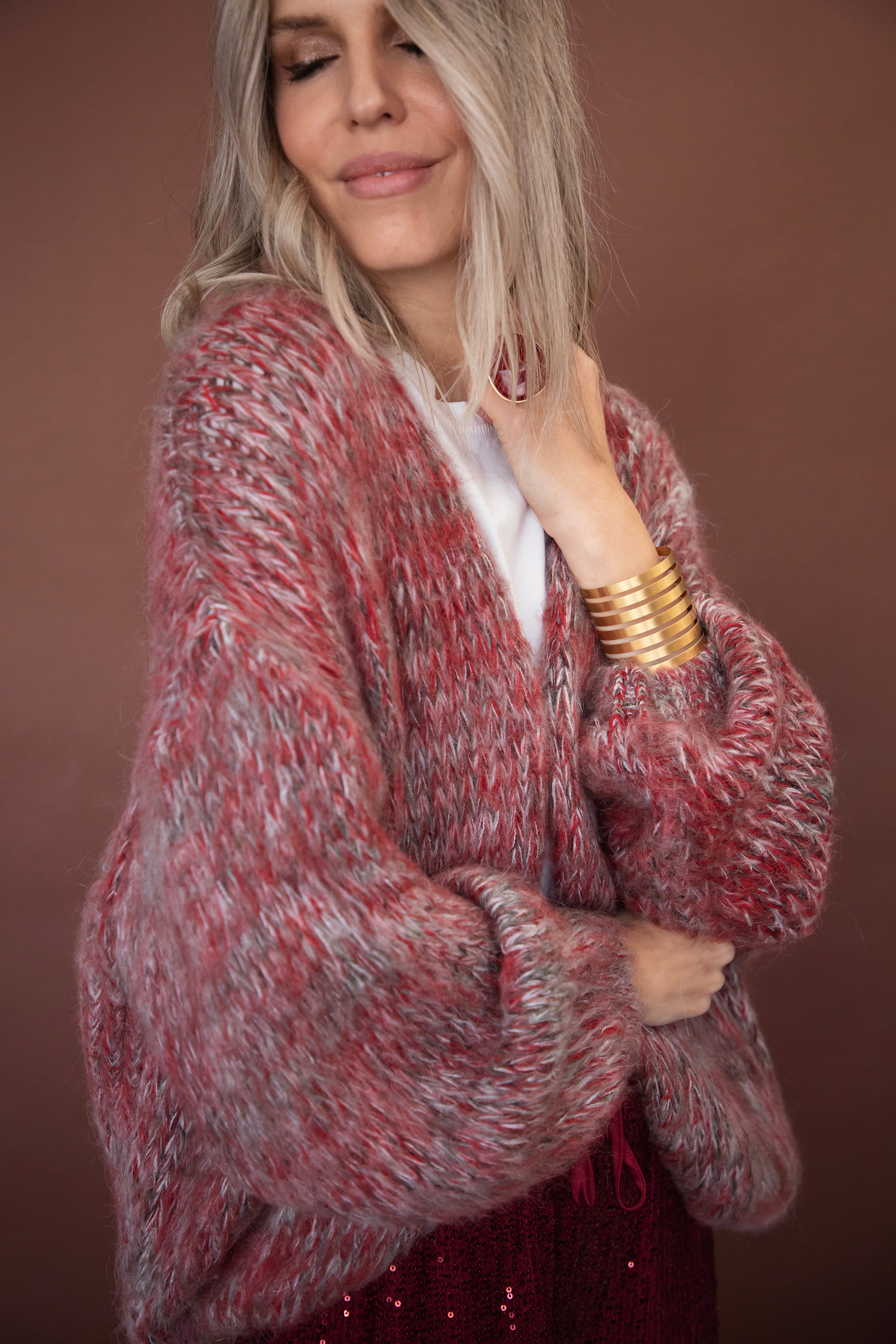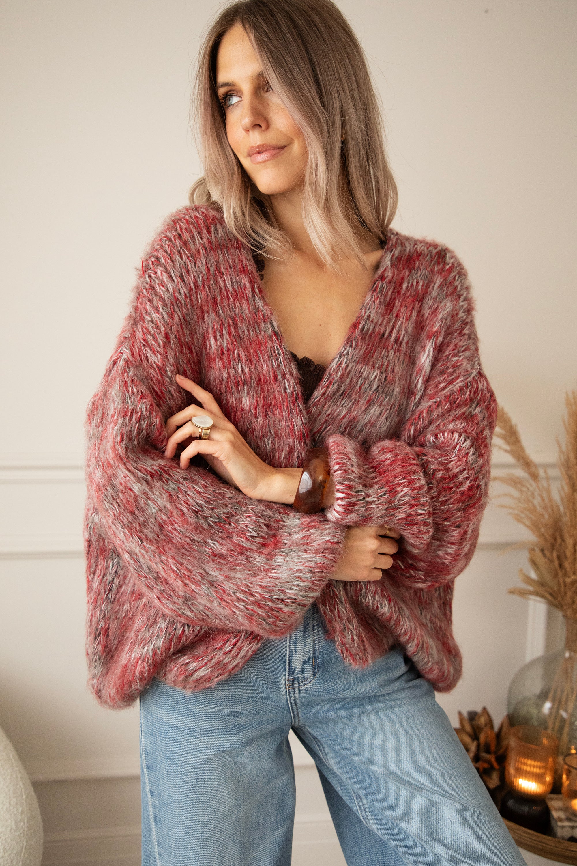 Meet Elody, a new Bernadette model! A melange knit of red and khaki yarn ❤️ Its style is similar to our ‘Original’ Bernadette: low shoulder seam & baggy sleeves 😊 It also contains a touch of wool and viscose for flexibility ✨