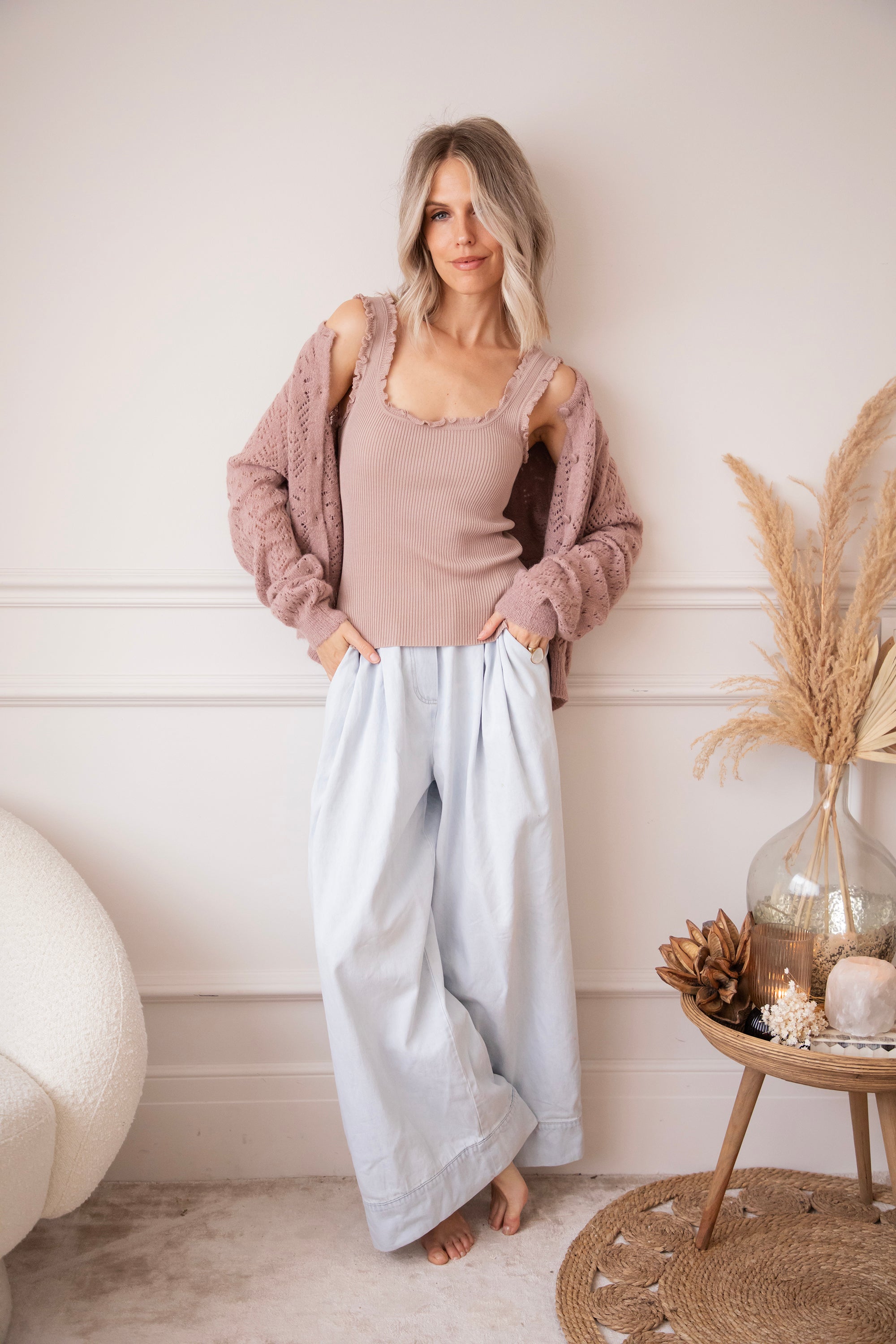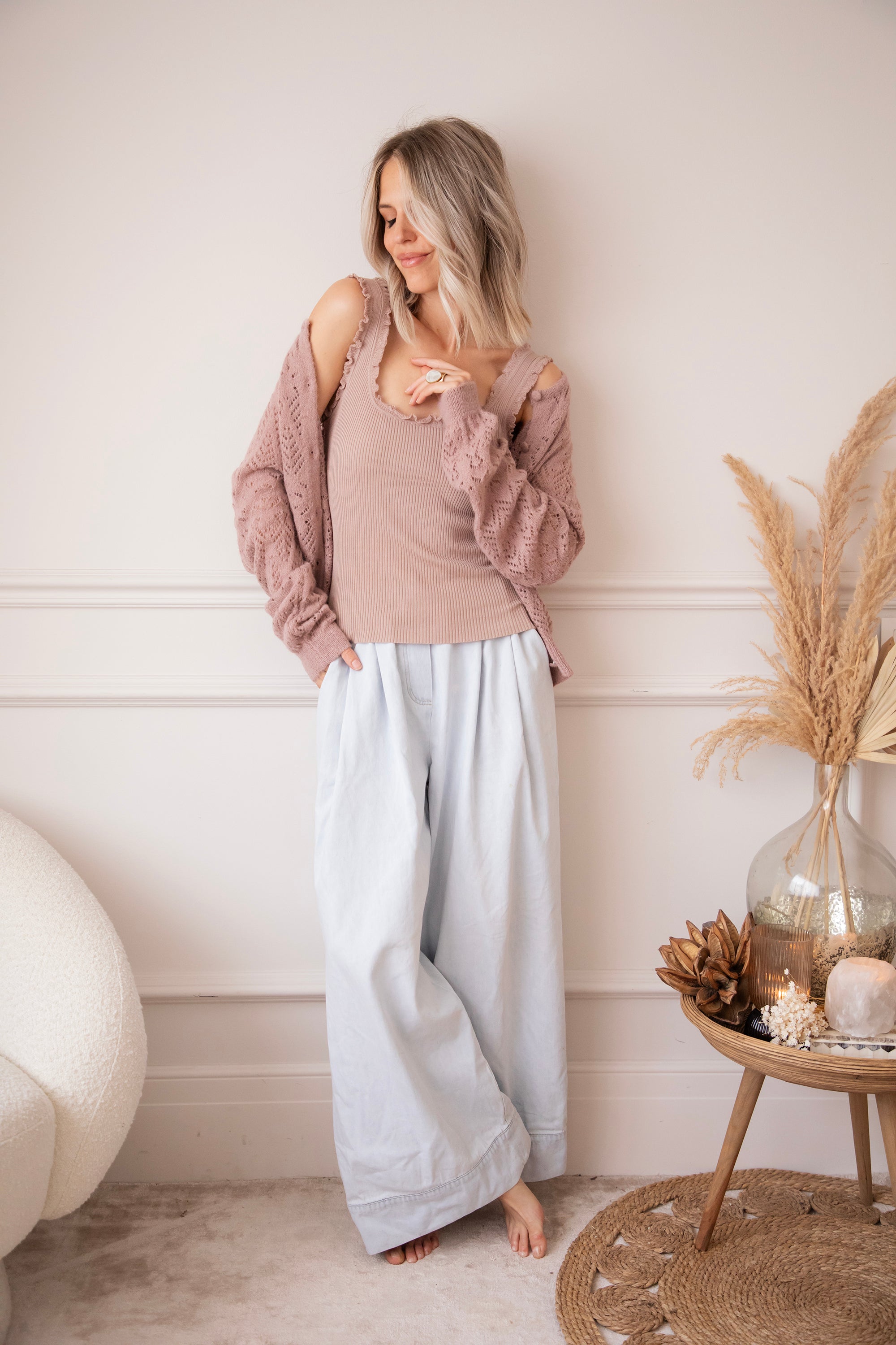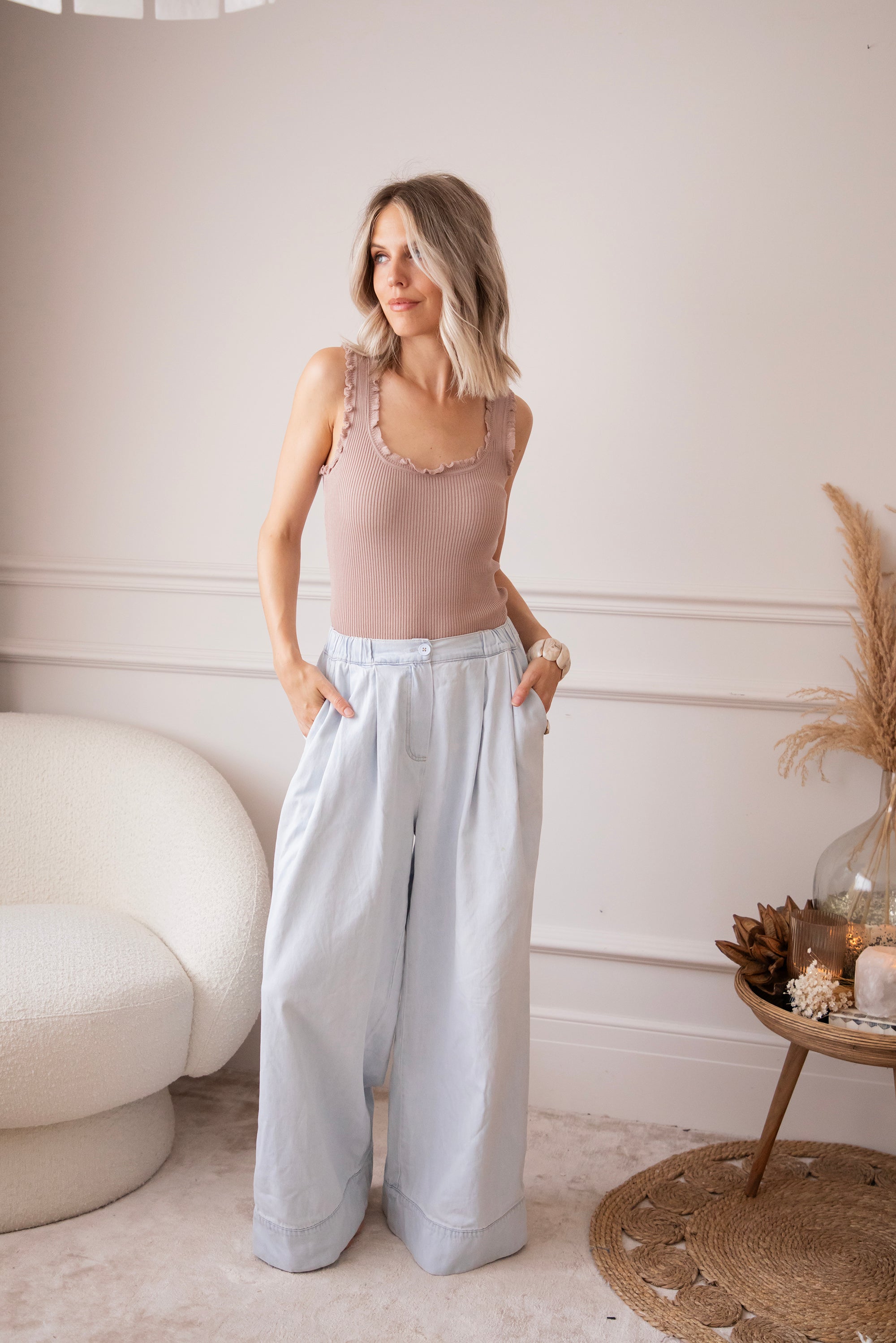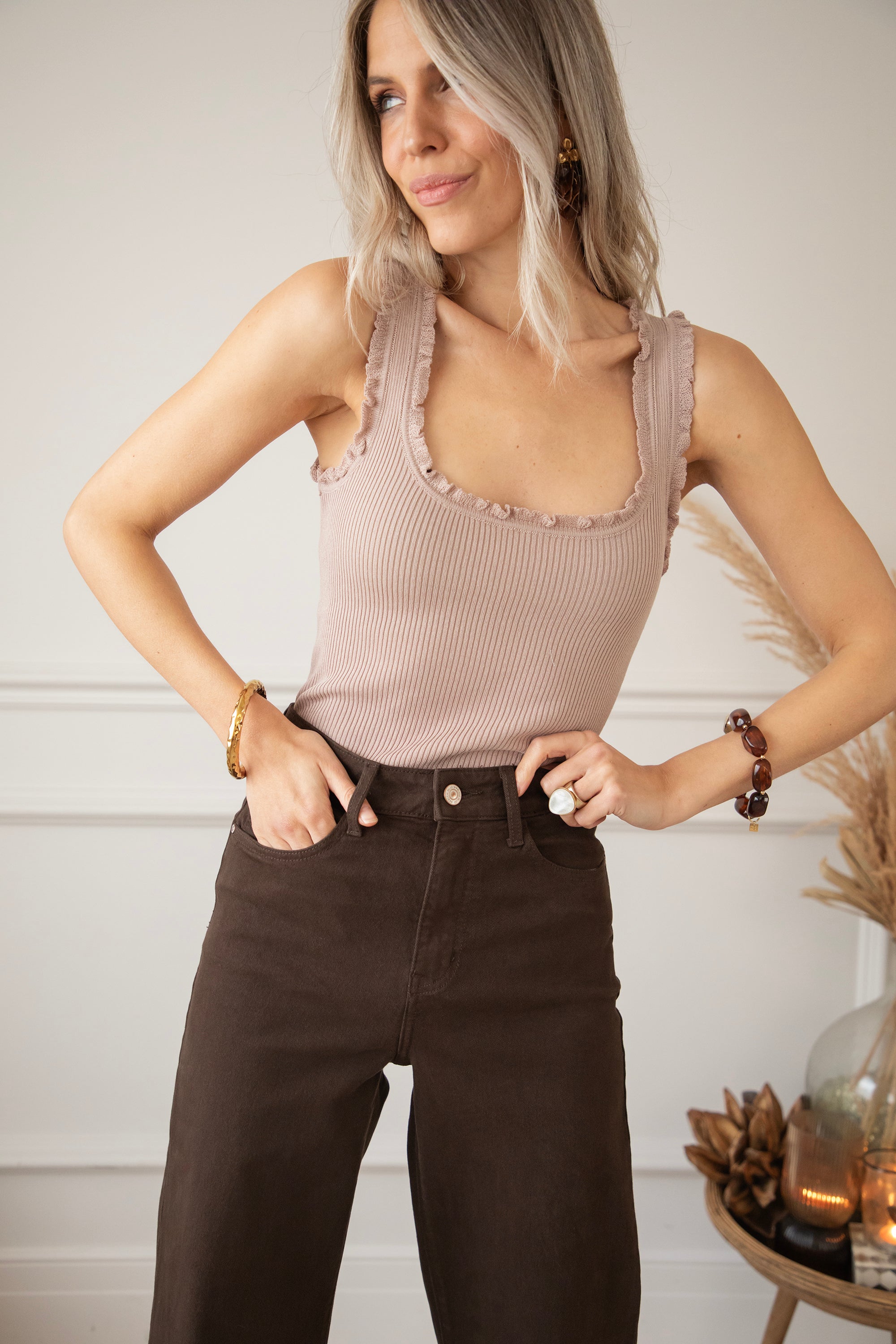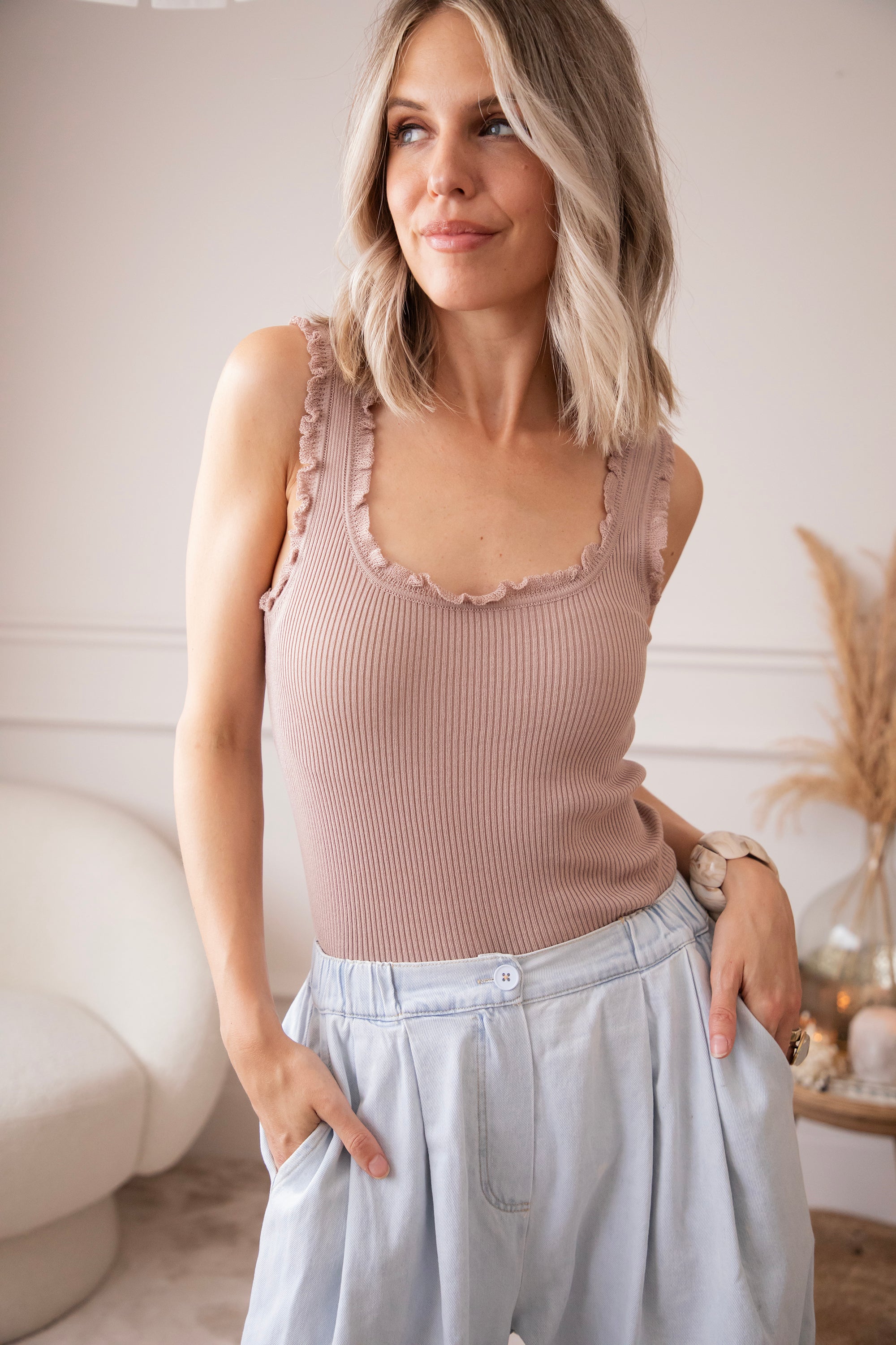 If there's one basic you need to have in your closet, it's ‘Riri’! 👌 It hugs your body with its stretchy fabric. Even though it's a basic color, the ruffled details on the shoulders and neckline add a playful touch to the top 🩶 Taupe is, of course, a classic that you'll always find in my closet. It's a color you can wear all year round!