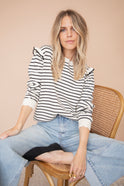 The golden combination of a good sweater! Rylie is a baggy model with our absolute favorite print: stripes π She comes with such cute details! Just look at the button row at the back, the wavy edges and the ruffles at the shoulders! Rylie is the total picture for me, 100% ellemilla proof π