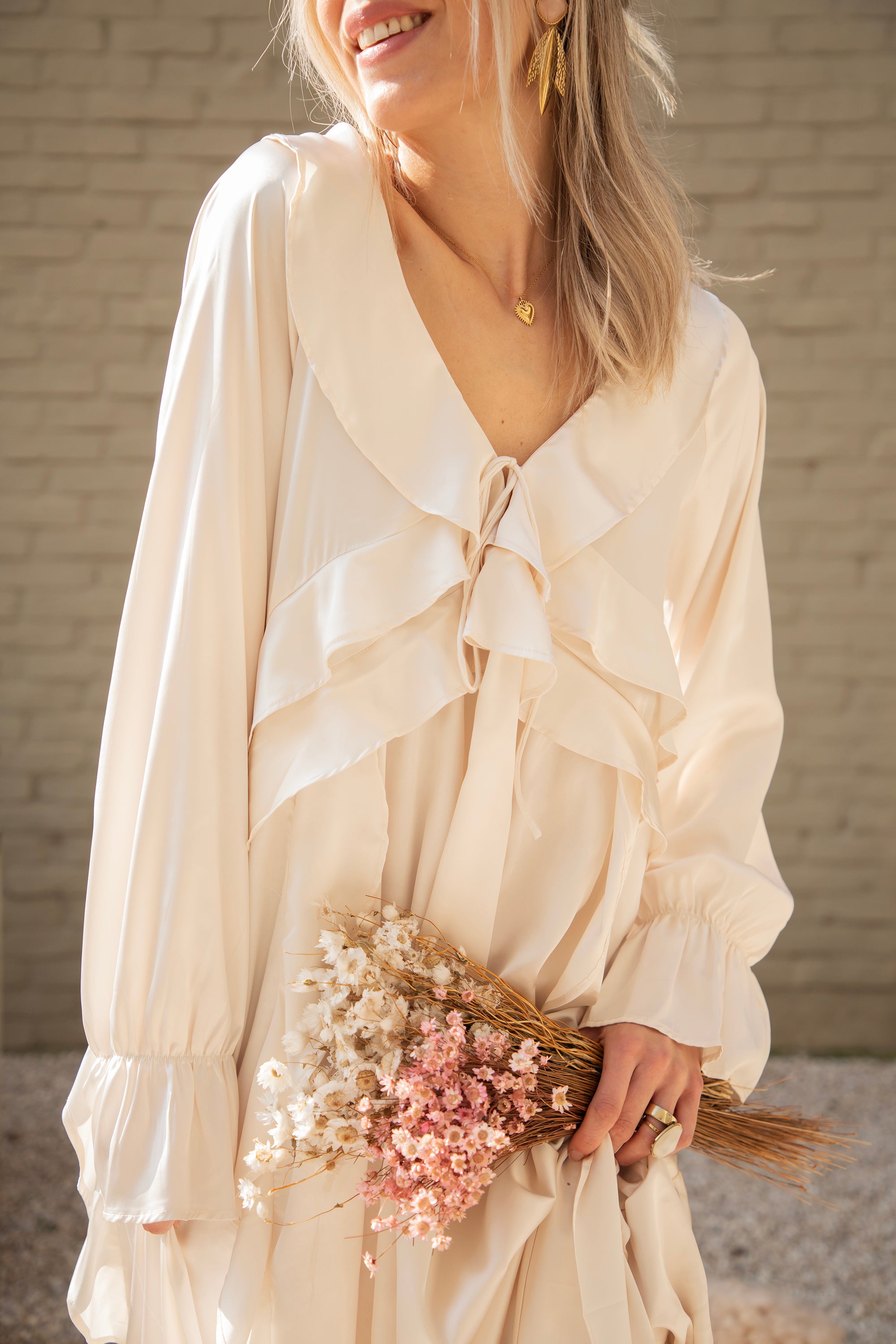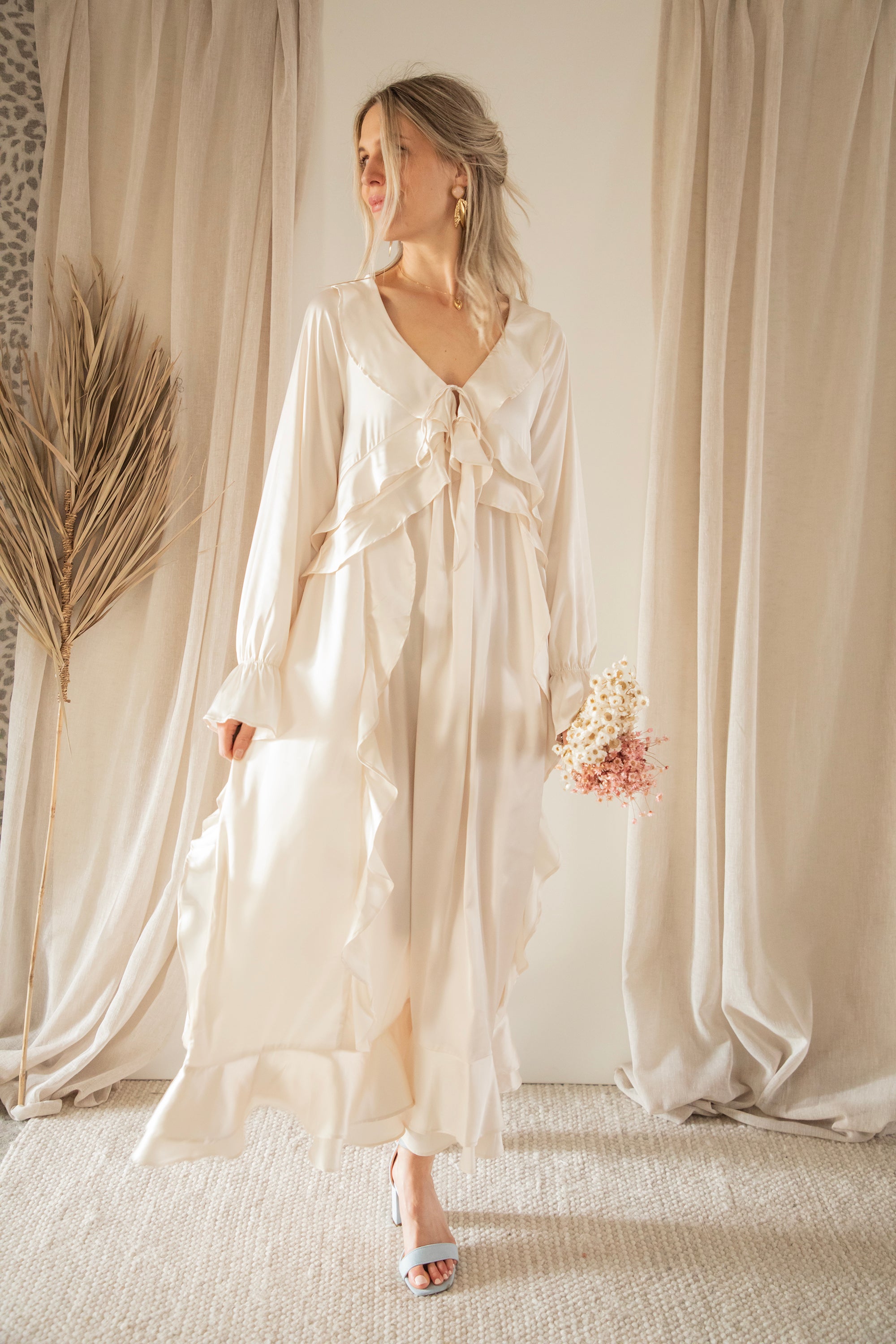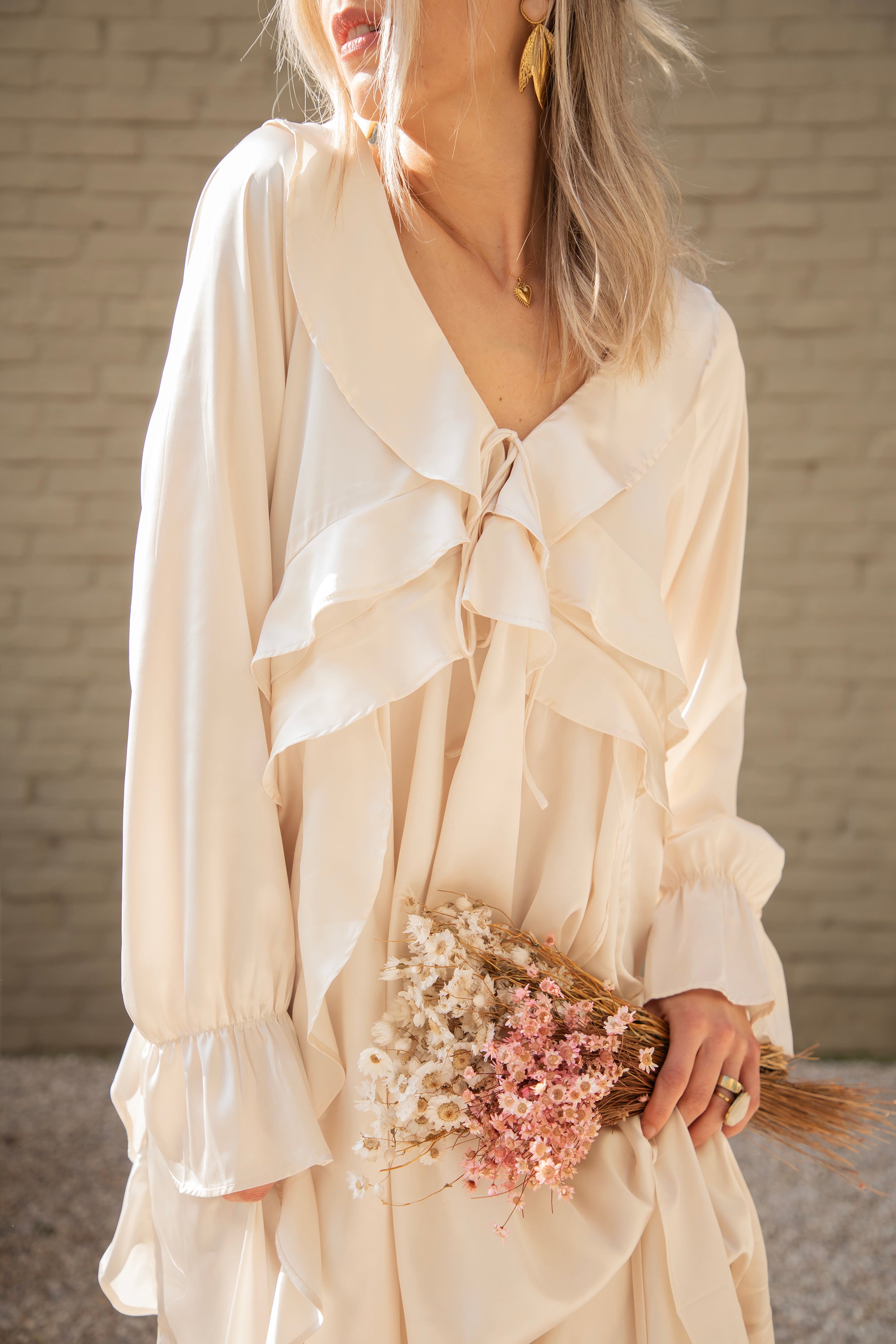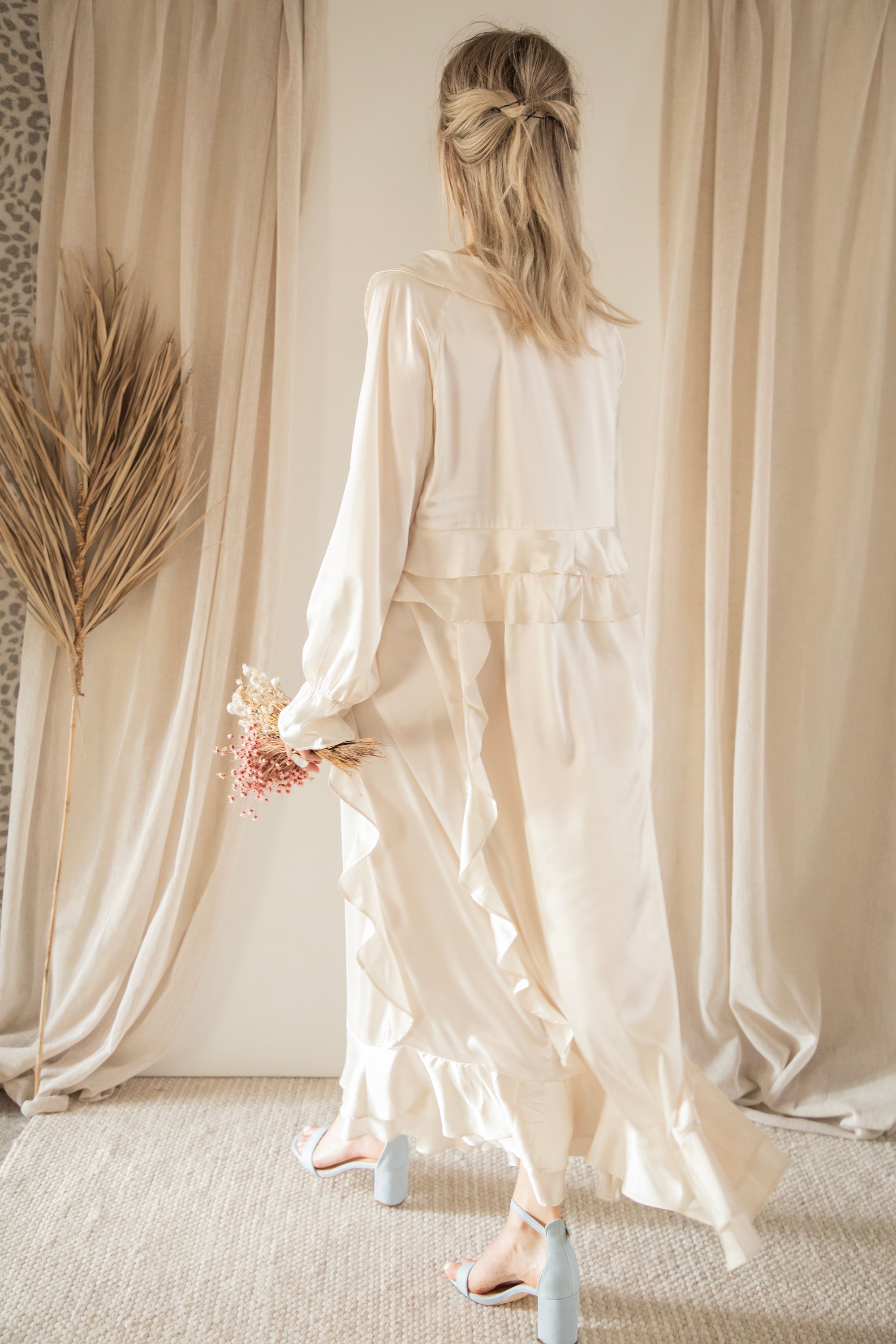 The Sidona dress is an absolute gem, ladies! β¨π€ You feel so feminine and so elegant in her! Thanks to the flowy, satin-like fabric that moves so beautifully with you. The ruffles on the skirt and around the waist give the dress even more swish and power π€© And she feels sooo smooth, thanks to the 10% silk β¨